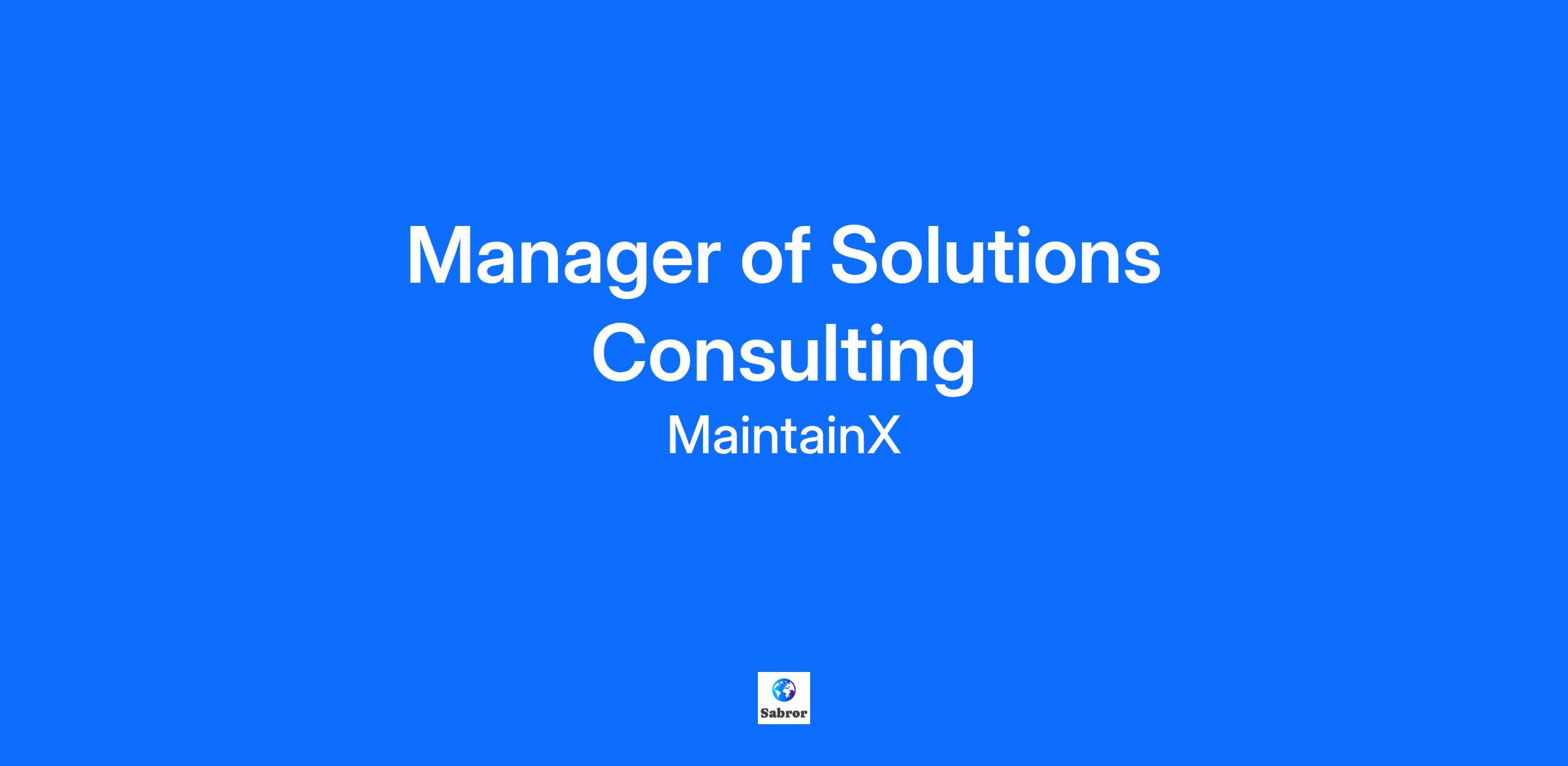 MaintainX is the world's leading Asset and Work Intelligence platform for industrial and frontline environments. We are a modern IoT-enabled cloud-based tool for reliability, safety, and operations on physical equipment and facilities. MaintainX powers operational excellence for 12,000+ businesses including Duracell, Univar Solutions Inc., Titan America, McDonald's, Brenntag, Cintas, Xylem, and Shell. We recently completed a $150 million Series D funding round, bringing our total funding to $254 million and valuing the company at $2.5 billion. We’re looking for a Manager of Solutions Consulting to lead a team of Solution Consultants, supporting our Mid-Market & Emerging Account Management teams. This role will focus on leveraging emerging technologies and industry trends to help clients optimize their maintenance practices. The ideal candidate will have deep expertise in manufacturing or a related industry, a passion for innovation, and strong collaboration skills to drive client success. What you’ll do: Solutions Strategy: Lead and drive strategic consulting efforts in the enterprise EAM and CMMS space. Identify new opportunities for growth and innovation that can enhance clients' capabilities. Client Consulting and Support: Support a team of solution consultants providing strategic insights and hands-on solutions that align with their business goals. Work closely with clients to assess their needs and propose tailored EAM / CMMS solutions. Cross-functional Collaboration: Work closely with sales, product development, and other teams to clearly communicate customer requirements and challenges to help enhance our products. Market Research and Trend Analysis: Stay up to date with the latest trends, tools, and technologies in the EAM / CMMS space. Conduct market research and competitive analysis to continuously refine strategies and recommend new, forward-thinking solutions. Team Leadership: Lead and mentor a team of solutions consultants, providing guidance on best practices and offering continuous learning opportunities to enhance their expertise in marketing solutions. Client Presentations and Workshops: Create and deliver engaging presentations and workshops for clients on the MaintainX solution and industry strategies, helping them understand how to best implement EAM / CMMS. Performance Monitoring: Track and report on team performance, providing insights and recommendations to enhance collaboration, productivity and, overall effectiveness for continuous improvement About you: 7+ years of solutions consulting / sales engineering experience 2+ years of experience leading a technical pre-sales team Bachelor’s Degree or higher (BSc or BEng preferred) Background in manufacturing, industrial operations, or warehouse environments, with direct exposure to operational workflows. Proven experience in leading teams and managing client relationships Comfortable multi-tasking and keeping the energy high Outstanding verbal and written communication ability Strong problem-solving skills and the ability to think strategically while executing tactically Ability to adjust communication style based on customers’ personalities and based on stakeholders’ objectives Ability to present effectively and command attention with a variety of stakeholder perspectives A passion for staying ahead of industry trends and helping clients leverage innovation to stay competitive Empathic, positive, passionate, creative, smart, high integrity, startup mentality Ability to work in a fast-paced environment and manage multiple projects simultaneously While not required, it would be great if you also have: Prior consulting and sales experience. Experience working with ERP, CMMS or facility operations software. What’s in it for you: Competitive salary and meaningful equity opportunities. Healthcare, dental, and vision coverage. 401(k) / RRSP enrollment program. Take what you need PTO. A Work Culture where: You’ll work alongside folks across the globe that reflect the MaintainX values, Smart Humble Optimist. We believe in meritocracy, where ideas and effort are publicly celebrated. About us: Our mission is to deliver one platform for maintenance, repair & operations teams to keep the physical world running. We believe the greatest asset in any organization is the people. That’s why we built an intuitive, mobile-first solution to help boost productivity and collaboration across teams and locations. MaintainX is committed to creating a diverse environment. All qualified applicants will receive consideration for employment without regard to race, colour, religion, gender, gender identity or expression, sexual orientation, national origin, genetics, disability, age, or veteran status.