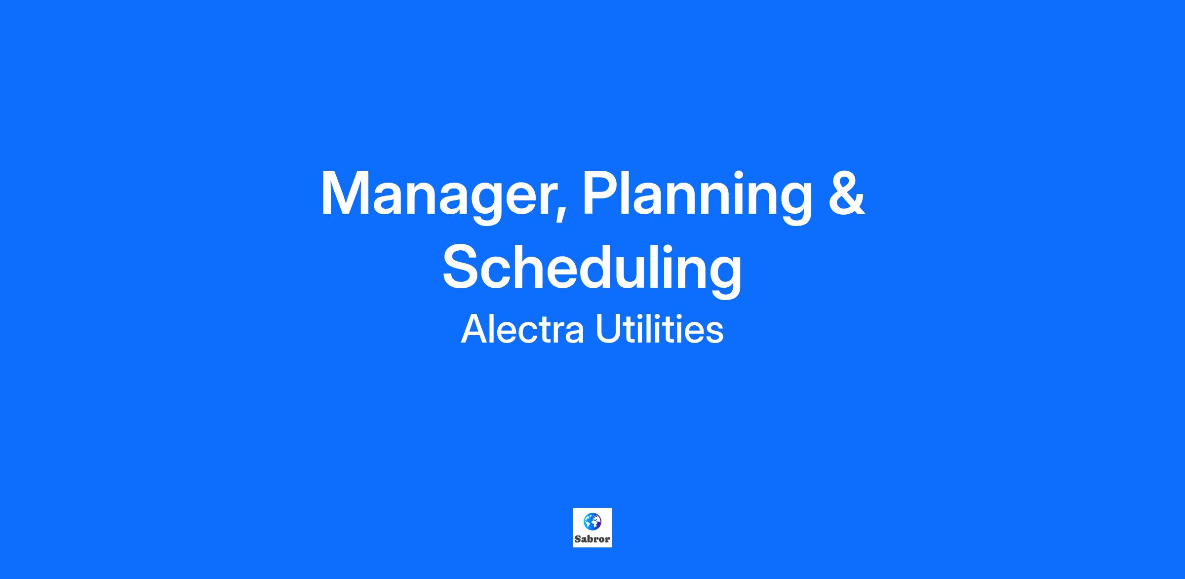 Manager, Planning & Scheduling