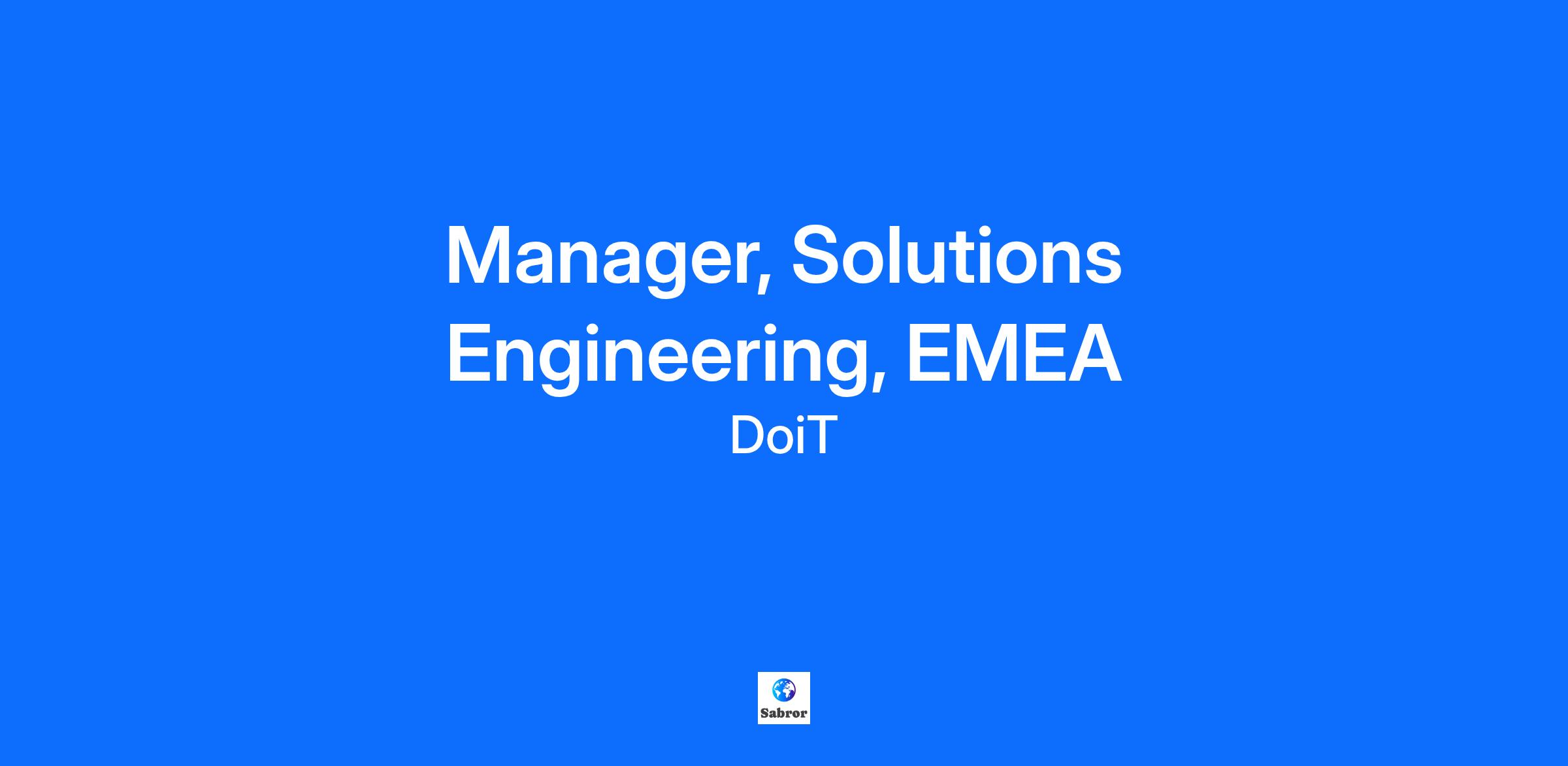 Location The Manager, Solution Engineering, will be an integral part of our Sales leadership team in EMEA. This role is based remotely in Ireland or the UK. Who We Are DoiT is a global technology company that works with cloud-driven organizations to leverage the cloud to drive business growth and innovation. We combine data, technology, and human expertise to ensure our customers operate in a well-architected and scalable state - from planning to production. Delivering DoiT Cloud Intelligence, the only solution that integrates advanced technology with human intelligence, we help our customers solve complex multicloud problems and drive efficiency. With decades of multicloud experience, we have specializations in Kubernetes, GenAI, CloudOps, and more. An award-winning strategic partner of AWS, Google Cloud, and Microsoft Azure, we work alongside more than 4,000 customers worldwide. The Opportunity DoiT is looking for an experienced and technically adept Manager of Solution Engineering to build and lead an engaged and high functioning team of Solution Engineers to execute the technical sales process as an integral part of our Global Sales Team. Our ideal candidate is an accomplished Solution Engineering leader with experience building and leading SE teams in a B2B SaaS software environment. You have an established track record of success and enjoy leading by example, defining best practices and collaborating with key stakeholders across the business to drive success and technical wins. You are excited about enabling companies to transform themselves using the public cloud and the service offerings in the cloud (AWS, GCP, etc.) You will hold yourself accountable for the success of any initiative you are involved in, approach every obstacle as an opportunity for continuous improvement and are comfortable working in a fast-paced, growing, and entrepreneurial environment. Responsibilities Build and lead a highly engaged and successful team of Solution Engineers aligned to key regional sales teams around the world; Defining key metrics for success, best practices and operational procedures, and goals for the team and the individuals on it. Serve as a player-coach working in conjunction with the sales leadership team as a key technical advisor and advocate for DoiT while mapping value to the prospect’s needs, incorporating feedback to drive quality and consistency across the Solution Engineering team. Implement and refine strategies to improve trial win rates, beat the competition, develop stronger technical buyer relationships - while relaying actionable feedback to product leadership for further consideration as part of our product roadmap discussions. Define and ensure accountability around best practices in the execution of demos and trials across the Solution Engineering team and as a a subject matter expert on our SaaS packages and functionality yourself. Develop and train the Solution Engineering team on the model for delivering engaging demonstrations in collaboration with our Sales, Marketing and Training Teams. Understand and implement technical sales strategies based on competitive selling strategy - creating a culture of continuous learning and improvement across the team. Serve as an escalation point for the team with a sense of urgency as we manage complex technical sales processes in a highly collaborative environment with multiple departments and stakeholders. Partner with Product Marketing align on and refine effective strategies to manage and deliver demonstrations, maintain demo environments, and respond to RFPs. Present to prospects, customers and partners, at external events, conferences, seminars, etc. Ensure timely entry of data into internal business support solutions. Contribute to systems and tools to provide key business information and metrics to highlight performance and effectiveness. Responsibilities 3+ years of management experience at B2B SaaS software company leading a pre-sales / Solution Engineering team selling into both enterprise and mid-market accounts. 2+ years of FinOps and Kubernetes experience Deep understanding of best practices for creating, leading and operationalizing Solution Engineering teams at scale. An understanding of ITSM eco-systems and prominent solutions within them, such as: Cloud Management tools, DataDog, Chef, Ansible, Puppet, New Relic, ServiceNow, AlertLogic etc. Experience working with Amazon Web Services (AWS) or equivalent cloud, and Datacenter experience with knowledge of hypervisors like VMWare. Strong data analysis skills and the ability /navigate spreadsheets to identify trends, outliers, correlations and reconciliation needs across large data sets. Good practical understanding of cloud-centric architectures. Comfort level working in a metric-driven environment, including reporting on and improving business performance against a set of monthly KPIs and metrics. The ability to take complex pieces of technology and explain them in a simple and easy to understand way. Solid verbal, written, presentation and interpersonal communication skills in English. Additional languages are a plus. Intellectual curiosity, great problem solving skills and passion for continuous improvement. Previous experience working with/presenting to executive-level prospects and customers. Experience with modern technical selling best practices and selling in a competitive environment, including implementing new or improved trial, demo, and RFP processes. Proven track record of success in a fast-growing and scaling business. Are you a Do’er? Be your truest self. Work on your terms. Make a difference. We are home to a global team of incredible talent who work remotely and have the flexibility to have a schedule that balances your work and home life. We embrace and support leveling up your skills professionally and personally. What does being a Do’er mean? We’re all about being entrepreneurial, pursuing knowledge, and having fun! Click here to learn