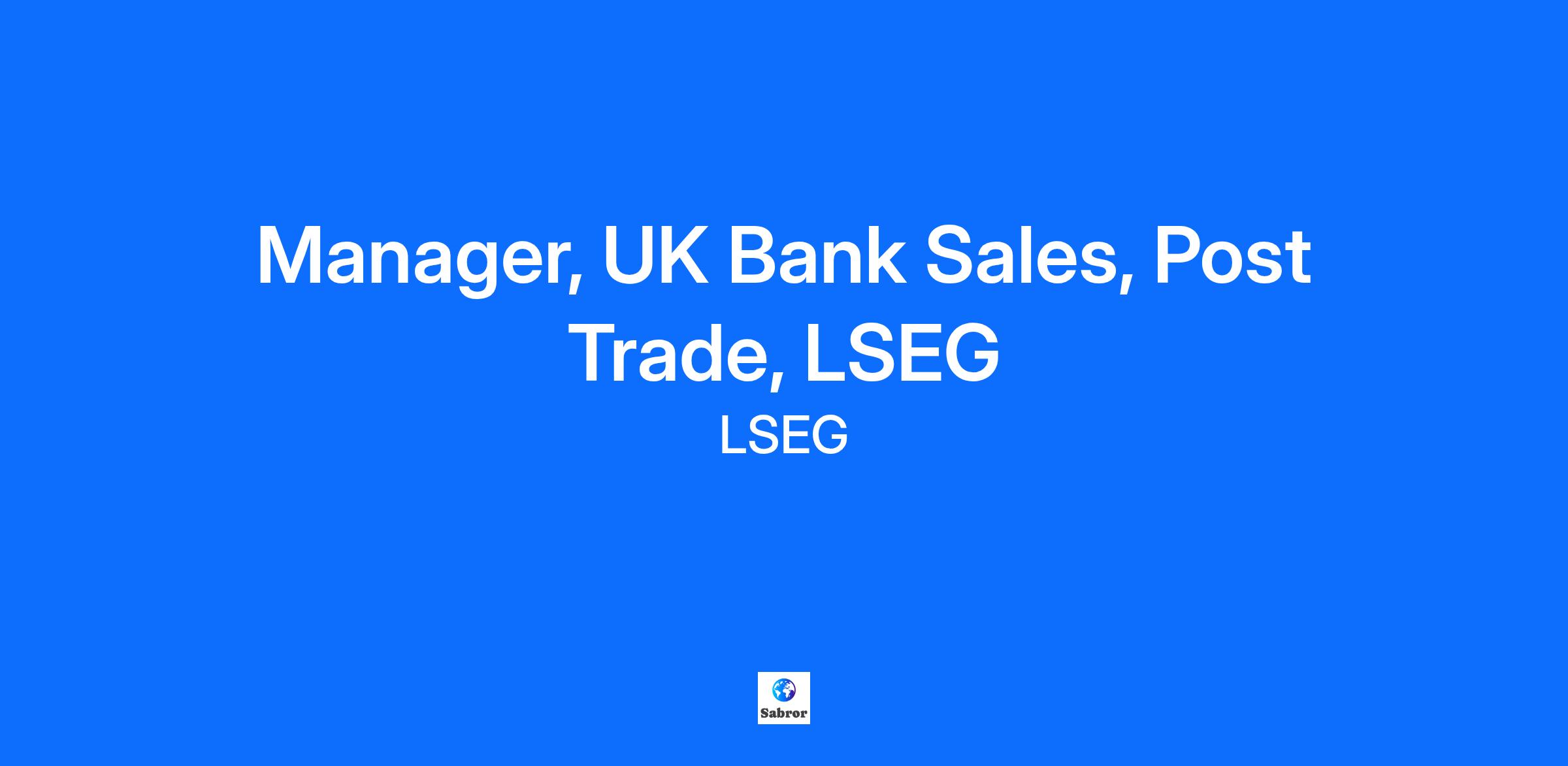 Job Description Role Title: Manager UK Bank Sales, Markets, LSEG Role Purpose As a member of the UK Post Trade Sales team, this role will focus on supporting strategic sales engagement across our key UK banking sector, encompassing both member and clients. Measure of success is to build deep sector expertise, deliver tailored solutions across our Post Trade services, and foster meaningful relationships that translate into enhanced service delivery, account growth, and increased revenue. The role will report to the Director, Bank Sales. Role Responsibilities The Sales team covering the Post Trade businesses has five main hubs in London, Paris, New York, Singapore, and Sydney. The role’s key focus is to support the sales leads covering our strategic UK clearing brokers and house banks. This will include: Build effective working relationships and collaborate closely with asset class specialists across Listed Rates, Repo, Credit, Equities, FX and Post Trade Solutions. Planning of strategic engagement with respective business heads to support avenues for growth and increased revenue opportunities. Stakeholder mapping across asset classes Cultivate bank coverage responsibilities of UK Tier 2 and Tier 3 banks. It is imperative the role works closely with both the local and broader global sales team to support strategic alignment of global banks that are headquartered globally but have significant trading hubs here in the UK. Building effective working relationships with our sales specialists across asset classes – in both the Post Trade business lines and Post Trade Solutions. Build product knowledge and sales skills by collaborating with cross-department business partners -> Credit, Risk, Compliance, Operations and Client Services. Contributes ideas for service and product improvement, monitors evolving market structure, and works with sales teams and regional leads to identify how the business should strategically position to deliver value for customers, retain/grow business, and ultimately grow revenues. Support sales leads as they align the bank relationship with global GSRD’s to build effective two-way partnership with the key decision makers including senior level executives at each of our strategically important bank relationships. Minimum Requirements Knowledge of CCPs, clearing businesses and derivatives-related regulatory and legislative agendas, preferably across asset classes (Swaps, FX, Repo, Equities and Credit). A minimum of 3-5 years of sales / relationship management experience in institutional (or sell-side) sales. A self-directed sales professional who knows what needs to be done and operates with a sense of urgency, focus and discipline. Ability to prospect and build a pipeline, from identifying the right opportunities to gaining access to the right levels across an organisation, influencing and building advocacy to create the conditions to close the sale. Works effectively independently but supports a team-oriented approach. An excellent communicator – written, verbal, presentation and interpersonal. Degree or equivalent At LSEG, we believe that creating a diverse and inclusive organisation is fundamental to the way we deliver on our promise – and our purpose. You’ll be part of an organisation of over 25,000 people, spanning 70 countries. We recognise the individual perspectives each of our colleagues brings, and our diverse workforce is one of our greatest strengths. In supporting collaboration and creativity and encouraging new ideas across a diverse and inclusive workforce, we can improve how we are driving financial stability, empowering economies and enabling customers to create sustainable growth. LSEG offers a range of tailored benefits and support from healthcare and retirement planning to paid volunteering days and wellbeing initiatives. We are an equal opportunities employer. We do not discriminate on the basis of race, religion, colour, national origin, gender, sexual orientation, gender identity, gender expression, age, marital or veteran status, pregnancy or disability, or any other basis protected under applicable law. In accordance with applicable law, we make reasonable accommodations for applicants' and employees' religious practices and beliefs, as well as any mental health or physical disability needs. Join us and be part of a team that values innovation, quality, and continuous improvement. If you're ready to take your career to the next level and make a significant impact, we'd love to hear from you. LSEG is a leading global financial markets infrastructure and data provider. Our purpose is driving financial stability, empowering economies and enabling customers to create sustainable growth. Our purpose is the foundation on which our culture is built. Our values of Integrity, Partnership, Excellence and Change underpin our purpose and set the standard for everything we do, every day. They go to the heart of who we are and guide our decision making and everyday actions. Working with us means that you will be part of a dynamic organisation of 25,000 people across 65 countries. However, we will value your individuality and enable you to bring your true self to work so you can help enrich our diverse workforce. We are proud to be an equal opportunities employer. This means that we do not discriminate on the basis of anyone’s race, religion, colour, national origin, gender, sexual orientation, gender identity, gender expression, age, marital status, veteran status, pregnancy or disability, or any other basis protected under applicable law. Conforming with applicable law, we can reasonably accommodate applicants' and employees' religious practices and beliefs, as well as mental health or physical disability needs. You will be part of a collaborative and creative culture where we encourage new ideas. We are committed to sustainability across our global business and we are proud to partner with our customers to help them meet their sustainability 
