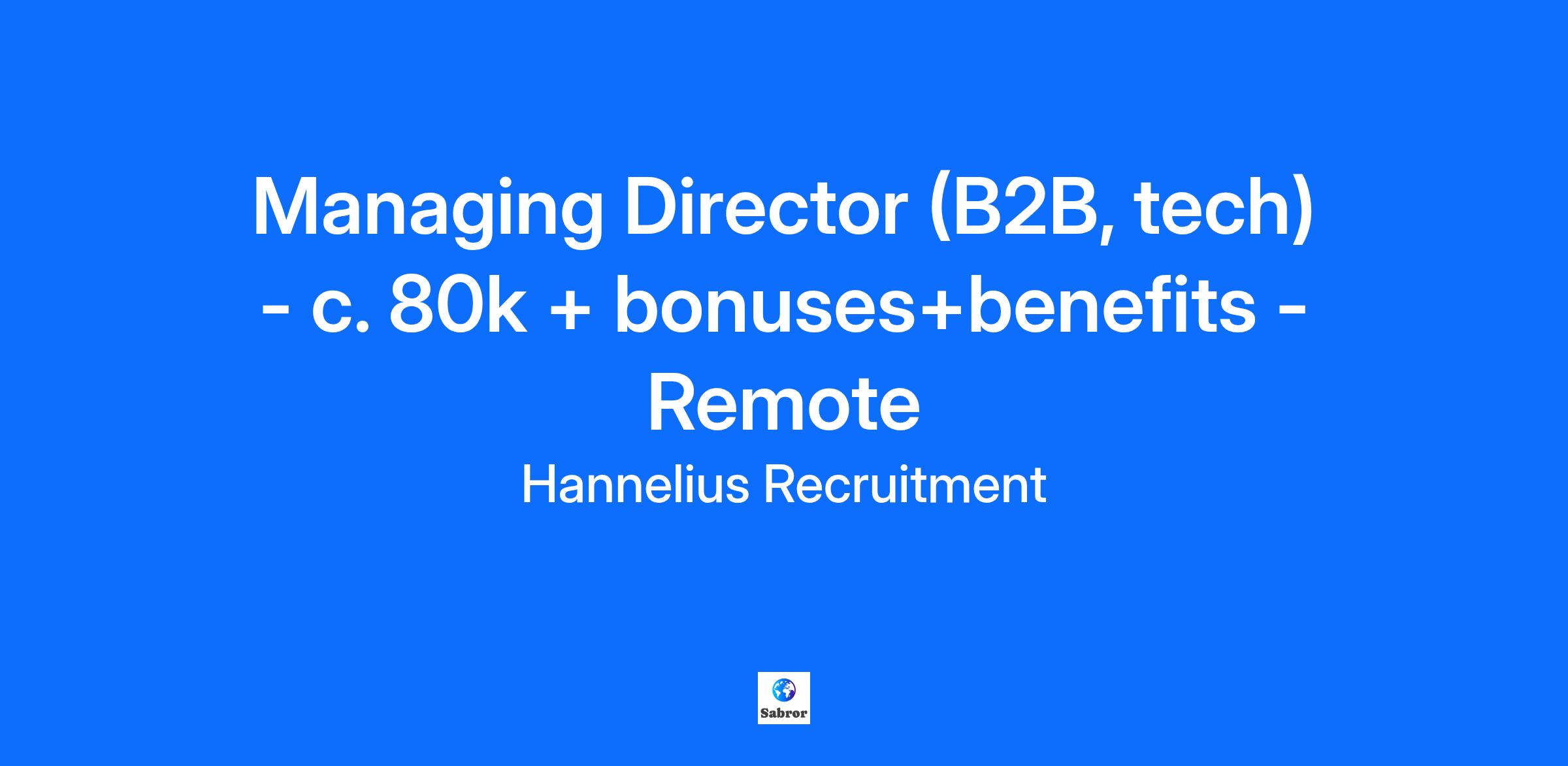 Salary: c.£80k (flexible) + bonus + flexible benefits Location: Fully Remote (UK-based) Are you an experienced market research leader with a strong commercial focus and expertise in the Technology Sector? Our client, a long-established international research and data consultancy, is looking for a Managing Director to lead the business into its next phase of growth. This is a rare opportunity to take the helm of a highly regarded specialist agency known for its innovative research solutions, data expertise, and outstanding client service. You’ll drive strategic direction, develop client relationships, and lead a talented, collaborative team, all within a flexible, fully remote setup. Key Responsibilities Drive commercial growth through business development and consultative sales. Provide strategic and operational leadership across research and data divisions. Build and strengthen client relationships, acting as the senior point of contact for major global technology accounts. Oversee the delivery of complex international research programmes, ensuring excellence and innovation. Lead, support, and inspire a small, dedicated team of permanent and contract staff. Champion a culture of collaboration, accountability, and exceptional client service. About You 15+ years’ experience in market research, ideally with exposure to the technology sector. Proven track record in business development and client leadership. Broad understanding of both quantitative and qualitative research, with an appreciation for data and analytics. Strong commercial and strategic mindset, with hands-on leadership skills. Excellent communicator who builds trust quickly and represents the business with confidence. Comfortable leading remotely and fostering a cohesive, high-performing culture. Additional language skills desirable. This is an exciting leadership role for someone who combines strategic vision with genuine client empathy and a passion for delivering world-class insights. To apply please send your CV to maarit@hanneliusrecruitment.com To be considered you must hold a valid UK working permit or a visa. Hannelius Recruitment is a boutique agency, operating across various sectors and connecting top talents with leading corporations in the field of market research. At Hannelius Recruitment we are committed to diversity and equality; we value talents based on abilities and potential, fostering productivity and innovation in a positive working environment.
