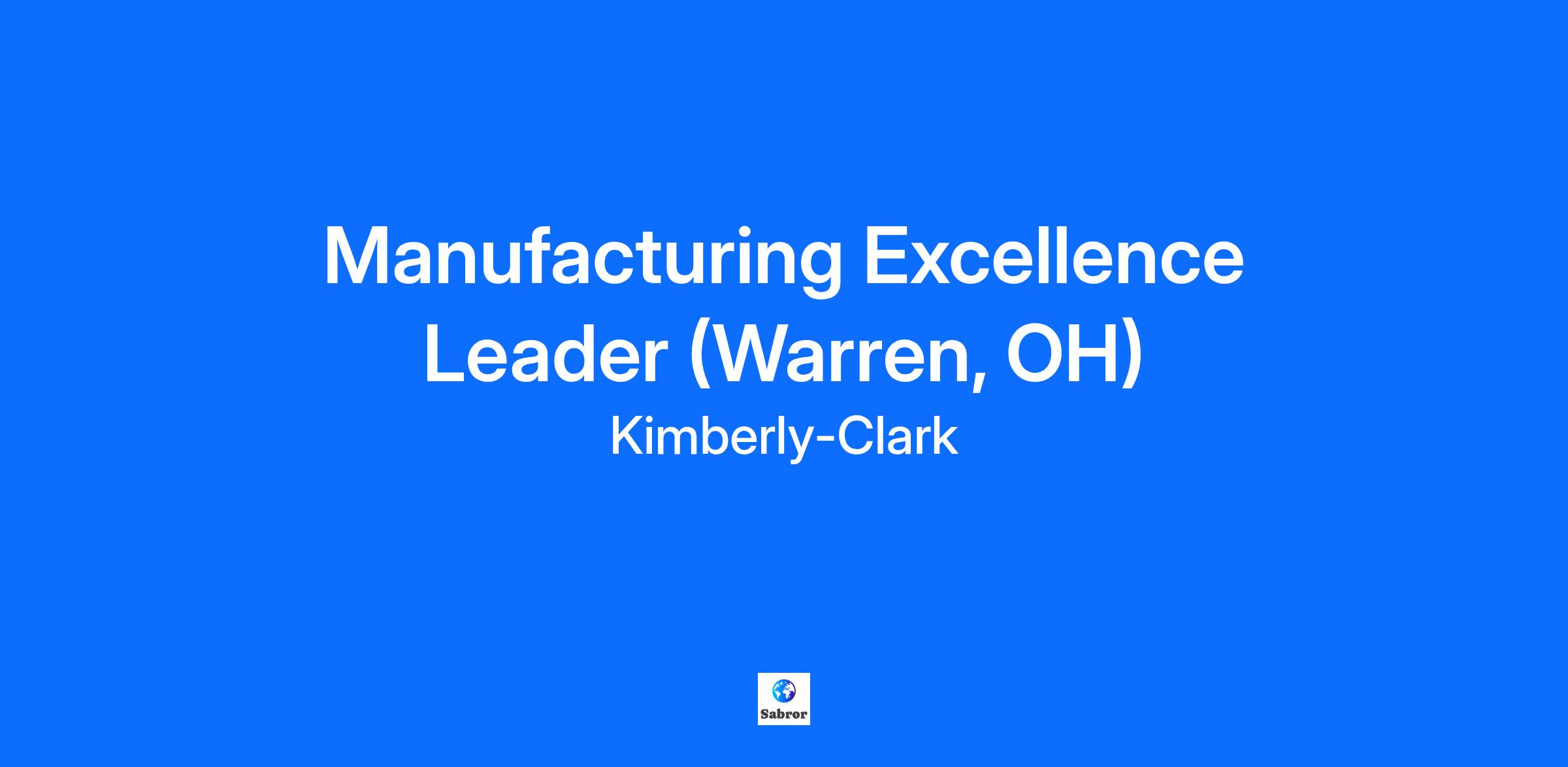 Manufacturing Excellence Leader (Warren, OH) Job Description Provides strategic leadership for Continuous Improvement (CI) and capabilities processes and teams at the manufacturing site. This position is responsible to provide leadership to embed a manufacturing excellence and change management mindset. They will also develop capability and a learning culture through Training 4 Excellence (T4E) standards and processes and drive cost savings and process improvements using various tools and techniques such as Operational Excellence (OPEX) and Lean Six Sigma (LSS) and Fuel to Grow (F2G), while fostering a strong, people first culture for the site. This position plays a critical role in developing and cascading Regional Improvement strategy, defining metrics, and leveraging influential skills to sponsor cost savings initiatives and efficiencies. Leadership responsibilities include: Change management, Digital Transformation, Cost savings, and Training teams. In this role, you will: Safety: Implement loss control throughout the organization by visibly demonstrating that safety is embraced as a value. Support and Champion safety in your manufacturing site and team by driving educational and behavioral processes through the application of OPEX, LSS and T4E tools. Lead your team to complete safety objectives and ensure a safe working environment. Quality: Champion and support Continuous Improvement and T4E programs and processes as the way to deliver quality and process capability improvements. Ensure compliance with regulatory requirements. People: Focus on Organizational Transformation and Culture: Manage teams in accordance with the principles and tenets of the plant’s High Performance Work System and expected K-C Values: We Care, We Own, We Act and Ways of Working: Focus on Consumers, Play to Win, Move Fast and Grow our People. Manage, develop, and support direct reports (T4E Leader, Digital Manufacturing Leader) to lead changes and developments throughout the site and within each function. Lead your site’s organization to: Develop and execute an overall site plan that aligns to the regional strategy to drive a cultural transformation, increasing the engagement and enablement of all team members. Build capability of the asset teams to help lead and manage organizational transformations Incorporate organizational transformation thinking into your team’s processes and tools, including leveraging Digital Manufacturing resources Provide high-level planning with the oversight and/or hands-on execution of the four key areas of Change Management related to site specific initiatives Prepare the Change: Build strong partnerships, consult with leadership, demonstrate empathy, and collaborate on success criteria and KPI progress. Manage the Change: Develop change plan roadmaps, communication, and capability building plans. Identify and escalate issues, solicit feedback, and support project teams with gap analysis and business process discussions. Lead Change Enablement: Manage change networks, ensure participant engagement, and develop and deliver relevant updates. Reinforce the Change: Develop long-term strategies, address resistance, and continuously monitor and adjust the change process. Delivery: Provide strategy to build capability of all team members at the site through the Training 4 Excellence program: Provide leadership support to your T4E leader in their efforts to develop, facilitate and manage the site’s training strategies aligned to the regional strategy, including providing support to the plant On-the-Job system skill trainers. Ensure respective team members are active participants in regional networks in the areas they support, sharing learnings and adopting and applying one best way standards and process. Ensure collaboration between T4E and Digital Manufacturing to drive training and usage throughout the site. Delivery: Provide strategic direction to drive Continuous Improvement, using standard tools and processes, across all functions in the site: Provide Strategic leadership for site’s CI programs and efforts. Reinforce the iOPEX processes and tools to ensure sustainability of the iOPEX program. Build capability and leadership throughout the plant to reinforce commitment to standards and centerlining, returning out of standard/red conditions to green and problem solving Ensure standardization through CI and Culture of Accountability (CoA) practices Provide continuous feedback to leadership team, consistent with OPEX mindsets, Ways of Working and the plants HPWS principles and culture. Facilitate, promote, and support Lean cultural development Identify and drive transformation that is inclusive of front-line and support organizations Provide education on Lean tools, processes and thinking at your site Ensure consistent application of regional framework standards for management systems and processes. Drives the strategic planning processes for the site including development, communication, and follow-up of all strategic activity for the site. Leverage Digital Manufacturing and Change Management to embed these tools and processes into the workforce culture. Cost: Site leader for all F2G programs and delivery of those cost savings. Ensure WAVE is updated and managed for accuracy in partnership with the Wave initiative owner and Finance. Lead weekly site Wave / F2G meetings and ensure updates into the Site Tier 4 meeting. Champion and support CI and T4E programs and processes as the way to deliver long term savings and continuous improvement of overall equipment effectiveness. About Us Huggies®. Kleenex®. Cottonelle®. Scott®. Kotex®. Poise®. Depend®. Kimberly-Clark Professional®. You already know our legendary brands—and so does the rest of the world. In fact, millions of people use Kimberly-Clark products every day. We know these amazing Kimberly-Clark products wouldn’t exist without talented professionals, like you. At Kimberly-Clark, you’ll be part of the best t