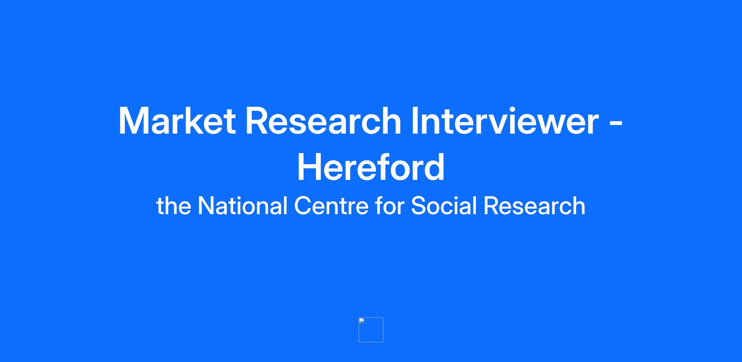Market Research Interviewer - Hereford Department: Field Interviewers Employment Type: Part Time Location: Hereford Compensation: £15.12 / hour Description What you'll do You'll visit people in their homes to carry out vital research interviews on important topics like health, housing and transport. Using a tablet or laptop, you'll guide conversations that capture real experiences of daily life in Britain. This is not a desk job. You'll be out in your community, knocking on doors. People receive a letter beforehand, but they're not always expecting you. Some won't answer. Others will say no. That's completely normal and part of the role. But when someone says yes and shares their story? You'll know you've helped create change that improves people's lives. What you'll earn £20-£30 per interview (typically), plus: • Admin fees and holiday pay (12.1%) • Travel time at £4.68/hour (most projects) for travel to the area you are working in • Mileage at 36p per mile (up to 10,000 miles) • £250 bonus after your launch, then £250 more at two months and four months Average hourly rate: £15.12 (including holiday pay), with experienced interviewers earning more. What you'll need Essential: • Valid UK driving licence and sole use of a car • Class 1 Business insurance • Right to work in the UK • Willingness to complete a DBS check • Reliable home broadband • Laptop or tablet with camera • Comfortable using basic technology • At least 18 hours available per week • Flexibility for weekdays, evenings and weekends • Strong verbal and written English Personal qualities: • Good at talking to people • Friendly and professional • Resilient and confident • Self-motivated and independent • Having good time management and prioritising skills Who this suits This role is ideal if you've worked in retail, hospitality, admin, driving, sales or any customer-facing role. You don't need research experience. We're looking for reliable people who enjoy helping others and want flexible, part-time hours that fit around other commitments. Our process is quick and straightforward: · Apply online · One-way video interview (via Willo – do it anytime, anywhere) · Final interview (includes a short role play) · Offer · Background checks (via Zinc) · Start work Need adjustments during the process? Contact: natcenrecruitment@instant-impact.com Key Responsibilities We’re NatCen, the UK’s largest independent social research organisation. Our work is trusted by government, universities, and charities, and helps improve lives across the country.