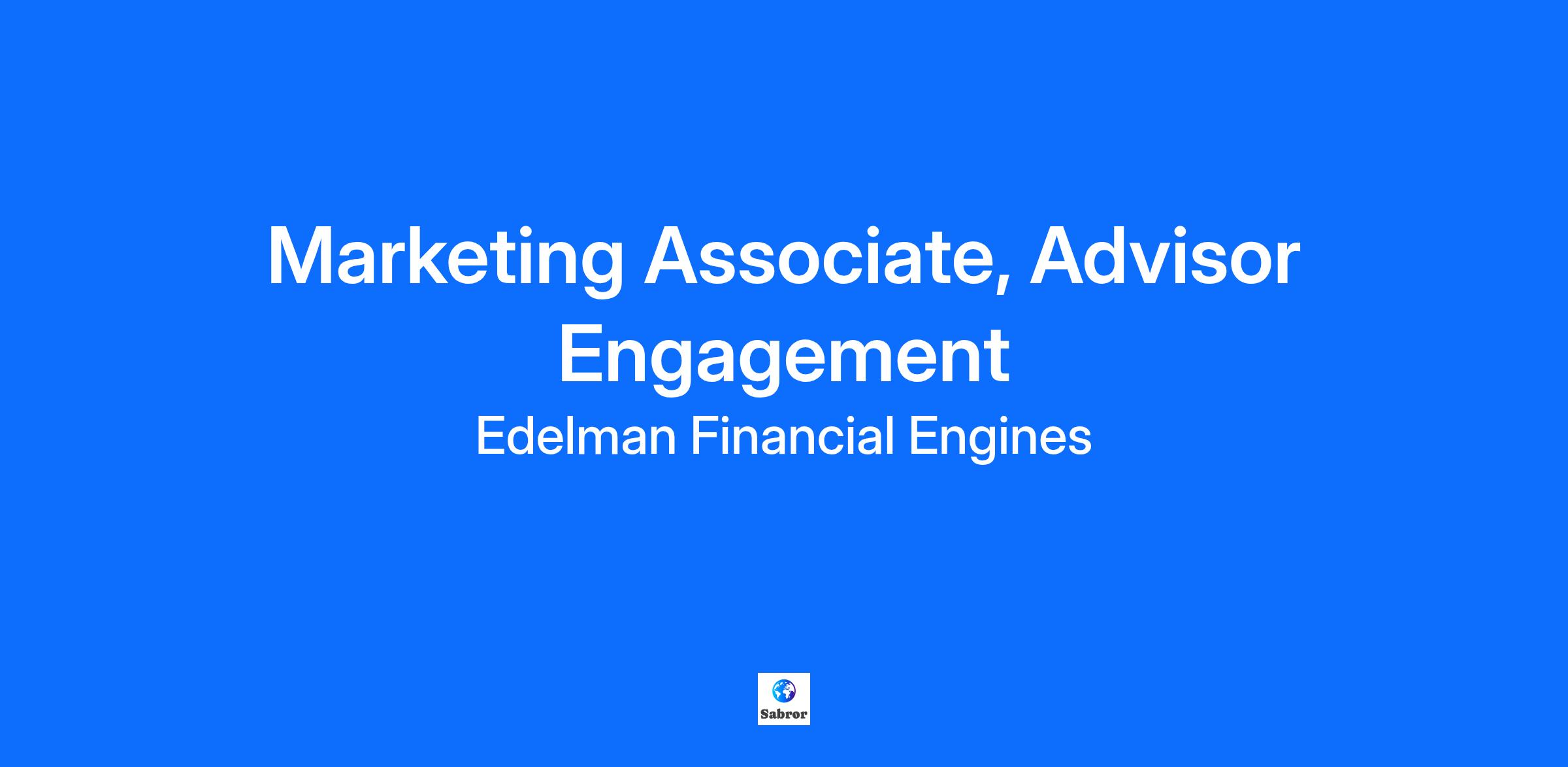 Marketing Associate, Advisor Engagement (Remote) At Edelman Financial Engines (EFE), our purpose is to guide people with the financial advice they need to thrive. We believe that every dollar saved represents a lifetime of hard work and aspirations, and every dollar invested has job to do for our clients. That’s why we are committed to managing our clients’ investments by truly understanding them as people first and then delivering advice, strategies and solutions to help them feel confident about the plans they are making, whether for today, tomorrow, or in the great unknown future. Our goal is to build long-term relationships based on respect, integrity, and a belief that our responsibility is to help people make smart investments decisions in every stage of their lives. Our culture is grounded in our CORE values: Client First, One Team, Respectful Candor, and Endless Curiosity. These values guide everything we do, for our clients and each other. We are committed to moving forward together. If you are inspired by purpose-driven work and a collaborative, values-led culture, we invite you to explore a career with us. As a Marketing Associate, Advisor Engagement on the Employee Solutions Integrated Marketing team, you’ll play a pivotal role in helping to drive engagement with our team of licensed financial advisors. For this role, we are seeking a candidate early in their career yet with professional experience in relatable roles to help advance our desire to put the employee and their needs at the center of everything we do. If you are a creative storyteller with a user-centric mindset and someone eager to make an impact and grow, this may be an opportunity for you! Responsibilities: * Design, develop, and execute multi-channel marketing programs that drive advisor engagement with the goal of increasing client loyalty and driving business growth * Analyze and review advisor engagement metrics to optimize marketing performance and enhance program design * Develop a deep understanding of consumer financial needs and preferences, playing an active role in the development and definition of audience segments. * Partner with Consumer Insights and the National Advisor Center to gather data-driven insights that inform evolving program design * Support the project management of other programs within Integrated Marketing as needed. Requirements: * Bachelor’s Degree in Marketing, Business, or other related field * 3-5 years of consistent track record delivering compelling and impactful work in relatable roles * Experience in the financial services industry preferred * Passion for research and a dedication and desire to understand users and their preferences * A creative thinker/storyteller who can bring new, outside-the-box ideas to the table * Strong writing skills including an ability to simplify complex concepts * Experience collaborating with creative partners (i.e. writers, designers) to bring a vision to life * Ability to develop successful cross-functional partners within and outside of marketing * Organized and detail-oriented with the ability to ensure projects are led effectively and efficiently Edelman Financial Engines takes a market-based approach to pay. The expected base salary range for this role nationally is $64,000 - $85,400. However, final base pay will be carefully determined based on several factors, including responsibilities, job-related skills, relevant experience, geographic location, and market conditions. Additionally, this role may be eligible for other forms of compensation and benefits, such as a discretionary bonus, health, dental and other wellness plans, and 401(k) contributions. Your recruiter can share more about the specific benefits eligible for this role during the hiring process. About Edelman Financial Engines Since 1986, Edelman Financial Engines has been committed to always acting in the best interests of our clients. We were founded on the belief that all investors – not just the wealthy – deserve access to personal, comprehensive financial planning and investment advice. Today, we are America’s top independent financial planning and investment advisory firm, recognized by Barron's 1 with 143+ offices across the country and entrusted by 1.3 million clients to manage more than $300 billion in assets 2 Our unique approach to serving clients combines our advanced methodology and proprietary technology with the attention of a dedicated personal financial planner. Every client’s situation and goals are unique, and the powerful fusion of high-tech and high touch allows Edelman Financial Engines to deliver the personal plan and financial confidence that everyone deserves. For more information, please visit EdelmanFinancialEngines.com [https://www.edelmanfinancialengines.com/]. © 2024 Edelman Financial Engines, LLC. Edelman Financial Engines® is a registered trademark of Edelman Financial Engines, LLC. All advisory services provided by Financial Engines Advisors L.L.C., a federally registered investment advisor. Results are not guaranteed. See EdelmanFinancialEngines.com/patent-information for patent information. AM2789819 For California residents, please see the link for the Privacy Notice for Candidates [https://www.edelmanfinancialengines.com/wp-content/uploads/2020/08/Edelman_Financial_Engines_Candidates.pdf]. California law requires that we provide you this notice about the collection and use of your personal information. Please read it carefully. Edelman Financial Engines encourages success based on our individual merits and abilities without regard to race, color, religion, creed, sex, gender identity or expression, sexual orientation, pregnancy; marital, domestic partner or civil union status; national origin, citizenship, ancestry, ethnic heritage, genetic information, age, legally recognized disability, military service or veteran status. Accommodations are modifications or adjustments to the hiring process that would enable you to ful