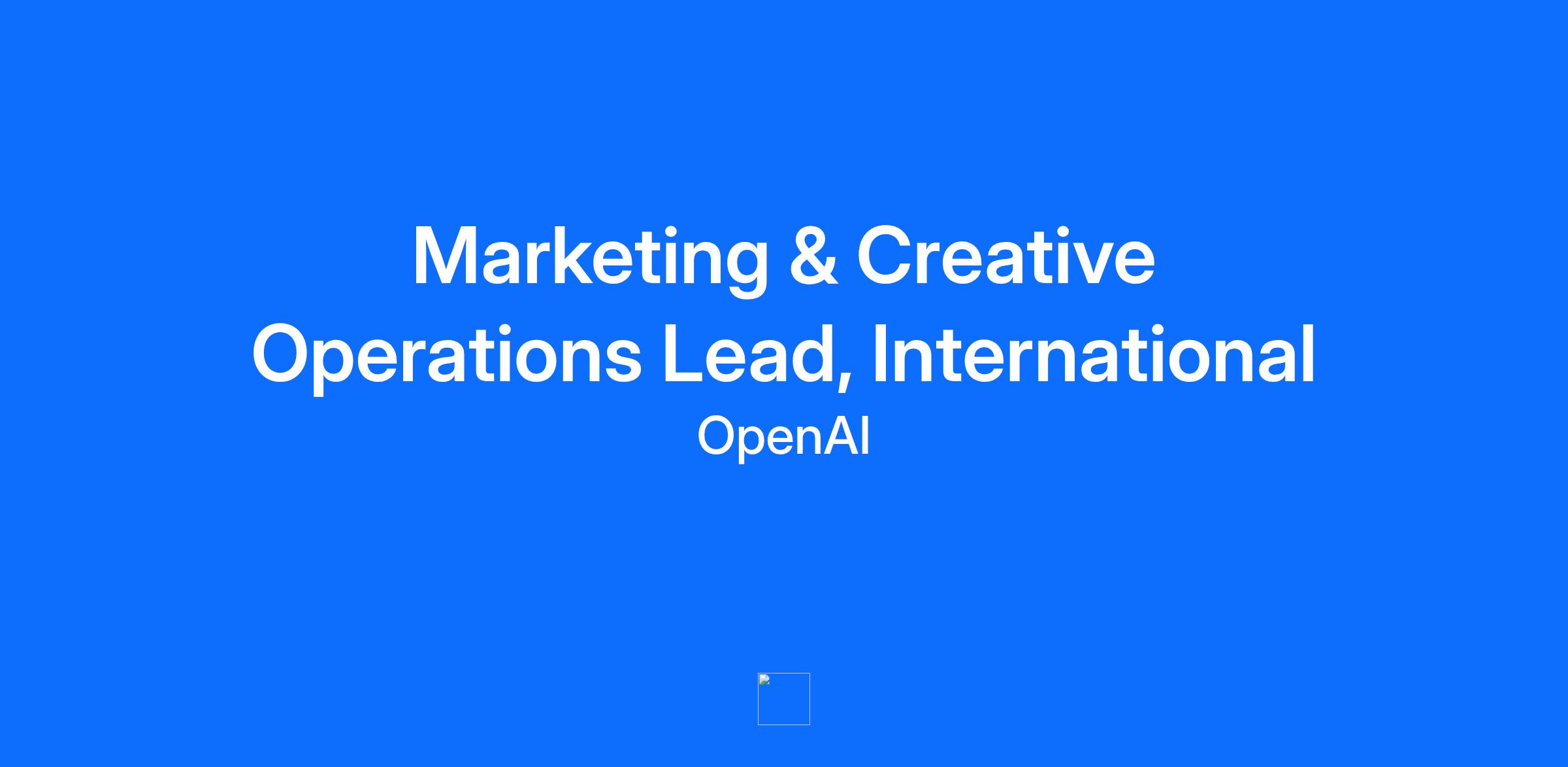 About the Team Like every team at OpenAI, the Marketing team contributes to our broader mission of ensuring responsible and widespread adoption of artificial intelligence. With that aim in mind, we are responsible for developing and executing strategies that drive awareness, engagement, and usage for OpenAI’s products and platform amongst our core audiences. Our focus extends beyond just promoting product features; we aim to provide valuable insights and resources that help our users make the most out of AI technologies. Marketing Operations is the connective tissue that enables Marketing to run at scale, with speed and impact. We design the systems, workflows, and culture that keep our global marketing engine running smoothly: from planning through launch and measurement. We’re a collaborative, solutions-oriented team that thrives in ambiguity and creative problem-solving. By partnering across the entire organization, we bring clarity, consistency, and momentum to everything we do—fueling bold ideas and impactful brand moments. About this role We are hiring a senior International Marketing & Creative Operations Lead who deeply understands global-to-local workflows, creative and marketing development, and the operational realities of working across time zones, cultures, and markets. This person will partner closely with International Marketing, Creative Studio, and regional teams to build clear workflows, operating cadences, and decision frameworks for localization and transcreation—ensuring work lands with impact while maintaining brand integrity. In this role, you will: Bring order to complexity: defining how global campaigns are briefed, localized, approved, produced, and launched across markets. Establish scalable systems, planning rhythms, and cross-functional norms that allow teams to move quickly without sacrificing quality or cultural relevance. Shape how OpenAI builds and supports international marketing teams, agencies, and partners over time. Thrive in ambiguity, bring order to creative chaos, and build systems that let product, design, and creative teams move quickly without losing quality. You will thrive if you have: 8–12 years in marketing operations, creative operations, international marketing ops, product marketing ops, or launch operations. Deep experience partnering with global, regional, and local teams to localize and transcreate creative and marketing work Strong understanding of creative, design, and marketing development lifecycles, especially in multi-market contexts Proven ability to build global-to-local operating models, including workflows, planning cadences, and approval structures Experience designing and scaling localization and transcreation workflows, including agency and vendor partnerships Exceptional cross-functional partner to Creative, International Marketing, Product Marketing, Design, Legal, and regional stakeholders Comfortable operating across time zones and cultures; strong communicator with global empathy High autonomy and systems thinking; able to create clarity where none exists Zero-to-one experience (launching a new product or building a function from scratch). Experience standing up new international programs, teams, or agency models Familiarity with localization tooling, AI-assisted localization workflows, or transcreation best practices About OpenAI OpenAI is an AI research and deployment company dedicated to ensuring that general-purpose artificial intelligence benefits all of humanity. We push the boundaries of the capabilities of AI systems and seek to safely deploy them to the world through our products. AI is an extremely powerful tool that must be created with safety and human needs at its core, and to achieve our mission, we must encompass and value the many different perspectives, voices, and experiences that form the full spectrum of humanity. We are an equal opportunity employer, and we do not discriminate on the basis of race, religion, color, national origin, sex, sexual orientation, age, veteran status, disability, genetic information, or other applicable legally protected characteristic. For additional information, please see OpenAI’s Affirmative Action and Equal Employment Opportunity Policy Statement. Background checks for applicants will be administered in accordance with applicable law, and qualified applicants with arrest or conviction records will be considered for employment consistent with those laws, including the San Francisco Fair Chance Ordinance, the Los Angeles County Fair Chance Ordinance for Employers, and the California Fair Chance Act, for US-based candidates. For unincorporated Los Angeles County workers: we reasonably believe that criminal history may have a direct, adverse and negative relationship with the following job duties, potentially resulting in the withdrawal of a conditional offer of employment: protect computer hardware entrusted to you from theft, loss or damage; return all computer hardware in your possession (including the data contained therein) upon termination of employment or end of assignment; and maintain the confidentiality of proprietary, confidential, and non-public information. In addition, job duties require access to secure and protected information technology systems and related data security obligations. To notify OpenAI that you believe this job posting is non-compliant, please submit a report through this form. No response will be provided to inquiries unrelated to job posting compliance. We are committed to providing reasonable accommodations to applicants with disabilities, and requests can be made via this link. OpenAI Global Applicant Privacy Policy At OpenAI, we believe artificial intelligence has the potential to help people solve immense global challenges, and we want the upside of AI to be widely shared. Join us in shaping the future of technology.