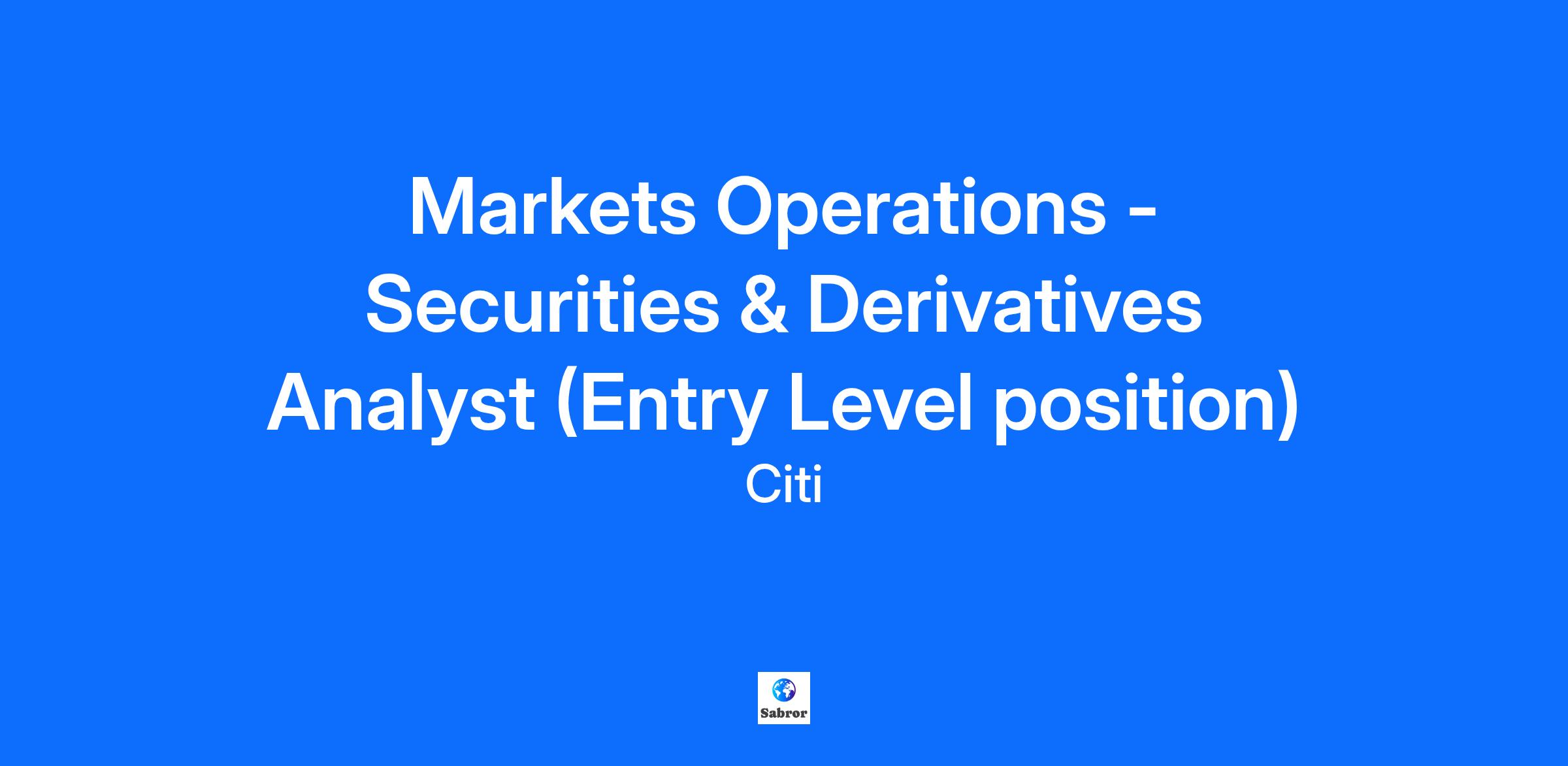 Markets Operations - Securities & Derivatives Analyst (Entry Level position)