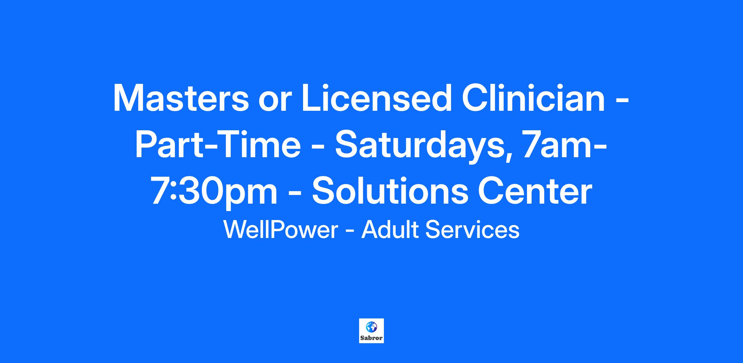Wellpower provides you with the support you need to help you develop a career in helping others succeed. We innovate, adapt, and leverage the diverse perspectives of the people on our team and the people we serve in everything we do. WellPower is proud to be an equal-opportunity employer. All qualified applicants will receive consideration for employment, transfer, or promotion opportunities without regard to race, color, religion, gender, gender identity or expression, sexual orientation, national origin, genetics, disability, age, or veteran status. Clinicians: The Solutions Center is a 24/7 crisis facility serving those in the community that come into contact with first responders. The clinician provides direct mental health clinical assessments and treatment to individuals experiencing a behavioral health crisis. The clinician works with others in a clinical team environment to help individuals move toward recovery. This is a part-time position, every Saturday, 7:00a-7:30p. Location: - 2929 W 10th Ave Learn more about WellPower: Pay Range & Benefits: Masters $30.05/hr LCSW/LPC/LMFT $36.14/hr - $36.64/hr Language Differential $1 - $2.50 WellPower is committed to fair and equitable hiring with salaries based on relevant factors, such as work experience, education, and certification/licensure (rather than wage history). Toward the principle of equal pay for equal work, we post and hire within defined hiring salary ranges. We ask all applicants to carefully review the hiring salary range for each posted job opportunity, as we will not hire outside the predetermined range. All full-time, benefits eligible employees will be eligible for WellPower’s benefits plan. For a full description of benefit offerings, please visit: https://wellpower.org/workplace-of-choice/. Responsibilities & Duties: Provide psychological evaluations/problem identification, crisis interventions, and individual, group, and/or family therapy to assigned clients. Provide case management services to clients as needed or assigned. Develop treatment plans; monitor treatment progress and follow-up at disposition times. Assist clients with psychological development, social development, and rehabilitation. Coordinate client's use of other WellPower programs and outside community resources. Coordinate medication/medicinal needs of clients with psychiatrists, nurses, and other medical sources. Maintain accurate and timely clinical records consistent with WellPower standards. Maintain a positive and inclusive environment for both staff and clients Participate in team/department meetings, in-services, and supervisory sessions as required. Perform 27-65 (M-1) "mental health hold" evaluations Perform other duties as assigned. Qualifications & Requirements: Education: Master's Degree in social work, psychology, or similar field. Current license as a LCSW/LPC/LMFT in the State of Colorado preferred. Experience: Three years experience in clinical social work preferred but not required. Experience working with moderate to severe and persistently mentally ill populations. SUPERVISORY RESPONSIBILITIES: Assist with program supervision of students/volunteers as determined appropriate. Why Work at WellPower? Join a workplace where purpose meets passion! Mission-Driven Impact: Be part of meaningful work that transforms lives and strengthens the Denver community. Wellness-Focused Culture: Thrive in an organization that prioritizes your self-care and well-being. Award-Winning Workplace: Proudly named a Top Workplace by The Denver Post for 11 consecutive years. Comprehensive Benefits: Access medical, dental, vision insurance, PTO, and retirement matching—available at just 30 hours per week. Competitive Pay: Our $26.72/hour minimum wage ensures fair compensation for all employees. Licensure Support: Free supervision for LCSWs, LPCs, and LMFTs. Team Activities: Connect with colleagues through fun leagues like bowling, volleyball, dragon boat racing, and more! Tuberculosis (TB) screening, testing - TB screening and testing, is required and must be completed prior to hire ( i.e., preplacement), and maintained during employment. #LI-TM1