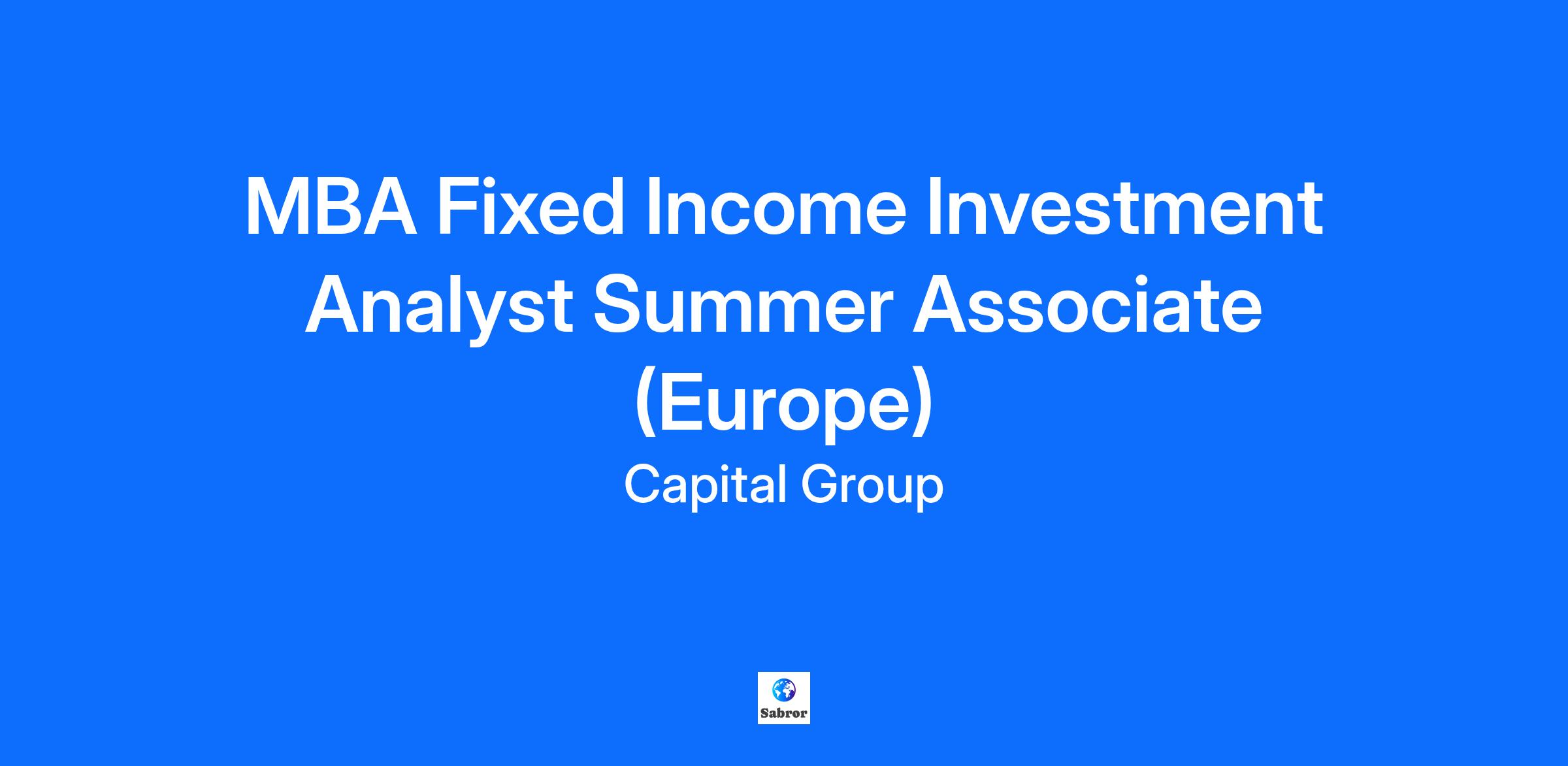 Capital Group seeks bright, highly motivated and self-directed individuals for Fixed Income Investment Analyst internship opportunities in London. As a summer associate, you will conduct fundamental research on issuers in a segment of the bond market and research related fixed-income securities, with the objective of presenting an investment thesis and recommendation to an audience of portfolio managers and analysts. Fixed-Income Summer Associate Opportunities: Sovereign/Emerging Markets Structured Investments (RMBS, CMBS, ABS) Corporate/Credit Municipal/Tax-Exempt Your analysis will incorporate a blend of macro (political, economic, sector/industry) and micro (issuer-specific financial, legal/structural, security-specific) considerations, which you will synthesize with bond valuations. You will be guided in your work by an investment analyst, although you will be largely self-directed in your approach and conclusions. Throughout the summer, you will learn more about investment management, and have access to the industry’s most respected investment professionals. Your internship with Capital will provide you with hands-on experience similar to that of a full-time analyst. Qualifications MBA degree candidate with a graduation date of December 2026 or May/June 2027 from an accredited university, or business school Demonstrated academic achievement Ability to direct independent work effort in a cooperative environment Grasp of macro and micro economics and a curiosity about the bond market Healthy appetite for research, writing and business travel Excellent communications skills, both written and verbal Students currently enrolled at schools where we have an on-campus recruiting presence, please apply by your school-specific deadline. All other candidates please apply by Sunday, December 7. In addition to a highly competitive base salary, per plan guidelines, restrictions and vesting requirements, you also will be eligible for an individual annual performance bonus, plus Capital’s annual profitability bonus plus a retirement plan where Capital contributes 15% of your eligible earnings. You can learn more about our compensation and benefits here. * Temporary positions in Canada and the United States are excluded from the above mentioned compensation and benefit plans. We are an equal opportunity employer, which means we comply with all federal, state and local laws that prohibit discrimination when making all decisions about employment. As equal opportunity employers, our policies prohibit unlawful discrimination on the basis of race, religion, color, national origin, ancestry, sex (including gender and gender identity), pregnancy, childbirth and related medical conditions, age, physical or mental disability, medical condition, genetic information, marital status, sexual orientation, citizenship status, AIDS/HIV status, political activities or affiliations, military or veteran status, status as a victim of domestic violence, assault or stalking or any other characteristic protected by federal, state or local law. Capital Group is one of the largest and most trusted financial companies in the world, with the goal of improving people's lives through successful investing. Our shared values of integrity, client focus, long-term view, diverse perspectives and community inspire our associates every day. A career at Capital Group means having countless opportunities to explore, grow and succeed. Learn more about compensation & retirement Learn more about our benefits Learn more about our hybrid schedule Learn more about our culture and core values Learn more about our commitment to responsible AI and how it shapes your candidate experience