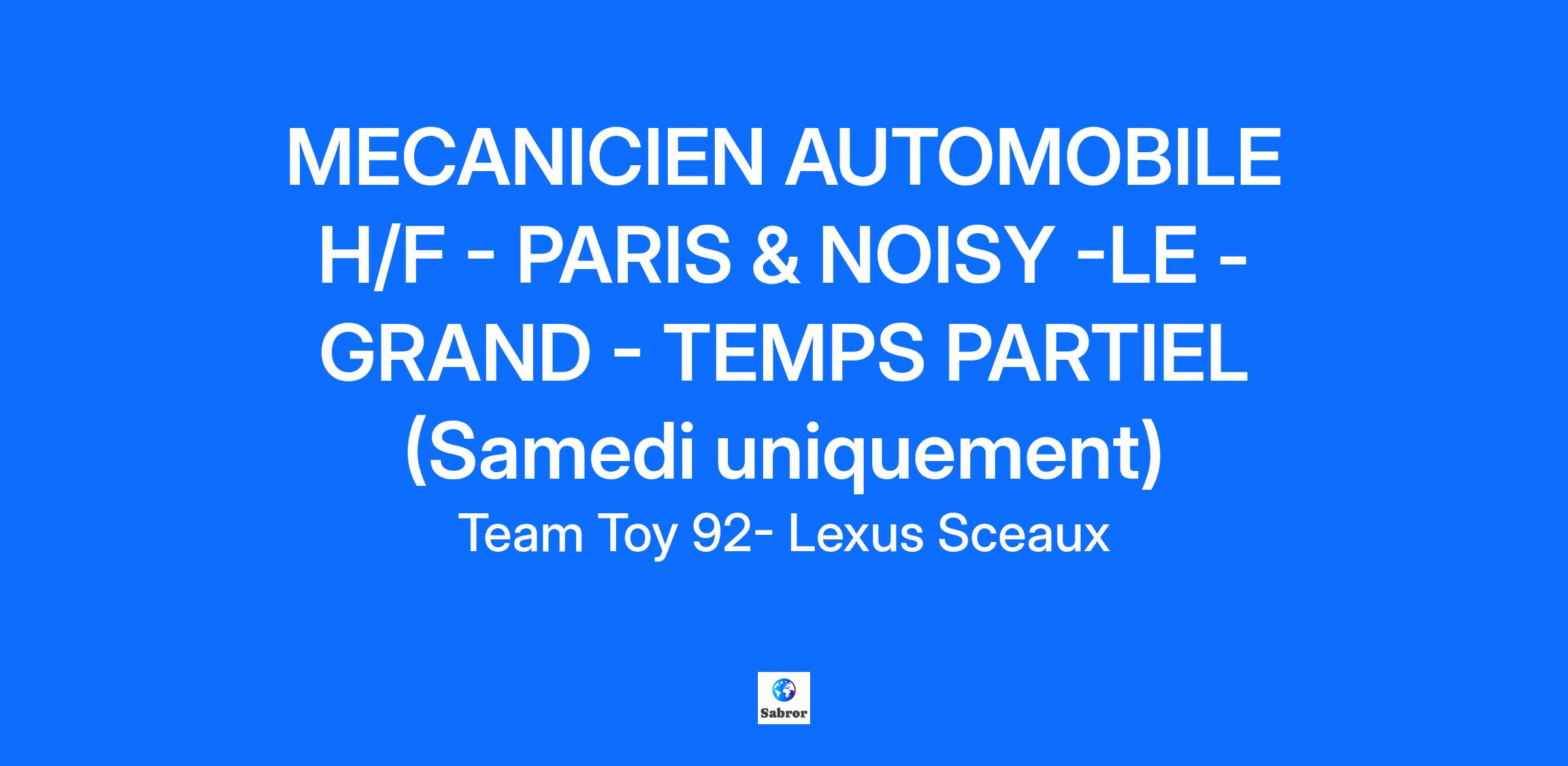 Dans le cadre de notre développement, nous recherchons un mécanicien pour nos concessions basées à Paris (19éme) et Noisy-le-Grand. Ce poste est à pourvoir en CDI à temps partiel UNIQUEMENT LE SAMEDI sur une base horaire de 8h.