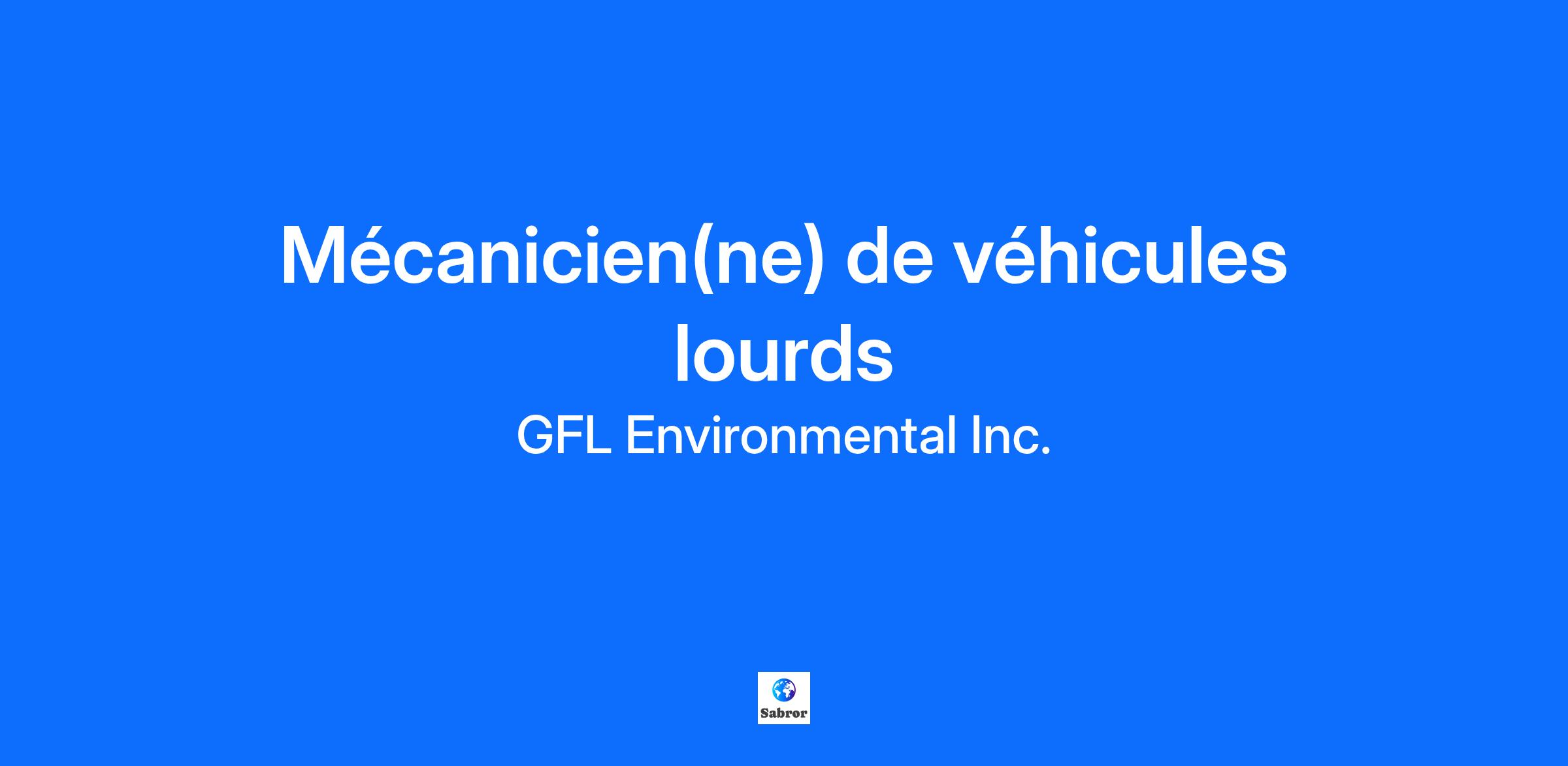 Poste : Mécanicien(ne) de véhicules lourds Lieu de travail : 3525, Boul Laurier Est, Saint-Hyacinthe, QC, J2R 1K1 Poste permanent / JOUR Bienvenue chez Matrec, une division de GFL! Nous sommes une entreprise dynamique, axée sur la croissance et la sécurité. GFL assure la collecte et le traitement des déchets, du recyclage ainsi que des matières organiques. Nous couvrons l’Amérique du Nord avec plus de 20 000 employés. Nous sommes actuellement à la recherche d’un mécanicien(ne) de véhicules lourds pour compléter notre équipe au garage de St-Hyacinthe. Sous l’autorité de la superviseure des opérations, le mécanicien(ne) œuvre dans un atelier mécanique spécialisé dans la réparation de camions lourds. À titre de mécanicien(ne) de véhicules lourds, vous serez responsable de : Principales responsabilités · Dans le cadre de vos fonctions, vous serez responsable de réaliser des opérations de mécanique générale sur des véhicules lourds · Vous devrez vous occuper de composantes électriques et hydrauliques; · Vous devrez réaliser des opérations de maintenance adéquate sur des freins à air; · Vous serez responsables de faire des changements de composantes; · Vous aurez à compléter quotidiennement les comptes rendus du travail fait et à faire; · Vous communiquerez à votre supérieur de la date, l’heure et la durée de la mise hors service de l’équipement et des camions lourds; · Vous ferez l’entretien et la mécanique de véhicules lourds · Vous devrez exécuter toutes autres tâches connexes requises par son supérieur immédiat. Compétences recherchées : · DEP en mécanique de véhicules lourds, d’engins de chantier ou en mécanique agricole; · Bienvenue aux finissants et aux apprentis mécaniciens; · Bonnes connaissances en hydraulique, en pneumatique et en électricité; · La carte P.E.P. (Programme d’Entretien Préventif) et la carte de roue sont des atouts. Conditions de travail : · Emploi permanent / Jour · Salaire concurrentiel selon l’expérience; · Programme complet d’assurances collectives. · Programme de formation We thank you for your interest. Only those selected for an interview will be contacted. GFL is committed to equal opportunity for all, without regard to race, religion, color, national origin, citizenship, sex, sexual orientation, gender identity, age, veteran status, disability, genetic information, or any other protected characteristic. If you are interested in applying for employment and need special assistance or an accommodation to apply for a posted position, please contact myworkdayrecruitment@gflenv.com Current GFL Employees If you are an existing GFL employee and would like to search and apply to current job openings, please visit the internal GFL Jobs Hub. At the heart of GFL lies our greatest asset—our people. So, we're glad you landed here! We believe in great careers, making a positive impact on the environment and supporting our people with their life ambitions. We aspire to create the right jobs in a way that brings you along with us. At GFL, growth isn’t just for our business—it’s for our people. Because we see the potential in all our employees to do whatever it is they set their mind to, and we’re proud to support them in that journey. We consider our employees’ personal goals, helping them create the career, and life, that they desire—whether it’s advancing in their job, learning new skills, forming lasting relationships, or mentoring others, while having time to pursue other life ambitions. With safety and sustainability at the core of what we do, we all come together to form “Team Green”—united by our shared purpose to provide environmental solutions that enable our customers and the communities we serve to be Green For Life. We’re proud to say that working for GFL is more than a job. It’s an opportunity to make a difference and grow tremendously along the way. Regardless of the work we’re doing today, we’ve got our sights set on the big picture—not just tomorrow, but for life. GFL empowers those looking for growth in their career and lives, whether that's on our Field Operations teams or Professional Services teams. Field Operations – Our Field positions offer candidates across North America the potential for limitless growth and skill expansion as the front line of our organization, making them central to our company's vision of creating cleaner and more sustainable communities. Professional Services – Our Corporate positions located in key North American offices grow candidates to form strong client relations, manage key programs and accounts, and ensure our Field teams are operating at maximum efficiency.