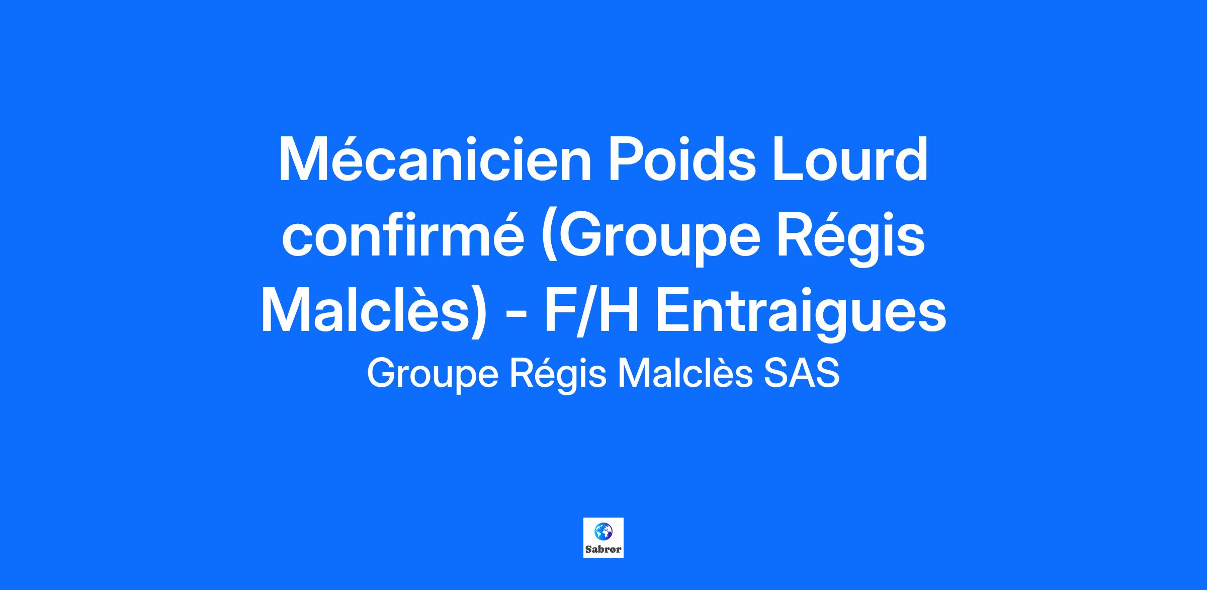 Mécanicien Poids Lourd confirmé (Groupe Régis Malclès) - F/H Entraigues