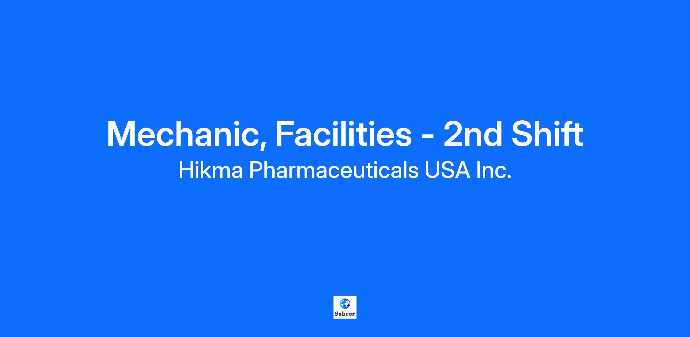 Job Title: Mechanic, Facilities - 2nd Shift