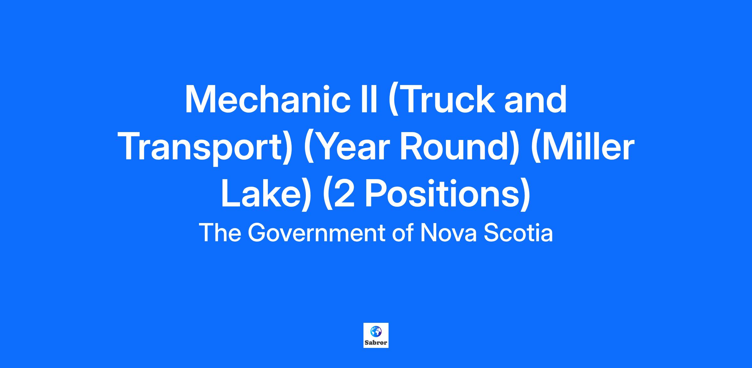 Competition # : 46814 Department: Public Works Location: MILLER LAKE Zone: Miller Lake Type of Employment: Year Round Union Status: CUPE - NSPG Closing Date: 26-Sep-25 (Applications are accepted until 11:59 PM Atlantic Time) Under Article 13 of the Collective Agreement between the Nova Scotia Department of Public Works and the Canadian Union of Public Employees, Local 1867, the following opportunity is being posted. Please quote the competition number and the Zone you are applying for as noted above on your application.About Us At the Department of Public Works we are responsible for building and maintaining a sustainable provincial infrastructure for Nova Scotians. From highways and bridges to government buildings and registration of vehicles, safety and quality of life are top of mind. We support Nova Scotia’s 23,000 kilometers of roads and highways, 4,100 bridges, and 9 provincial ferries.Our Fleet Services Division is pivotal in ensuring Public Work's Fleet is running smoothly; ensuring the safety of our provincial road network.About Our Opportunity We will ensure you have the right tools to do the job, and there is nothing more important than your safety. You have a clean workspace, and your ideas and input are valued and considered. Your coveralls and other personal protective equipment (PPE) are provided, as are the larger shared tools available in our fully stocked inventory tool room. We also have an annual footwear and tool reimbursement allowance; as you must bring your own mechanical tools.Primary Accountabilities Under the general supervision of the Fleet Service Coordinator, the Mechanic II diagnoses equipment failure, repairs, rebuilds and adjusts a variety of government mobile machinery and equipment used to perform road maintenance activities for both summer and winter operations. You will use specialized tools and equipment located at a government facility designed and equipped for mechanical work, assist with field repairs as required, and other related duties as required to complete equipment repairs, modifications and/or preventative maintenance.Qualifications and Experience Some high school and an Inter-Provincial Red Seal Certificate of Qualification in Truck and Transport plus a minimum of five (5) years of diversified mechanical experience.Upon hire, applicants will be required to successfully complete Nova Scotia Motor Vehicle Inspection (MVI) training as part of their probationary requirements.A valid Nova Scotia driver’s license and mechanic tools are required.Knowledge of computer-controlled engine diagnostic technology and competency as well as general knowledge of computers is required. Demonstrated oral and written communication skills and the ability to work in a team environment. An Inter-Provincial Red Seal Certificate of Qualification in (Heavy Duty) Equipment, Air Conditioning Certification and Air Brake Endorsement would be considered assets. Completion of training and knowledge of the Occupational Health and Safety Act, First Aid and WHMIS are further assets to be considered.You consistently demonstrate initiative in your role; remaining up to date in changes to equipment, methods and technology within the mechanical field. Your exceptional communication skills will assist you when working with staff to help diagnose and resolve equipment issues. You are a self-motivated individual who works both independently with minimal supervision and participates fully as an effective team player. You consistently maintain a professional and courteous disposition and hold a high standard for clients. We will assess the above qualifications and competencies using one or more of the following tools: written examination, standardized tests, oral presentations, interview(s), and reference checks.Benefits Based on the employment status and union agreement, the Government of Nova Scotia offers its employees a wide range of benefits such as a Defined Benefit Pension Plan, Health, Dental, Life Insurance, General illness, Short and Long Term Disability, Vacation and Employee and Family Assistance Programs. For information on all our Benefit program offerings, click here: Benefits for government employees.Working Conditions This position is based at the Miller Lake mechanical branch and does not typically require travel. Occasional travel for training or support at other branches may be required. Work is performed in a mechanical repair environment occasioned by noise, smoke and gas fumes and at times adverse weather conditions while operating in a field environment. Considerable standing, lifting, carrying and moving about is a requirement of this position.Additional Information These two (2) opportunities are for Year-Round positions based of the Miller Lake mechanical branch. You must bring your own mechanical tools.What We Offer Career Development where you have access to career guidance, tools, resources, and ongoing training for every stage of your career. Engaging workplace. Our Employees feel valued, respected, connected, and tuned in. We have forward-thinking policies and strategies. Countless Career Paths. Pay Grade: MECHANIC Salary Range: $35.86 Hourly Employment Equity Statement: Our goal is to be a diverse workforce that is representative, at all job levels, of the citizens we serve. The Government of Nova Scotia has an Employment Equity Policy, and we welcome applications from Indigenous People, African Nova Scotians and Other Racially Visible Persons, Persons with Disabilities and Women in occupations or positions where they are under-represented. If you are a member of one of these equity groups, you are encouraged to self-identify on your electronic application. Accommodation Statement: We are committed to providing an inclusive and accessible recruitment process. Candidates may request accommodations based on any grounds protected by the Human Rights Act. If you require an accommodation throughout the recruitment process, please contact us at compet
