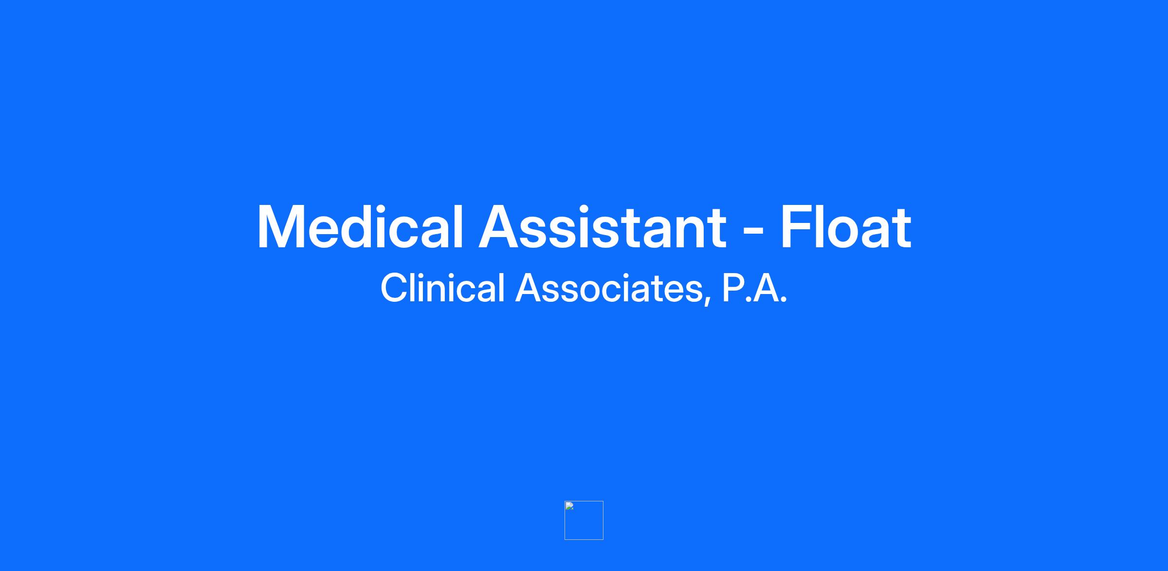Description At Clinical Associates, we make being healthy easier. We connect our patients to a seamless system of integrated medical care, which includes in-house specialists in areas of practice, from cardiology to podiatry. We offer growth and advancement within a family feel atmosphere. We have served the community for over 50 years. We are seeking to hire an experienced Certified Medical Assistant (Float) for our office in Reisterstown located at 120 Westminster Pike! Shift Hours: Monday - Friday **You must be available to work day shift as early as 8:00am and be available to work a rotating shift between 6:00pm -7:00pm one evening per week. Our ideal candidates must be willing to work in a fast paced, team environment and provide excellent care and service to our patients. Internal Medicine / Primary Care experience of 1-2 years is required. The Medical Assistant will be responsible for providing a positive, supportive, nurturing, yet professional experience whether triaging calls, rooming patients and assisting during an office visit, or providing follow-up to patients and/or families. The Medical Assistant will perform a variety of services up to and including: · Assistance during routine exams · Recording a patient history and logging vital signs. · Obtaining and tracking authorizations and test results · Entering lab / diagnostic test orders · Scheduling appointments, procedures, or imaging · Providing Patient Service Representative coverage when needed. Requirements · High School Diploma or G.E.D. · Current registration/certification with an accredited Medical Assistant program. · Internal Medicine / Primary Care (Required) · Excellent patient care and customer service skills. · Detail oriented with the ability to efficiently multitask and stay organized · Proficiency in EHR/ computer skills (Nextgen is a plus); CRISP; Cover My Meds · Candidates selected for an interview will be required to take a medical skill assessment. Benefits · Paid Time Off · Health insurance · Dental insurance · Vision insurance · Life Insurance · 401(k) matching Clinical Associates is an equal opportunity employer and all qualified applicants will receive consideration for employment without regard to race, color, religion, sex, national origin, disability status, protected veteran status, or any other characteristic protected by law.