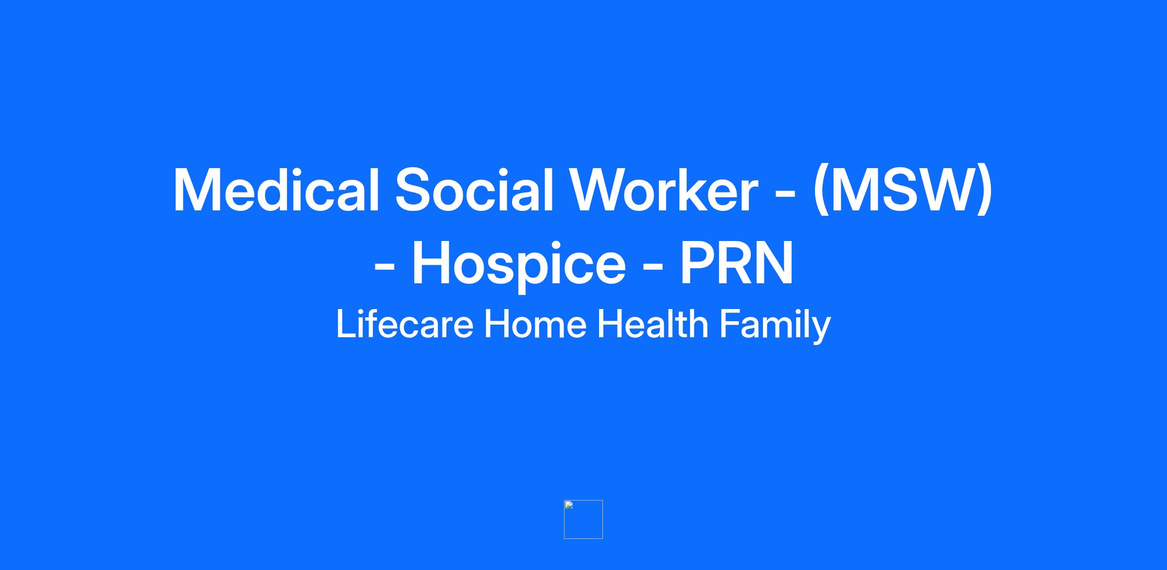 Medical Social Worker - (MSW) - Hospice - PRN