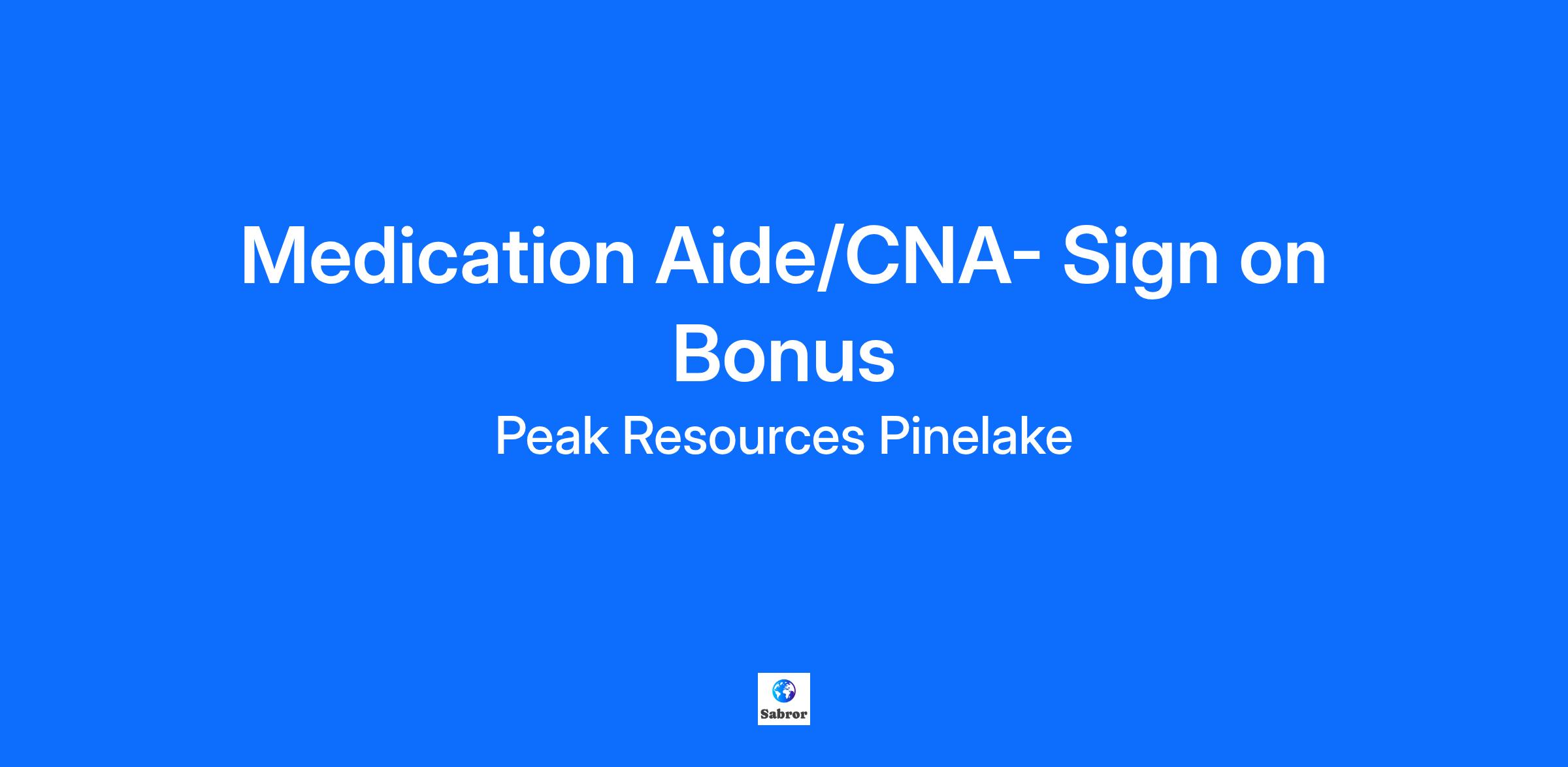 We are currently seeking a Full-time Medication Aide to join our team at Peak Resources Pinelake.
