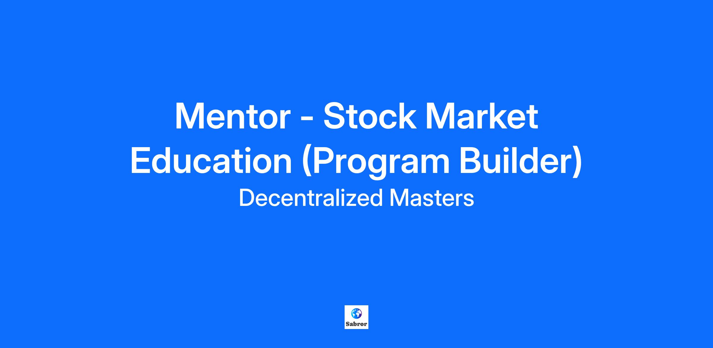 At Decentralized Masters, we’ve built one of the most successful crypto education programs in the world, empowering over 4,000 investors to transform their financial futures. Now, we’re expanding our impact by launching our first-ever Stock Market Education Program, and we’re looking for a passionate Stock Mentor to help us build it from the ground up.