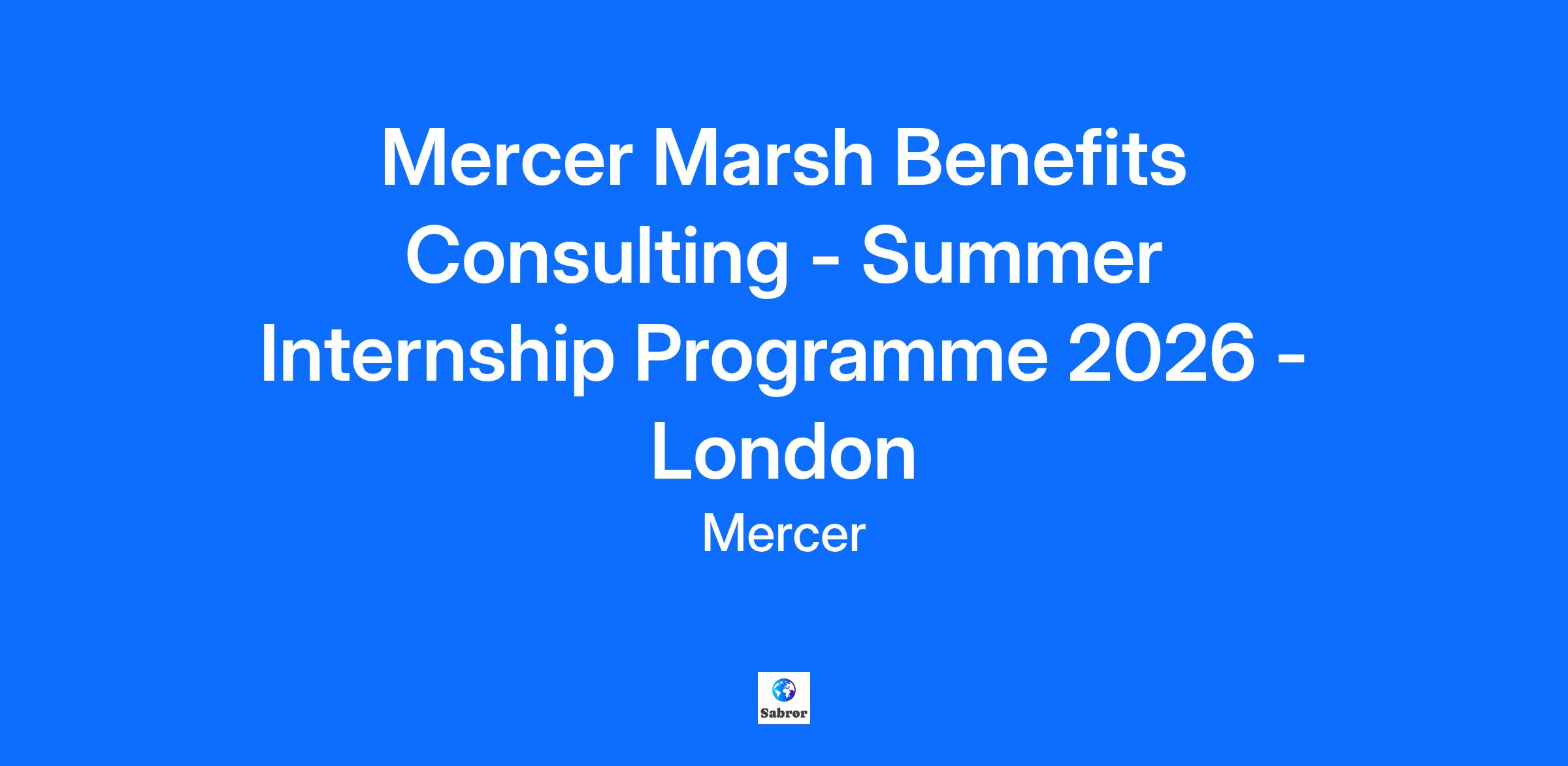 Mercer Marsh Benefits Consulting - Summer Internship Programme 2026 About the Programme Mercer is part of the Marsh McLennan family. At Mercer, we believe in building brighter futures, and together, we’re redefining the world of work, reshaping retirement, and investment outcomes, and unlocking real health and wellbeing. Mercer Marsh Benefits (MMB) is the largest benefits consultancy in the UK, and we work with clients to design the best benefits package for their employees. MMB offer our clients a wide range of employee benefits consulting, brokerage and digital solutions, all of which are designed to improve the benefits experience for our client’s most valuable asset – their people. The nature of the employee benefits industry is changing, and at MMB we are excited to be leading this change. The MMB Consulting Academy is designed to deliver against our home-grown talent strategy with a choice of pathways to a career in consulting and sales. We are looking for candidates to join our 8-week MMB Consulting Internship and tackle new challenges, develop a breadth of skills, and have fun at the same time! If you are successful on the internship, we will offer you a position in our 2027 graduate program. For more information about MMB, visit Mercer Marsh Benefits (MMB) | Mercer UK. What can you expect? Successful candidates will spend 8 weeks aligned to a team in MMB, gaining experience of internal projects and working with clients, as well as attaining a basic understanding of our industry You will be aligned to either a sales, consulting, digital or specialist team in MMB You will be assigned a buddy who is a current graduate program member to help you gain firsthand understanding of the full program, and someone to support you through our time with us You will work on a project with other interns from the across Marsh McLennan UK, and expand your understanding of all of our companies We will count on you to: Be engaged, proactive and enthusiastic in your work, embracing the varied learning and work opportunities Demonstrate strong positive attitudes and behaviours Build a strong internal network within MMB and more widely across Marsh McLennan What you need to have: Be a penultimate year student and expected to achieve a minimum 2.1 degree classification or equivalent in a business, humanities or language related degree Permanent Right to Work in the UK or Republic of Ireland (no visa sponsorship provided) What makes you stand out? Self-motivated and goal-orientated with a drive to make a positive impact Strong interpersonal and communication skills, both written and verbal Able to build rapport quickly and interact confidently with a wide range of people at different levels of seniority Ability to work well independently or within a team Being resilient, driven, articulate and highly motivated An interest in health & wellbeing and social impact Understanding of consulting, sales and brokerage solutions Why join our team: We help you be your best through professional development opportunities, interesting work and supportive leaders. We foster a vibrant and inclusive culture where you can work with talented colleagues to create new solutions and have impact for colleagues, clients and communities. Our scale enables us to provide a range of career opportunities, as well as benefits and rewards to enhance your well-being. Mercer, a business of Marsh McLennan (NYSE: MMC), is a global leader in helping clients realize their investment objectives, shape the future of work and enhance health and retirement outcomes for their people. Marsh McLennan is a global leader in risk, strategy and people, advising clients in 130 countries across four businesses: Marsh, Guy Carpenter, Mercer and Oliver Wyman. With annual revenue of $24 billion and more than 90,000 colleagues, Marsh McLennan helps build the confidence to thrive through the power of perspective. For more information, visit mercer.com, or follow on LinkedIn and X. Marsh McLennan is committed to embracing a diverse, inclusive and flexible work environment. We aim to attract and retain the best people and embrace diversity of age background, civil partnership status, disability, ethnic origin, family duties, gender orientation or expression, gender reassignment, marital status, nationality, parental status, personal or social status, political affiliation, race, religion and beliefs, sex/gender, sexual orientation or expression, skin color, or any other characteristic protected by applicable law. We are an equal opportunities employer. We are committed to providing reasonable adjustments in accordance with applicable law to any candidate with a disability to allow them to fully participate in the recruitment process. If you have a disability that may require reasonable adjustments, please contact us at reasonableaccommodations@mmc.com. Marsh McLennan is committed to hybrid work, which includes the flexibility of working remotely and the collaboration, connections and professional development benefits of working together in the office. All Marsh McLennan colleagues are expected to be in their local office or working onsite with clients at least three days per week. Office-based teams will identify at least one “anchor day” per week on which their full team will be together in person.