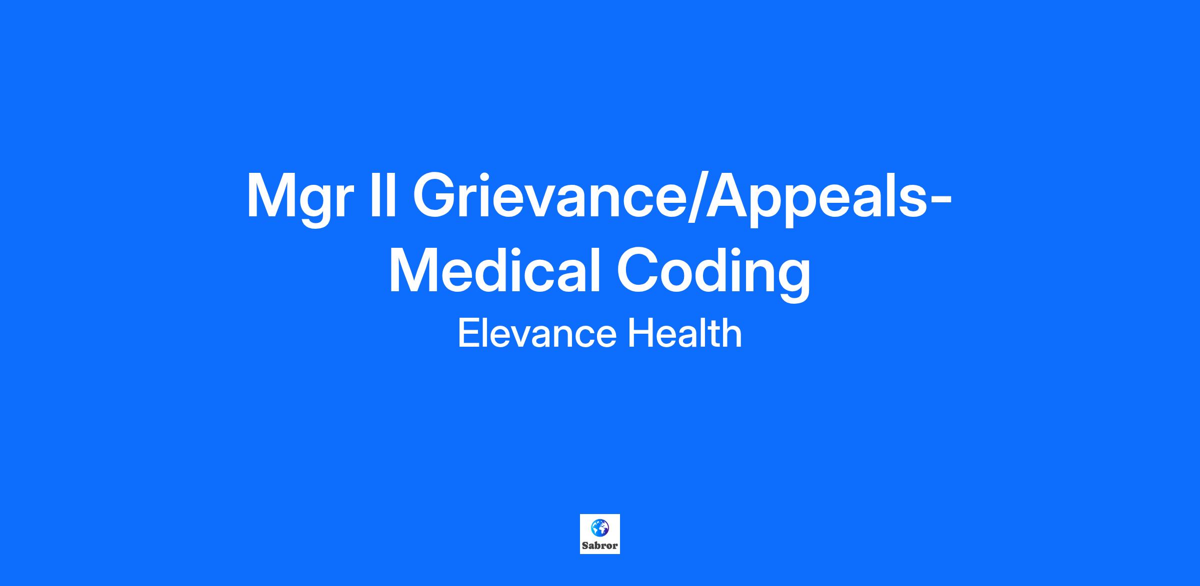 Anticipated End Date: 2025-10-07 Position Title: Mgr II Grievance/Appeals-Medical Coding Job Description: This role requires associates to be in-office 3 days per week, fostering collaboration and connectivity, while providing flexibility to support productivity and work-life balance. This approach combines structured office engagement with the autonomy of remote work, promoting a dynamic and adaptable workplace. Alternate locations may be considered. Please note that per our policy on hybrid/virtual work, candidates not within a reasonable commuting distance from the posting location(s) will not be considered for employment, unless an accommodation is granted as required by law. This position is not eligible for employment based sponsorship. Responsible for management oversight of grievances and appeals departmental units to investigate, resolve, and respond to grievances and appeals, manages inventory and production levels, and operational and plan risk, ensures quality, and regulatory compliance. PRIMARY DUTIES: Leads team of coders in supporting appeals in regulated audits. Serves as a resource for complex issues and interpretation of claims, provider contracts and data, eligibility, member contracts, benefits, clinical decisions, pharmacy on pre-service and post service appeals and grievances related to non-clinical and clinical services, quality of service and quality of care issues including executive and regulatory grievances. Oversees and implements new subsystems, procedures, techniques and supports digital automation objectives. Analyzes and develops strategies by achieving performance thresholds within budgetary guidelines. Monitors trends and analyzes grievance and appeals data to identify and recommend plan and policy changes and to ensure state and federal regulatory compliance and resolution within the regulatory timeframes. Ensures programs support overall QI program and meet regulatory compliance/accreditation and the company standards. Hires, trains, coaches, counsels, and evaluates performance of direct reports. Minimum Requirements: Bachelor’s degree and a minimum of 5+ years grievance & appeals experience and a minimum of 3 years of management experience in the healthcare industry; or any combination of education and experience which would provide an equivalent background. Preferred Skills, Capabilities and Experience: Certified Professional Coder-AAPC Job Level: Manager Workshift: 1st Shift (United States of America) Job Family: CLM > Claims Support Please be advised that Elevance Health only accepts resumes for compensation from agencies that have a signed agreement with Elevance Health. Any unsolicited resumes, including those submitted to hiring managers, are deemed to be the property of Elevance Health. Who We Are Elevance Health is a health company dedicated to improving lives and communities – and making healthcare simpler. We are a Fortune 25 company with a longstanding history in the healthcare industry, looking for leaders at all levels of the organization who are passionate about making an impact on our members and the communities we serve. How We Work At Elevance Health, we are creating a culture that is designed to advance our strategy but will also lead to personal and professional growth for our associates. Our values and behaviors are the root of our culture. They are how we achieve our strategy, power our business outcomes and drive our shared success - for our consumers, our associates, our communities and our business. We offer a range of market-competitive total rewards that include merit increases, paid holidays, Paid Time Off, and incentive bonus programs (unless covered by a collective bargaining agreement), medical, dental, vision, short and long term disability benefits, 401(k) +match, stock purchase plan, life insurance, wellness programs and financial education resources, to name a few. Elevance Health operates in a Hybrid Workforce Strategy. Unless specified as primarily virtual by the hiring manager, associates are required to work at an Elevance Health location at least once per week, and potentially several times per week. Specific requirements and expectations for time onsite will be discussed as part of the hiring process. The health of our associates and communities is a top priority for Elevance Health. We require all new candidates in certain patient/member-facing roles to become vaccinated against COVID-19 and Influenza. If you are not vaccinated, your offer will be rescinded unless you provide an acceptable explanation. Elevance Health will also follow all relevant federal, state and local laws. Elevance Health is an Equal Employment Opportunity employer, and all qualified applicants will receive consideration for employment without regard to age, citizenship status, color, creed, disability, ethnicity, genetic information, gender (including gender identity and gender expression), marital status, national origin, race, religion, sex, sexual orientation, veteran status or any other status or condition protected by applicable federal, state, or local laws. Applicants who require accommodation to participate in the job application process may contact elevancehealthjobssupport@elevancehealth.com for assistance. Qualified applicants with arrest or conviction records will be considered for employment in accordance with all federal, state, and local laws, including, but not limited to, the Los Angeles County Fair Chance Ordinance and the California Fair Chance Act. Elevance Health is a health company dedicated to improving lives and communities – and making healthcare simpler. Previously known as Anthem, Inc., we have evolved into a company focused on whole health and updated our name to better reflect the direction the company is heading. Join our Talent Community and stay connected with company news, information, and future job opportunities. Fueled by our bold purpose to improve the health of humanity, we are transforming from