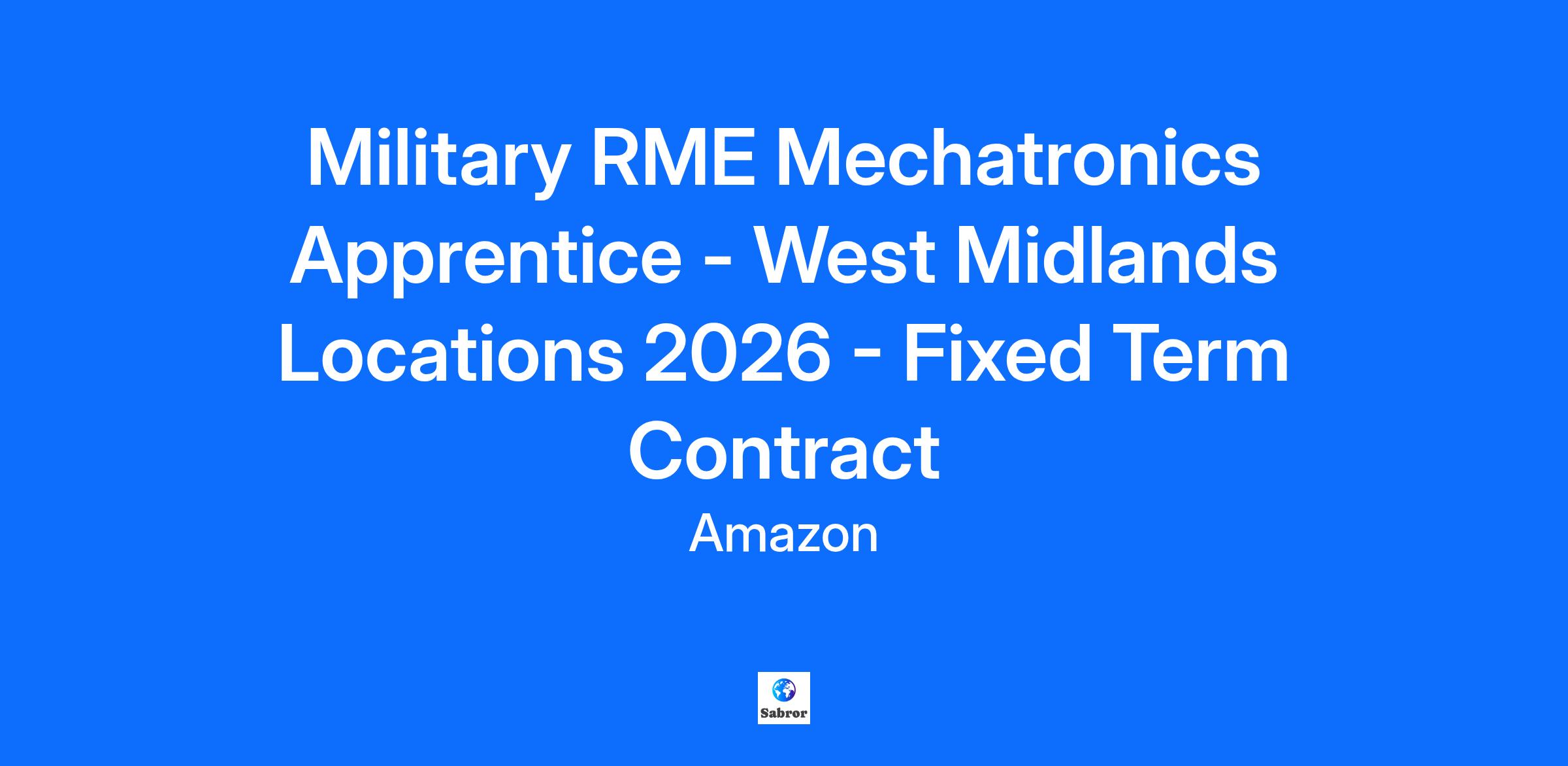 Military RME Mechatronics Apprentice - West Midlands Locations 2026 - Fixed Term Contract