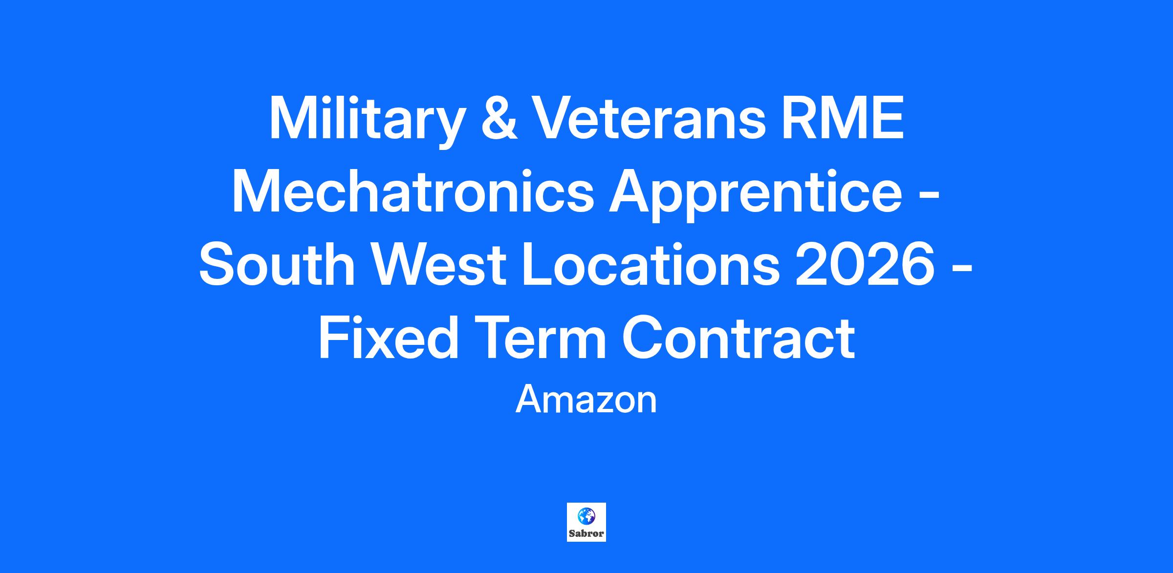 Military & Veterans RME Mechatronics Apprentice - South West Locations 2026 - Fixed Term Contract