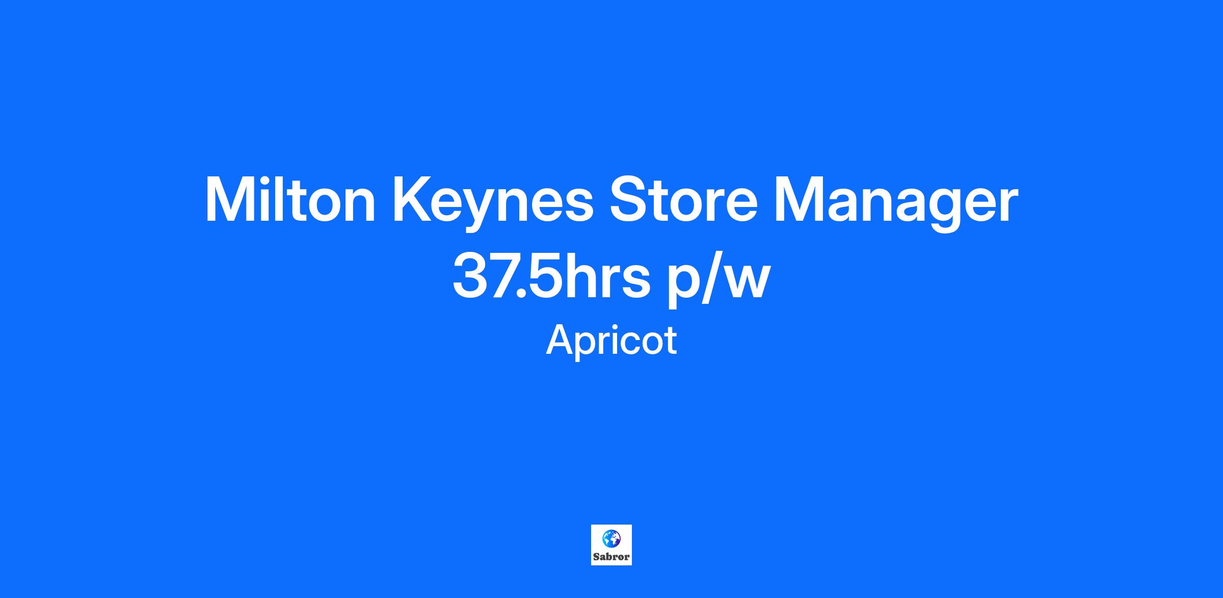JOB TITLE: Store Manager LOCATION: Milton Keynes CONTRACT: Permanent, Full-Time HOURS: 37.5 hours over 5 days per week SHIFT PATTERN: Wednesdays and Sundays usual days off SALARY COMPETITIVE We have an amazing opportunity to join our Apricot family in one of our retail stores! We are looking for a knowledgeable Retail Store Manager looking to make their next step within fashion retail. As the leader of the store, you will possess strong coaching abilities, product knowledge, provide excellent customer service, have great attention to detail and lead by example. What we desire from our team Senior Management experience Being a brand ambassador Hands-on, collaborative and shop floor based Driving forward sales Responsible for maximizing sales and ensuring excellent customer service Seeking out commercial opportunities within local area Completing and submitting all necessary paperwork to Head Office Lead well by example, driving sales, stock and KPI performance Managing store performance and taking action where needed Minimising avoidable costs and risks in store HR and recruitment Motivating, mentoring, and coaching sales associates Creating a positive and friendly working environment Making sure your store looks great, in line with the brand’s visual merchandising guidelines and marketing campaigns Responsible person for in store health and safety How we imagine you Customer service focused Interested in fashion Flexible & adaptable Team player Strong leadership experience Recruitment experience Motivated Keen to learn new skills Multi-tasker If you need any adjustments made during the recruitment and interview process do let us know. Join us and make a difference at the heart of Apricot's customer journey! Good Luck!