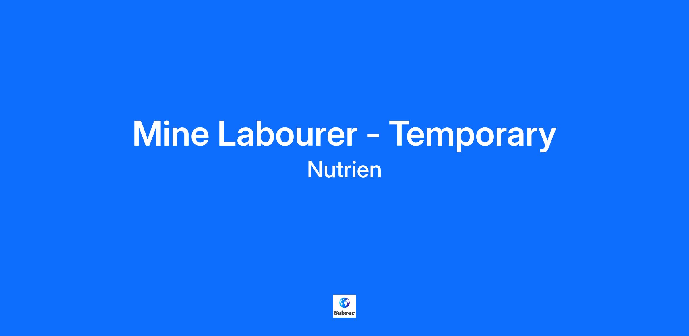 This position is required to be on-site. Nutrien is a leading provider of crop inputs and services, and our business results make a positive impact on the world. Our purpose, Feeding the Future, is the reason we come to work each day. We’re guided by our culture of care and our core values: safety, inclusion, integrity, and results. When we say we care, we mean it. We’re creating an inclusive workplace where everyone feels safe, has a sense of belonging, trusts one another, and acts with integrity. Through the collective expertise of our nearly 26,000 employees, we operate a world-class network of production, distribution, and ag retail facilities. We efficiently serve growers' needs and strive to provide a more profitable, sustainable, and secure future for all stakeholders. Help us raise the expectation of what an agriculture company can be and grow your career with Nutrien. This position reports to the Mine Production Supervisor and/or Mine Construction Supervisor in the Mine Operations Department. This position is located in Lanigan, Saskatchewan, Canada and is not available for remote work. What you will do: Work safely in a mining environment and able to follow the procedures and policies that are in place Support mining machine operators through manual labour, including shoveling tail pulleys, scaling, loading and unloading of miscellaneous supplies and equipment, piling materials, adding and reclaiming hardware, hanging cables, installing line brattice for ventilation, setting up extensible belts, and other duties as needed Play a critical role in ensuring your own safety and the safety of others What you will bring: Grade 12 diploma or GED Stable work record Previous experience in an industrial environment would be an asset Positive safety behavior and be a safety leader Good communication and interpersonal skills Ability to interact positively with co-workers and supervisors Willingness to learn and gain adequate knowledge and experience through training Ability to work safely and effectively in a labour-intensive team environment as well as self-guided Ready to make an impact with us? Apply today! The estimated salary that Indeed, Glassdoor and LinkedIn lists does not represent Nutrien's compensation structure. Nutrien is an equal opportunity employer. We evaluate qualified applicants without regard to race, color, religion, sex, sexual orientation, gender identity, national origin, disability, veteran status, and other legally protected characteristics. This job will remain posted until filled. In accordance with Nutrien policies, you will be required to undergo a background check, and may be required to undergo a substance test. While we appreciate all applications we receive, only candidates under consideration will be contacted. Applicants must meet minimum age requirements, as permitted by law. Our Recruitment Process: Application > Resume Review > Pre-screen/Interview > Offer > Pre-Employment Conditions > Welcome to Nutrien To stay connected to us and for the latest job postings and news, follow us on: LinkedIn, Facebook, Instagram, and X.