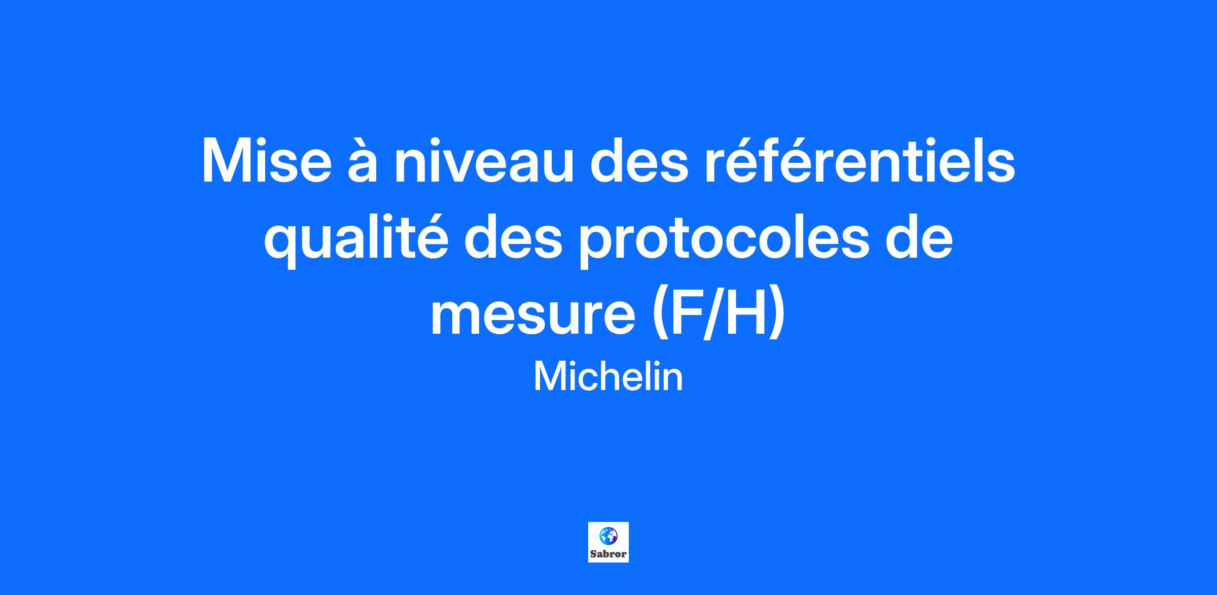 Mise à niveau des référentiels qualité des protocoles de mesure (F/H) - - - - - - - - - - - - Objectifs Le/la stagiaire aura pour mission de : Collecter les résultats des protocoles de mesure définis. Analyser les données de performance à l’aide d’outils statistiques. Mettre à jour la documentation technique à destination des utilisateurs. Valider avec les partenaires techniques et qualité les évolutions réalisées Participer à l’amélioration et à l’application du processus qualité défini. Cette mission permettra au stagiaire de : Découvrir le fonctionnement du système qualité dans le domaine de la mesure. Appliquer des outils statistiques du Groupe pour évaluer la robustesse des protocoles. Interagir avec les différents acteurs du monde de la mesure. Profil recherché Formation BAC+2 ou BAC+3 dans les domaines de la mesure, de la qualité ou des statistiques. Compétences en analyse de données. Maîtrise des outils Microsoft Office, notamment Word et Excel. Modalités Le stagiaire sera intégré à l’équipe Mesures Matériaux et bénéficiera d’un accompagnement régulier par son tuteur. Des points d’avancement seront organisés tout au long du stage afin de suivre la progression de la mission et d’ajuster les objectifs si nécessaire. Lieu : Clermont-Ferrand site de Ladoux Durée : 3 mois minimum - - - - - - - - - - - - Michelin entreprise engagée dans la mobilité durable et reconnue pour ses actions en faveur de l’expérience employé ! Une note de 99/100 à l’index de l’égalité femmes-hommes Entreprise « Handi accueillante », avec un réseau de référents et ambassadeurs Handicap pour vous accompagner 83,5% de taux d’engagement de nos employés 94,6% des stagiaires et alternants nous recommandent, label "Happy Trainees" depuis 9 années consécutives Classé parmi les groupes du CAC 40 les plus engagés selon les Bac+5 à l’index RSE Universum 2023 Parmi les 100 entreprises les plus attractives pour les étudiants et actifs BAC+2/3 au classement Universum 2023 N°1 des entreprises de plus de 500 stagiaires et alternants qui rémunèrent le mieux au Classement HappyTrainees® Rémunération 2023 Dans le Top 10 des meilleurs employeurs en France au classement Glassdoor 2023 Dans le top 3 des entreprises du secteur « Automobile / Equipementier » en matière d’attractivité employeur à l’édition 2024 du Palmarès @EPOKA @GROUPE IFOP @Occurrence Pour en savoir plus sur le Groupe :https://recrutement.michelin.fr - - - - - - - - - - - - Michelin, the leading tire company, is dedicated to sustainably improving the mobility of goods and people by manufacturing and marketing tires and services for every type of vehicle, including airplanes, automobiles, bicycles/motorcycles, earthmovers, farm equipment and trucks. It also offers digital mobility support services and publishes travel guides, hotel and restaurant guides, maps and road atlases. Headquartered in Clermont-Ferrand, France, Michelin is present in more than 170 countries, has 111,200 employees and operates 67 production plants in 17 different countries. Michelin has a Technology Center in charge of research and development, with operations in Europe, North America and Asia. In short, whether you look at our mission, our products or our people, Michelin is a company that truly helps you to move forward... Visit our website to discover more about us www.michelin.com