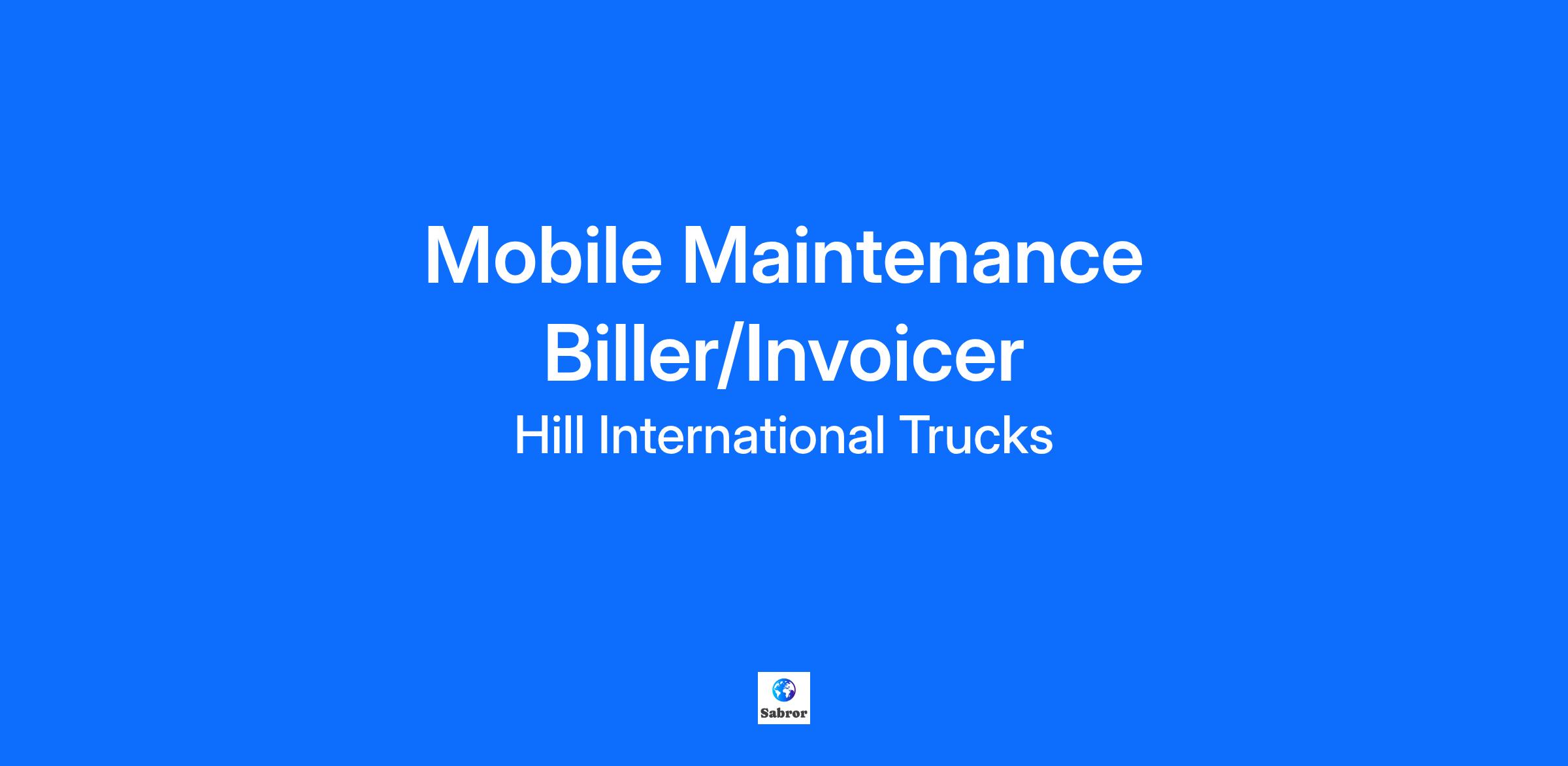 Hill International Trucks, the tri-state areas leading medium- and heavy-duty truck and trailer dealership, is currently looking for a mobile maintenance biller/invoicer for its East Liverpool, OH. location.