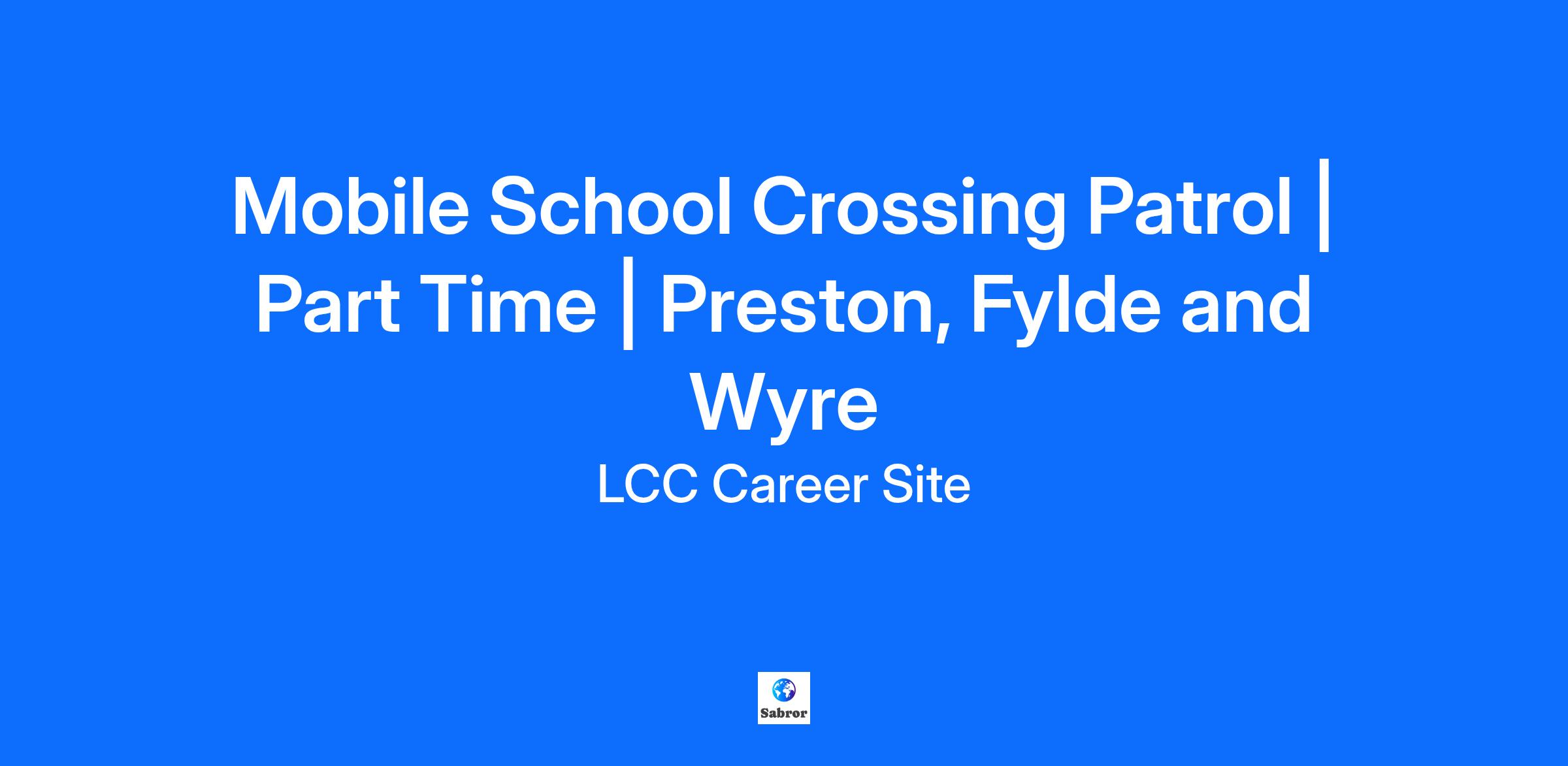 | Salary £12.60 Per hour | Permanent, Part Time, 5 hours per week A Mobile School Crossing Patrol is required in the Preston, Fylde and Wyre area, to act as a Mobile Relief crossing patrol, providing cover for the fixed-point school crossing patrols due to absence and to cover vacant posts. The applicant must have access to their own transport, business insurance and be able to travel to any of the crossings at short notice on a shift-by-shift basis. The crossing times vary but are generally in the region of 0830 to 0900 and 1510 to 1540, Monday to Friday during term time, which is 38 weeks a year. Pay is FLW, currently £12.60 an hour. Payment is 5 hours a week with additional payment based on duty performed. Uniform and training are provided. Candidates will be required to be DBS checked and satisfy medical suitability for the role along with providing 2 references. For more information or a general discussion, please contact Jason on 01282 470273. The post you are applying for is covered by the Rehabilitation of Offenders Act 1974 (Exceptions) Order 1975 (as amended in 2013). If successful you will be required to apply to the Disclosure and Barring Service (DBS) for a 'disclosure'. Further information can be found on the 'Our Recruitment Process' tab. In return Lancashire County Council offers a range of benefits, which can be found on LCC Vacancies website. We reserve the right to close down a vacancy early, before the closing date, if we receive sufficient applications. Please read Job Description and Person Specification.