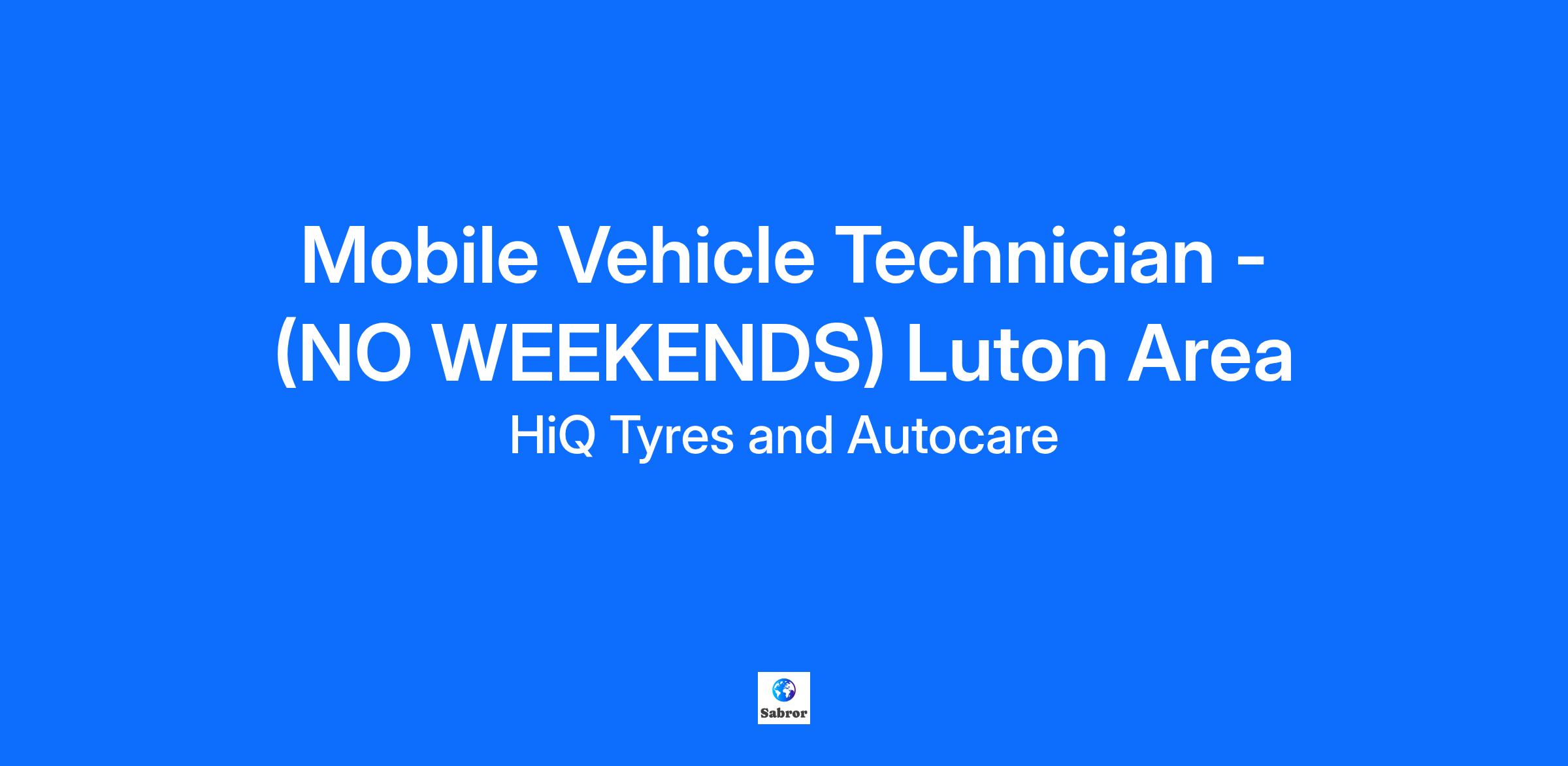 Mobile Vehicle Technician - Luton Area HiQ is owned by Goodyear a well-known and respected Tyre brand in the automotive industry. Over the coming years we have plans to continuously grow the network and increase our retail stores and Mobile offering, meaning career progression, job security and a brand you can be proud to work for. We are currently looking for a Mobile Vehicle Technician to service a customer with a large fleet of cars and vans. This person will work very closely with the customer at several different sites in the area. You will work remotely but managed from our very busy Hub at Henley, reporting to the Mobile Operations Manager. Work includes minor servicing and repairs, along with Tyre Fitting. Reliability is absolutely key for this role and having own tools. What HiQ Tyres & Autocare can offer you: No working Saturdays, Sundays or Bank Holidays. Competitive salaries based on experience and skill set. An uncapped bonus structure – paid monthly. Generous employee discounts on all HiQ Group services Training Courses (EV & Hybrid / MOT Testing License / REACT Training). Adhoc incentives and industry-related days out. Room for constant career progression within HiQ and Goodyear. Company Sick Pay. Refer a friend payment(s). Reward Gateway (Massive discounts on groceries, high street retailers and many more). HiQ Tyres & Autocare are an equal opportunities employer, which means we are committed to a policy of treating all our employees and job applicants equally. Please get in touch should you require any support in completing your application. #HP