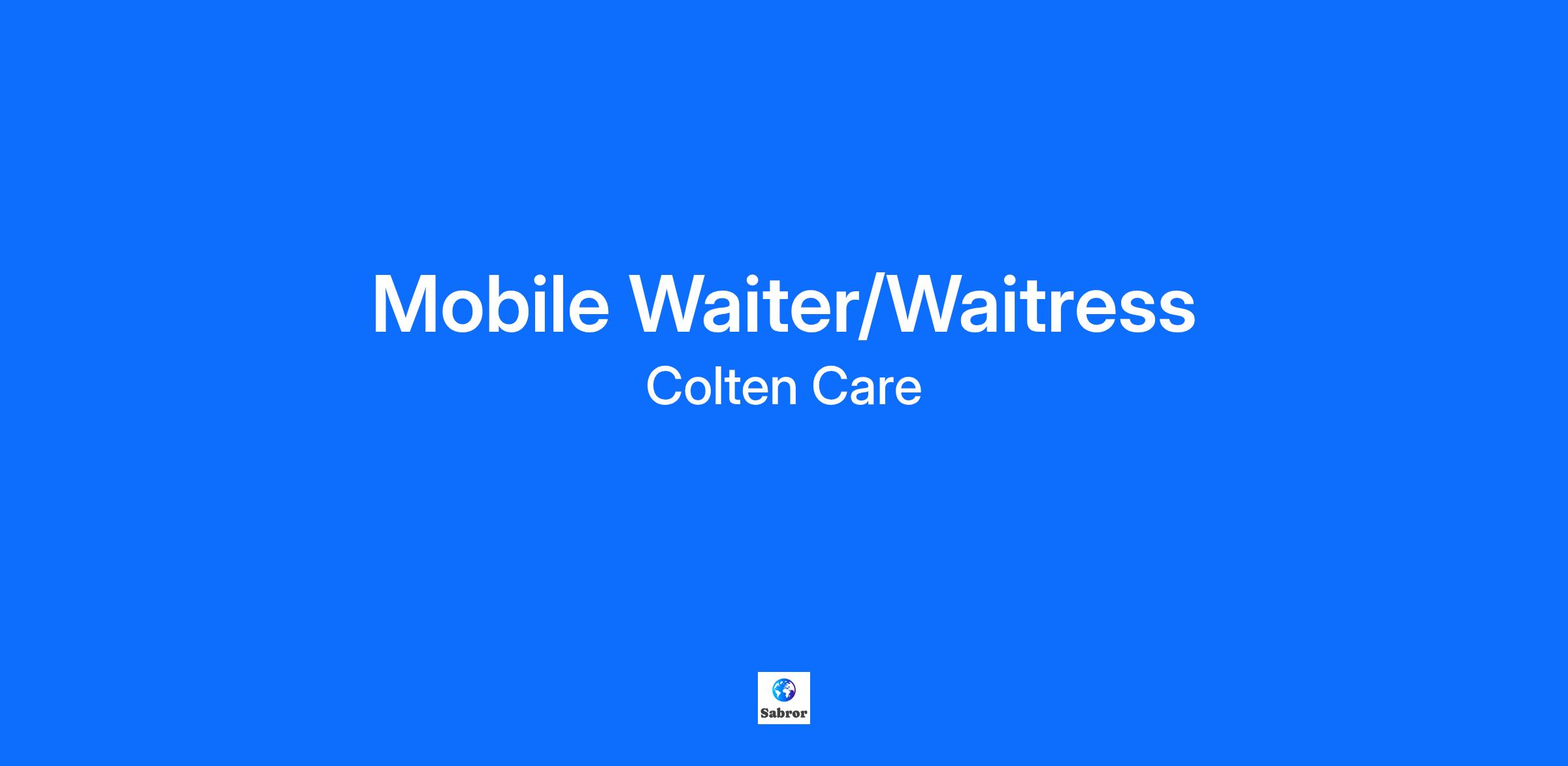 Mobile Waiter / Waitress From £12.66 up to £14.98 per hour **At Colten Care we are proud to offer career development opportunities, and a range of pay enhancements across our roles. Contact us to find out more** ** 35 hrs per week (includes paid breaks) ** Introduction We’re looking for a friendly and outgoing waiter/waitress to join our team and become a valued part of day-to-day life across our homes in Christchurch, Brockenhurst, New Milton and Lymington. Access to your own vehicle is essential for this role. You'll take pride in providing a personal, friendly and efficient service at each dining event. You’ll lead our residents through a unique and exciting food journey, building lasting relationships along the way. You'll support the chef by delivering their tasty delights from the nutritious daily menu using fresh local produce and ingredients, helping make a meaningful difference to the health and well-being of our residents each and every day. We always look to inspire, develop and motivate our staff through a successful succession plan. Our catering roles are wide and varied, and there are many other exciting roles within the home that play an important part of day-to-day life for our residents, so who knows where this exciting journey may lead? If a career in care is for you and you want to be part of something special, we’d love you to apply. A member of our dedicated recruitment team will then be in touch to discuss the positions available and help identify those that best suit your work/life balance and location. About you You're a team player with an enthusiasm for what you do and a can-do attitude. You'll have a genuine passion for creating an exceptional resident dining experience, with attention to detail and a sense of fun. As part of the catering team, you’ll aspire to the highest standards, showing great teamwork to ensure that all regulations for food health and hygiene are adhered to at all times. **Business insurance is essential due to travel during work hours** About Colten Care We’re an award-winning, family-owned, independent care home group, with an outstanding reputation in the industry. This is due to our amazing people and our focus on keeping the resident at the heart of everything we do. We strive to be the best we can hence why all 21 of our nursing homes are rated at least good and 7 are outstanding by the CQC, our national regulator. If a career in elderly care is for you then you want to be part of the team at Colten Care. Benefits Paid breaks (hourly rate) Uniform provided Excellent inductions, training and ‘on the job’ support Real career progression opportunities Annual pay review Additional hours / overtime opportunities to suit your circumstances. Choice of hot or cold meals and drinks on duty Contributory pension scheme Background checks at no cost to you