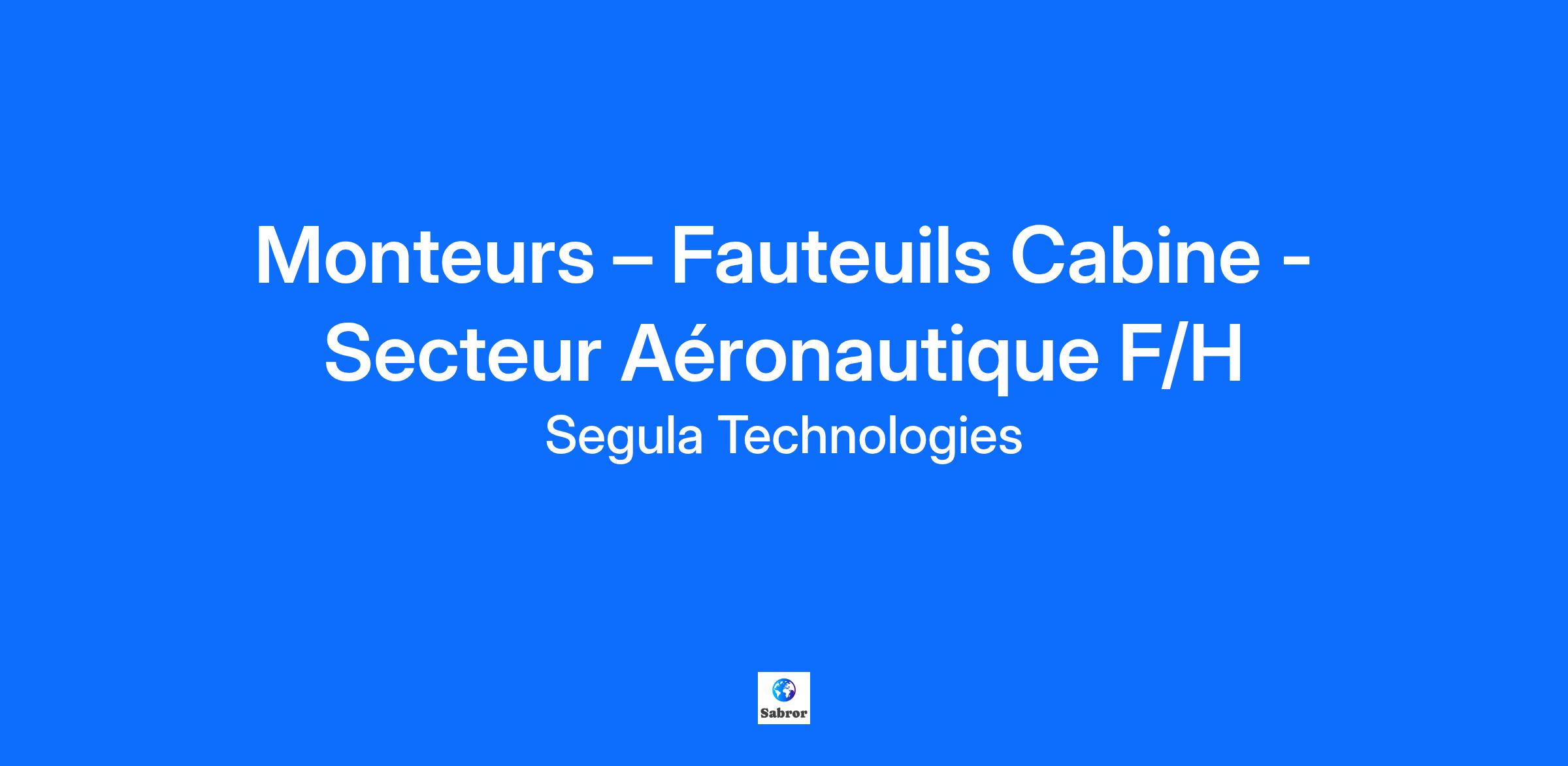 Monteurs – Fauteuils Cabine - Secteur Aéronautique F/H