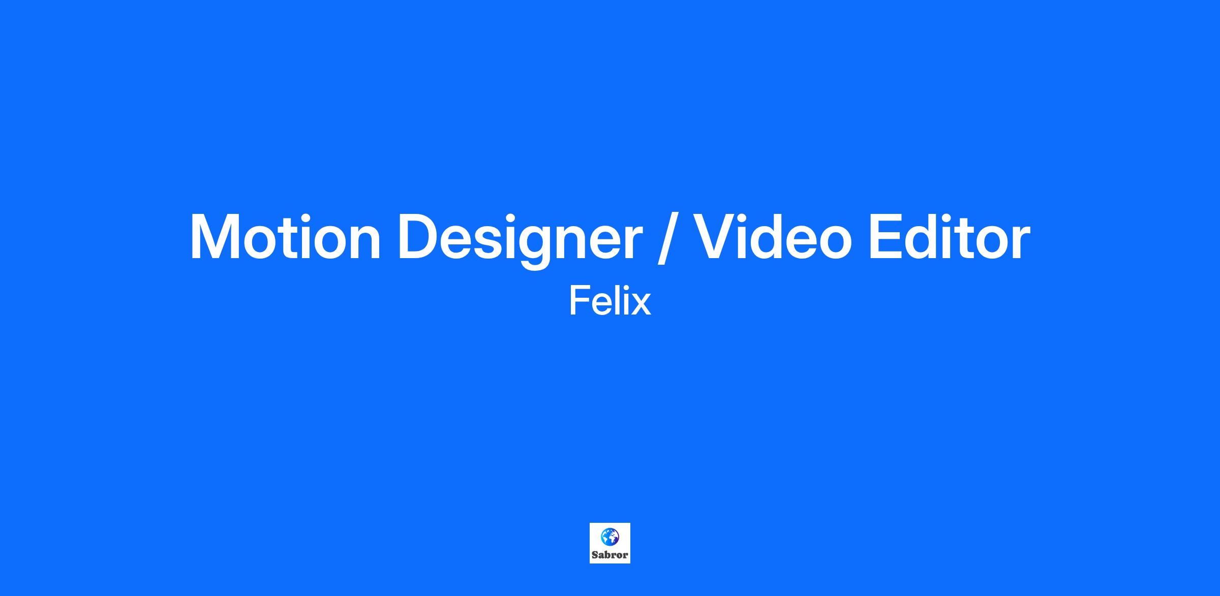 We are seeking a motion specialist with a deep understanding of performance marketing, video editing, and motion graphics to join the Felix team. This role will be responsible for owning all video and motion assets for digital marketing, as well as continuing to define our unique identity when it comes to motion, such as transitions, sound fx, and animation and editing styles.