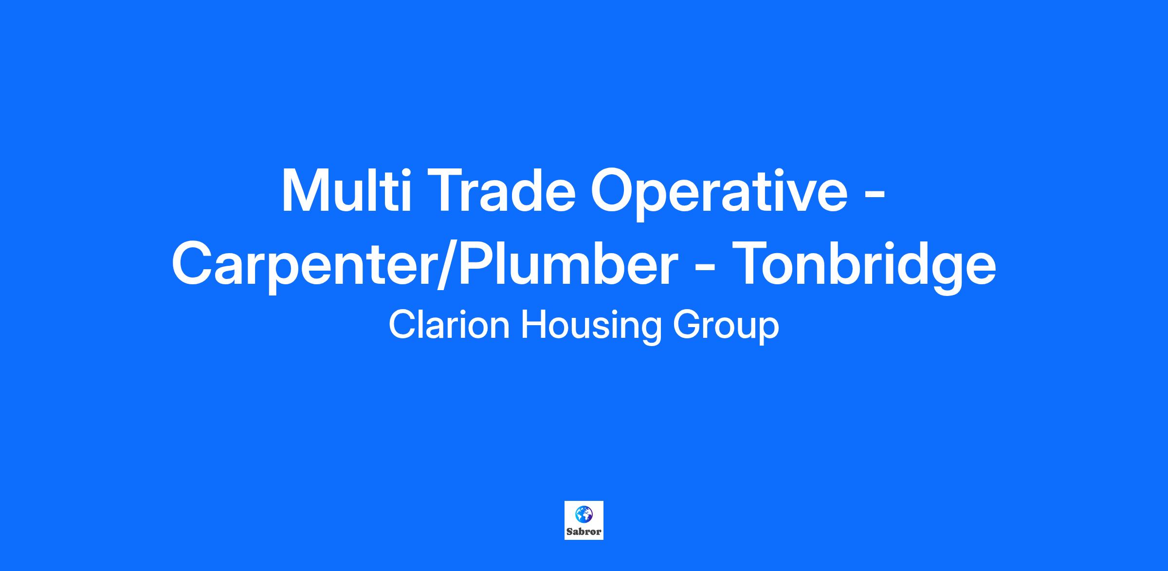 Salary: £36,000 - £41,000 plus, Van, Tools, Company Bonus Scheme and regular overtime Location: Tonbridge & Maidstone Hours: 40 hours per week Contract Type: Permanent We have an exciting opportunity for an experienced Carpenter & Plumber who has skills other trades to join our team!!! We’re looking for someone who can deliver a first class service to our properties covering Tonbridge, Maidstone and surrounding areas. A Multi Trade Operative will be responsible for carrying out a wide range of maintenance, responsive repairs, void works & property MOTs connected with all aspects of their specialist trades and any secondary trades. The works shall be carried out in an efficient way and completed within required deadlines. Take a look at the full role profile for more information - Multi Trade Operative Salaries are just the starting point. Here at Clarion we’re dedicated to rewarding hard work and commitment, and providing benefits that support you and your lifestyle - dive in and find out more here Apply now!!!!!! If you’re a reliable, experienced Carpenter & Plumber with skills in other trades and can provide good customer care we want to hear from you. You must hold a valid UK driving licence as a company vehicle will be provided for work use only. This post is subject to Basic Criminal Record Check Clearance. We reserve the right to close this advert early. To find out more about who we are and what we do, please click here You must be eligible to work in the UK to apply for this vacancy; Clarion are not able to offer visa sponsorship. You are required to reside in England or Wales for the duration of your employment. At Clarion Housing Group, we support the responsible use of AI. Here is your guide to using AI during your recruitment process. This is a great opportunity to join our team - Employer of the Year Housing Heroes awards 2025 and one of LinkedIn’s Top Companies 2024 About Clarion Housing Group Clarion Housing Group is the country’s largest social landlord with more than 350,000 people nationwide calling a Clarion home their own. Our mission is to provide affordable homes for those who need them most, and our development arm (Latimer) builds thousands of new homes each year across the country. We know that having a safe and secure home enables people to build better lives, and we believe being a good social landlord is about making a difference to our residents and communities. Our charitable foundation, Clarion Futures, works with charities, social enterprises and other organisations to provide employment support and apprenticeship opportunities to residents, as well as money management advice and help getting online. Web: www.clarionhg.com LinkedIn: www.linkedin.com To find out more about working for Clarion, please click here. Diversity and Inclusion We want Clarion to be a workplace where everyone feels valued, can be themselves and know they can reach their full potential. We embrace and celebrate our differences through various initiatives and support colleagues through a number of staff networks. We’re committed to building a strong, diverse workforce and making Clarion an inclusive place to work.
