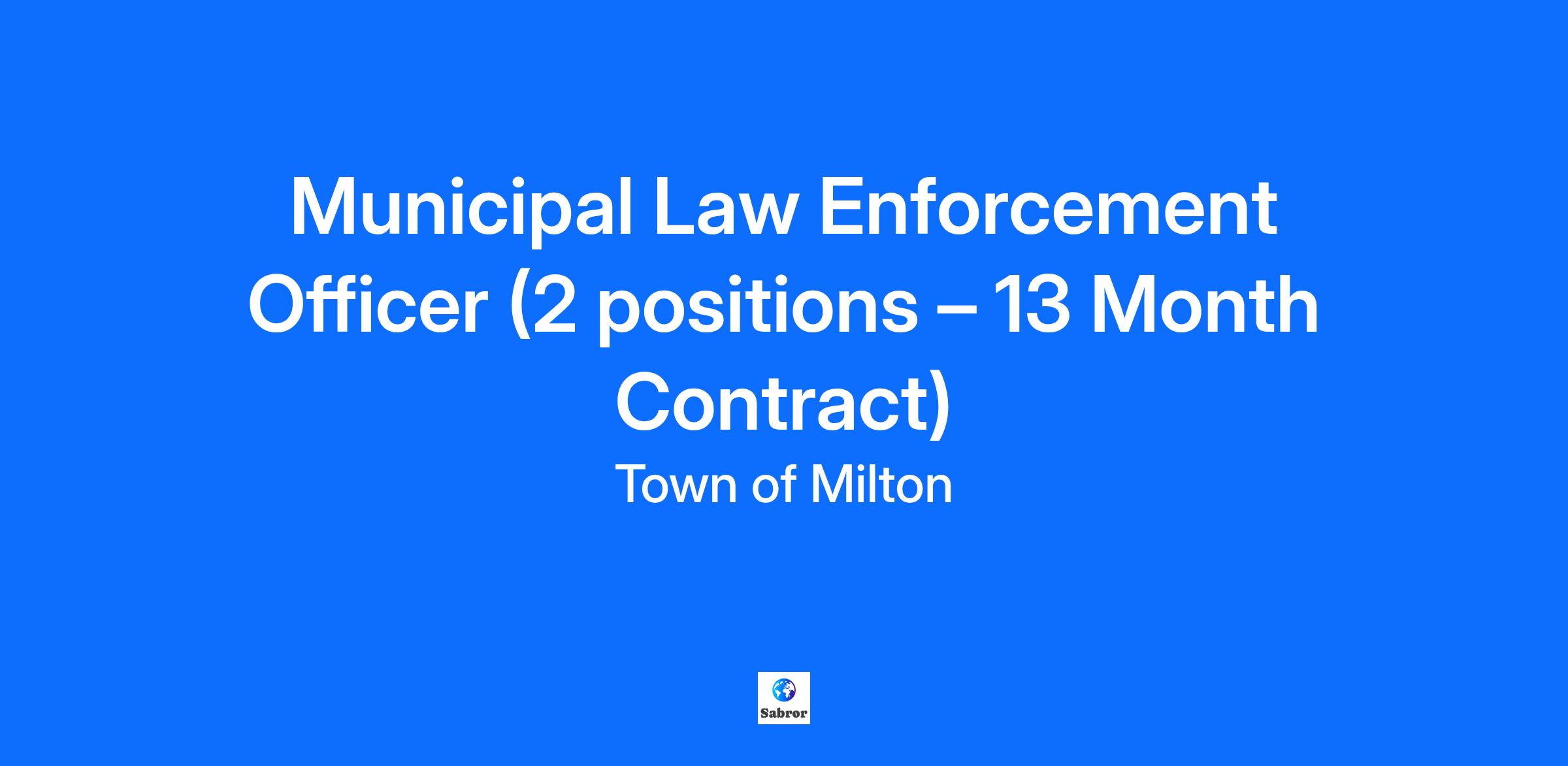 Municipal Law Enforcement Officer (2 positions – 13 Month Contract)