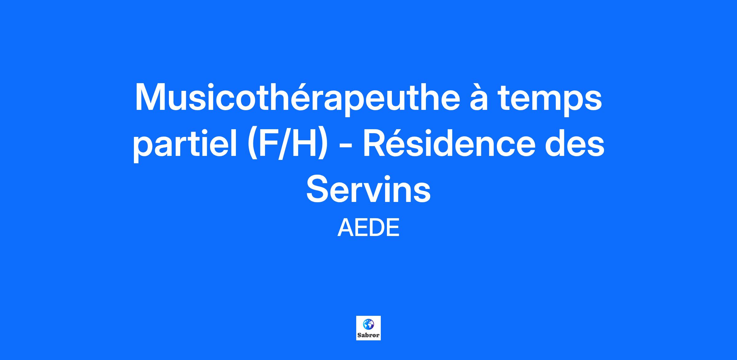 L’AEDE, engagée auprès des personnes et adultes en situation de handicap mental et psychique, employant 1000 salariés et gérant 29 établissements et services médico-sociaux, recrute pour son établissement LA Résidence des Servins, un musicothérapeute, F/H, à temps partiel (0.15ETP).