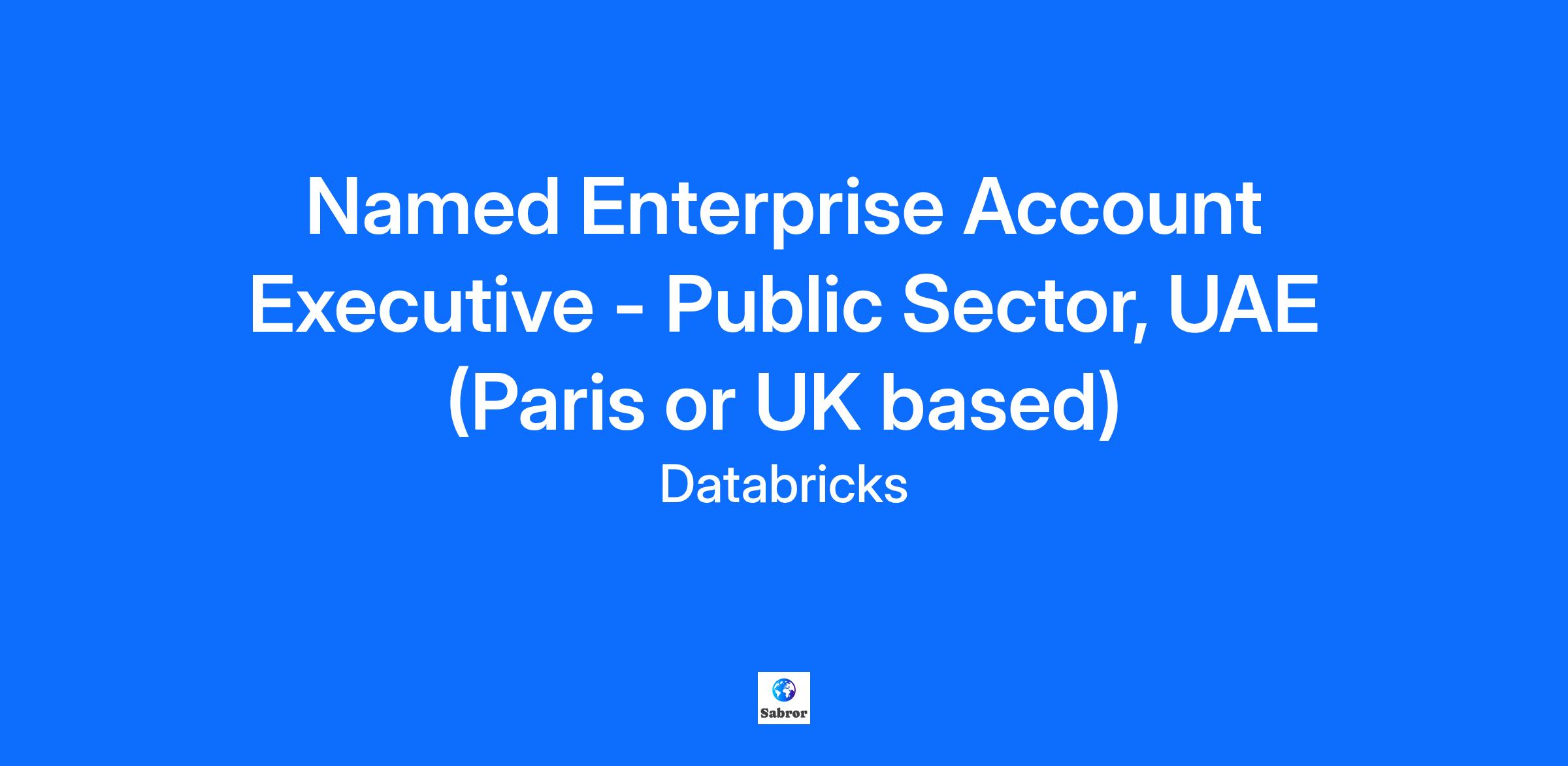 Named Enterprise Account Executive - Public Sector, UAE (Paris or UK based)