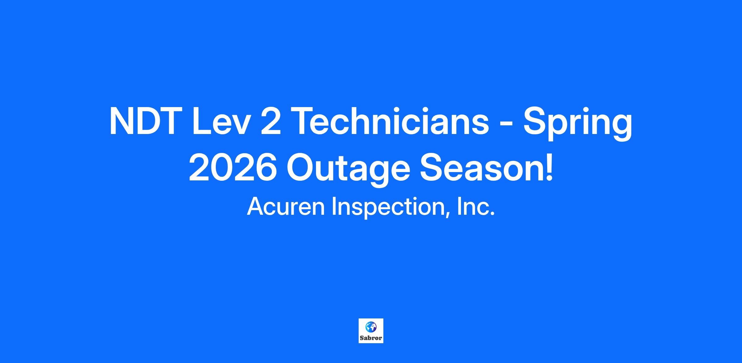 Position Summary Ready to lock in your spring schedule? Acuren is gearing up for the 2026 Spring Outage Season and we’re on the lookout for multi-ticketed NDT Technicians to join our team in the Fort McMurray region. If you’re looking for a fast-paced industrial environment with room to grow, learn, and take on exciting challenges, this is your chance! Details: Project-Based/Outage Work – dive into impactful projects with meaningful results. Lots of Overtime Opportunities – maximize your earnings while building experience. Seasonal Projects – running from early spring through the summer. FIFO Convenience – fly-in/fly-out from all major Canadian hubs. All-In Support – accommodations and camp provided for non-locals. Whether you’re looking to sharpen your skills or take the next step in your career, this is an opportunity to be part of something big. Responsibilities Execute NDE/NDT inspections using established methods with precision and attention to detail. Communicate effectively through clear written and verbal reporting, while fostering strong teamwork and collaboration. Adhere to standards and procedures to ensure accuracy, safety, and quality while meeting project deadlines. Build and maintain positive client relationships, representing Acuren with professionalism at every stage. Requirements CGSB Level 2 Certifications – UT2, MT2, PT2, RT2 Proven Work Ethic – dedicated, reliable, and safety-focused Client-Centered Approach – ability to build and maintain strong working relationships Uncompromising Safety & Quality Standards – always striving for excellence Problem-Solving Mindset – resourceful and effective at managing time and challenges Driven & Self-Motivated – able to perform at a high technical and professional level Valid Driver’s License We have both ground work and rope access work available. For rope access work, the IRATA Certification or the willingness to obtain, is considered a strong asset. Talk with our recruitment team for more details of the IRATA Level 1 Course! Benefits The strength of Acuren lies in its outstanding people. As a rapidly growing, intensely innovative, international publicly traded company, the opportunities to pursue challenging and diverse career development paths are vast. Complemented by an attractive and comprehensive total compensation package, including paid time off, employer paid benefits, RRSP + Company match, tuition grants, discounted fitness memberships and insurance offerings, employee assistance programs and more! At Acuren we commit to the principles of a respectful workplace and offer tremendous opportunities to those who wish to succeed.Join our team at Acuren and embark on a rewarding journey where you will contribute to the company's growth and success while advancing your career. Apply now to be part of our dedicated team of professionals. Company Overview As an organization, our strength comes from the ability to embody our core values - People First, Integrity Always, Pride In Our Work, and Growth Together. None of these values is more important than People First, and we are honored that our people decided the company is worthy of being included in the Forbes 2024 and 2025 List of Canada's Best Employers. Acuren is a trusted, single source provider of technology-enabled asset protection solutions used to evaluate the structural integrity of critical energy, industrial and public infrastructures. Committed to delivering a Higher Level of Reliability, Acuren provides an unrivaled spectrum of capabilities including inspection, traditional and advanced NDE/NDT, failure analysis, rope access, materials engineering, field engineering, reliability engineering, drones, robotics, V-Deck and condition-based monitoring services.Our work is critical to the integrity and safety of industrial firms, including petroleum refinery, pipeline, power generation, pulp & paper, mining, pharmaceutical, aerospace and automotive industries. Acuren employs over 5,000 dedicated professionals supporting the mechanical integrity and inspection programs of the world’s largest industrial segments.Acuren is a market leader. Our formula for success is straightforward: be capable locally, with certified and well-equipped personnel supported by trained, experienced leaders. Continuing to build on a strong heritage of safety, quality, and professionalism, Acuren strives to maintain incident free work environments, pursues advanced technical developments, and supports reliability programs that are valued by clients and employees. Please note we will consider accessibility accommodations to applicants upon request. The company utilizes AI enabled tools to organize candidate responses. These tools may be used in the screening or assessment of applicants. #INDA