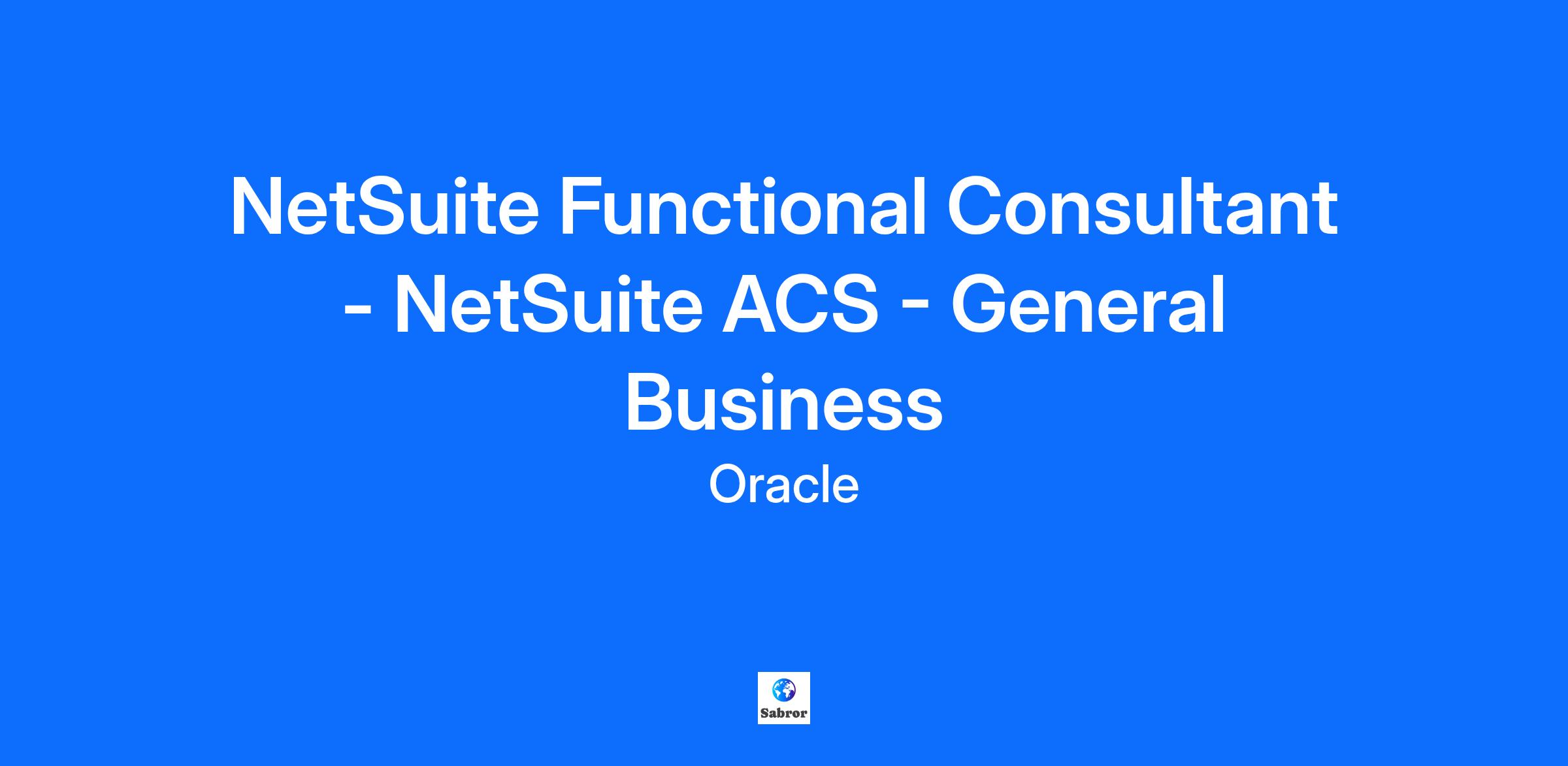 NetSuite ERP Functional Consultant - General Business