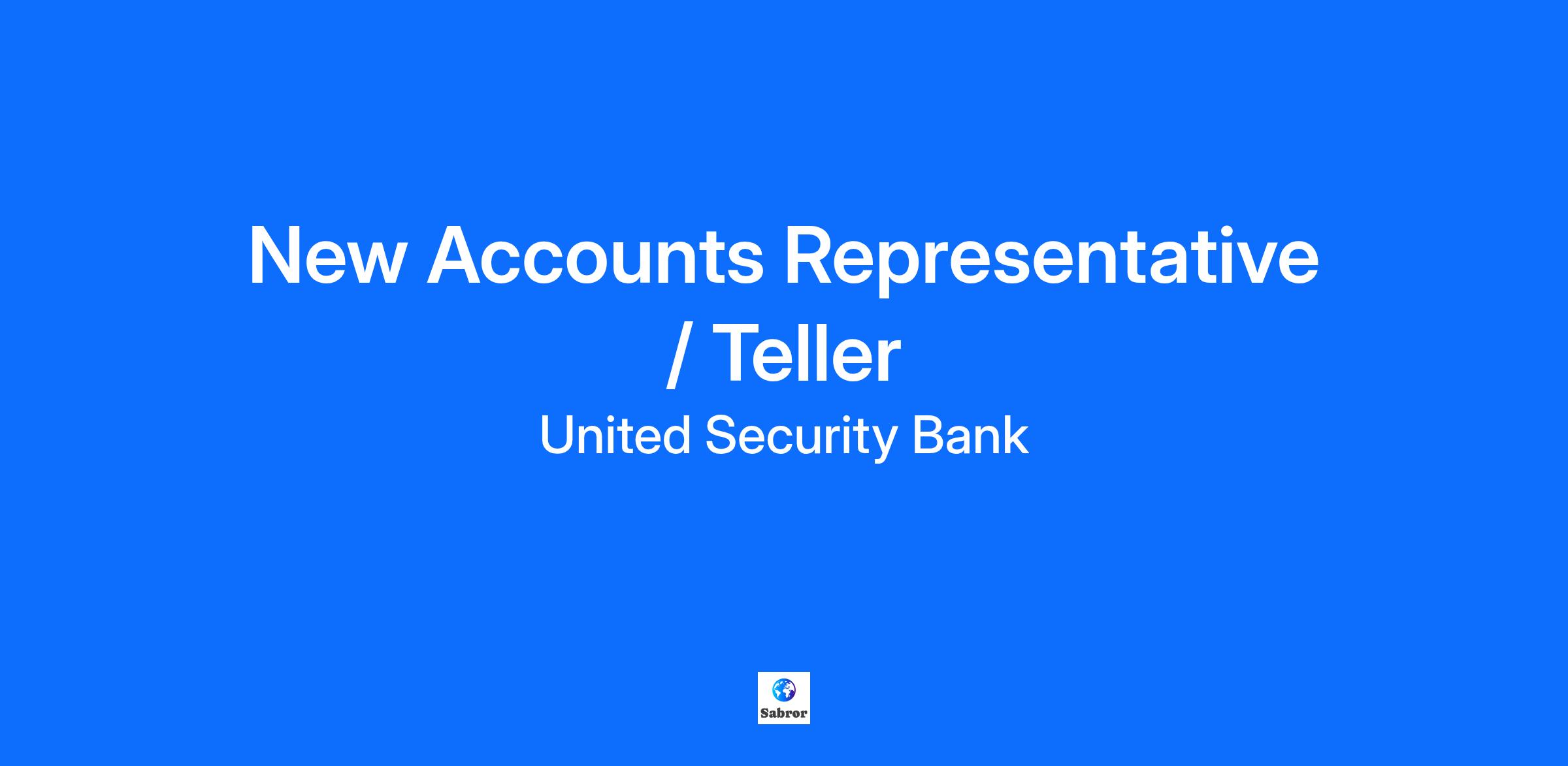 United Security Bank seeks a part-time 36-hour week New Accounts Representative/Teller for our Coalinga branch. The representative will be responsible for selling and presenting bank products and services to new and existing customers, ensuring that customers' needs are identified and fulfilled.