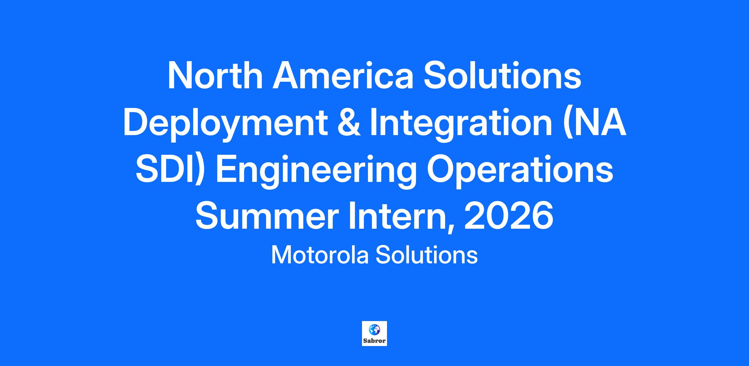 Company Overview At Motorola Solutions, we believe that everything starts with our people. We’re a global close-knit community, united by the relentless pursuit to help keep people safer everywhere. Our critical communications, video security and command center technologies support public safety agencies and enterprises alike, enabling the coordination that’s critical for safer communities, safer schools, safer hospitals and safer businesses. Connect with a career that matters, and help us build a safer future. Department Overview The North America Solutions Deployment and Integration (NA SDI) Engineering Operations organization supports our systems engineers and software solution architects in the deployment of our customer-driven, world-class end-to-end solutions that rise to the challenges of first responder, government, carrier, utility, transportation, and enterprise customers. The Operations organization assists systems engineers in their effort to ensure the technical integrity of our delivered solutions. We provide a foundation of support to deployment systems engineers, ensuring their access to the people, processes and tools to optimize their day-to-day work at Motorola Solutions. Job Description NOTE: This position will have some HYBRID requirements. Overview: The Intern will support the NA SDI Engineering Operations team in developing and implementing workflows and processes including: tools, processes, and applications. This role aims to provide a centralized and streamlined approach for systems engineers to efficiently and accurately deploy technology. Key Responsibilities: Assess key stakeholder needs and requirements. Collaborate with the team to develop and improve workflows and processes. Contribute to the development of new and existing systems engineering tools and applications. Support the SDI engineering teams in their daily operations. Skills and Qualifications: Excellent communication skills, with the ability to clearly articulate complex topics to non-technical audiences. Strong problem-solving, data analytics, and data visualization skills. Knowledge of systems engineering and systems integration methodologies. Programming experience preferred, with an emphasis on full-stack web-development and object oriented programming in languages such as Python and C++. Familiarity with the Google Suite of office applications: Docs, Sheets and Slides. Experience developing add-ons and scripting within the Google workspace: Sites, Appscript and Sheets. Basic Requirements High School Diploma is required. Must be pursuing a Bachelor's Degree or Master’s Degree (Systems Engineering, Computer Engineering, Electrical Engineering, Industrial Engineering or similar engineering or technical discipline) with a graduation date of December 2026 or later. Students requiring current or future visa sponsorship must be pursuing a minimum of a Master’s Degree in a technical discipline with a graduation date of December 2026 or later. Travel Requirements Under 10% Relocation Provided None Position Type Intern EEO Statement Motorola Solutions is an Equal Opportunity Employer. All qualified applicants will receive consideration for employment without regard to race, color, religion or belief, sex, sexual orientation, gender identity, national origin, disability, veteran status or any other legally-protected characteristic. We are proud of our people-first and community-focused culture, empowering every Motorolan to be their most authentic self and to do their best work to deliver on the promise of a safer world. If you’d like to join our team but feel that you don’t quite meet all of the preferred skills, we’d still love to hear why you think you’d be a great addition to our team. We’re committed to providing an inclusive and accessible recruiting experience for candidates with disabilities, or other physical or mental health conditions. To request an accommodation, please complete this Reasonable Accommodations Form so we can assist you. MOTOROLA SOLUTIONS OVERVIEW At Motorola Solutions, we believe that everything starts with our people. We’re a global close-knit community, united by the relentless pursuit to help keep people safer everywhere. Our critical communications, video security and command center technologies support public safety agencies and enterprises alike, enabling the coordination that’s critical for safer communities, safer schools, safer hospitals and safer businesses. Connect with a career that matters, and help us build a safer future. Learn more at www.motorolasolutions.com. If you are a current Motorola Solutions employee, please click this link to apply through your Workday account.