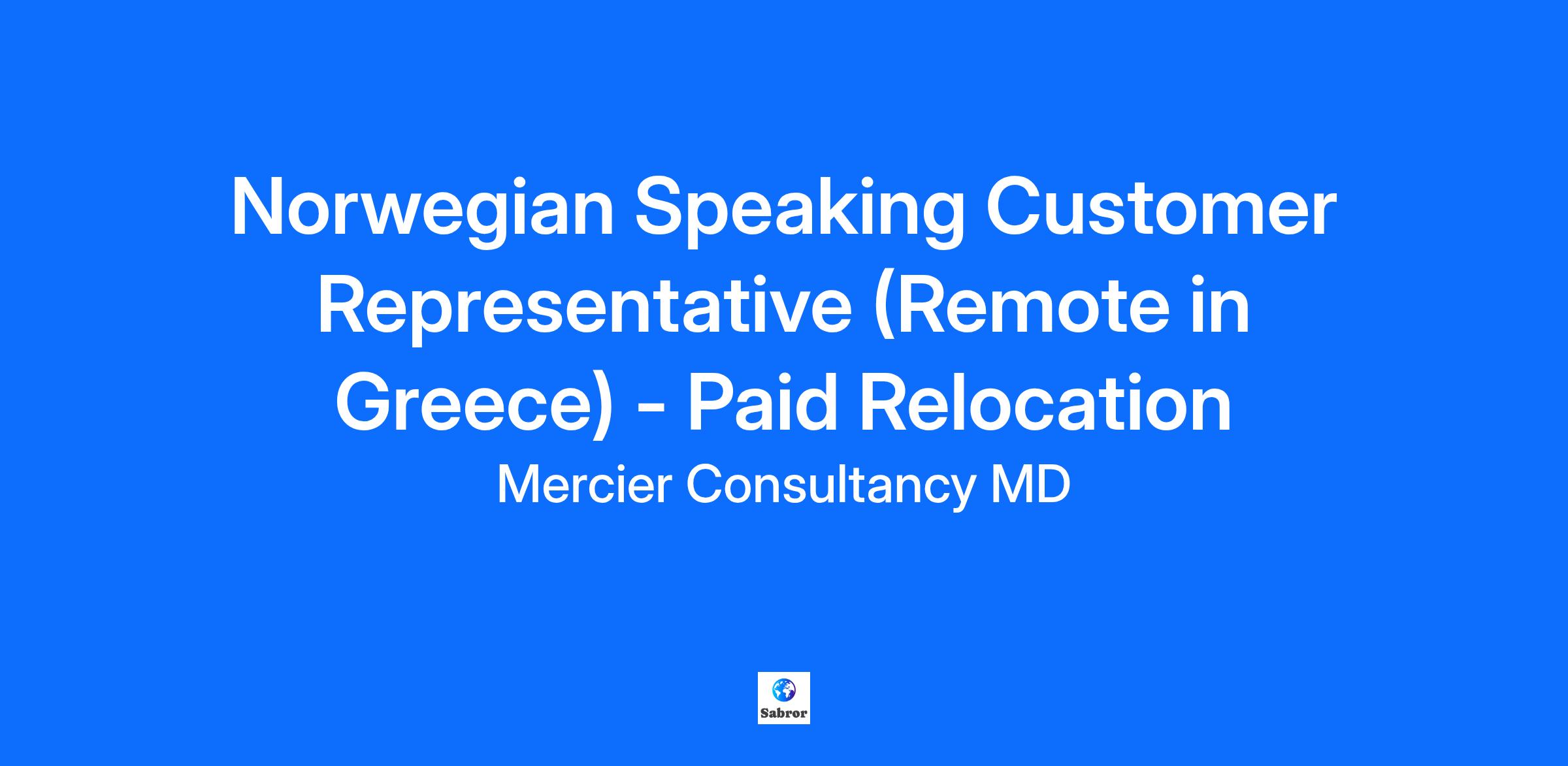 Join Our Team! Are you fluent in Norwegian and looking for an exciting opportunity to work remotely from Greece? Mercier Consultancy MD is on the hunt for a dedicated and enthusiastic Norwegian Speaking Customer Representative to join our dynamic team. This role provides the incredible advantage of paid relocation to Greece, allowing you to experience a vibrant cultural landscape while advancing your career in customer service. Your Role: Deliver outstanding customer support to Norwegian-speaking clients, ensuring inquiries are managed with proficiency and care. Communicate effectively through various channels such as phone, email, and chat. Engage with our client systems to provide accurate and timely assistance. Collaborate closely with team members to solve customer issues efficiently. Fluency in Norwegian (both written and spoken) is essential for effective communication with clients. Strong interpersonal skills and a customer-focused attitude. Willingness to learn new technologies and tools suitable for the remote work environment. Self-motivated, proactive, and capable of thriving in a fast-paced atmosphere. Open to relocating to Greece for this exciting opportunity! Competitive Monthly Salary Monthly Performance Bonus Fully Paid Relocation Package Fully Paid Training Health Insurance And Much More...