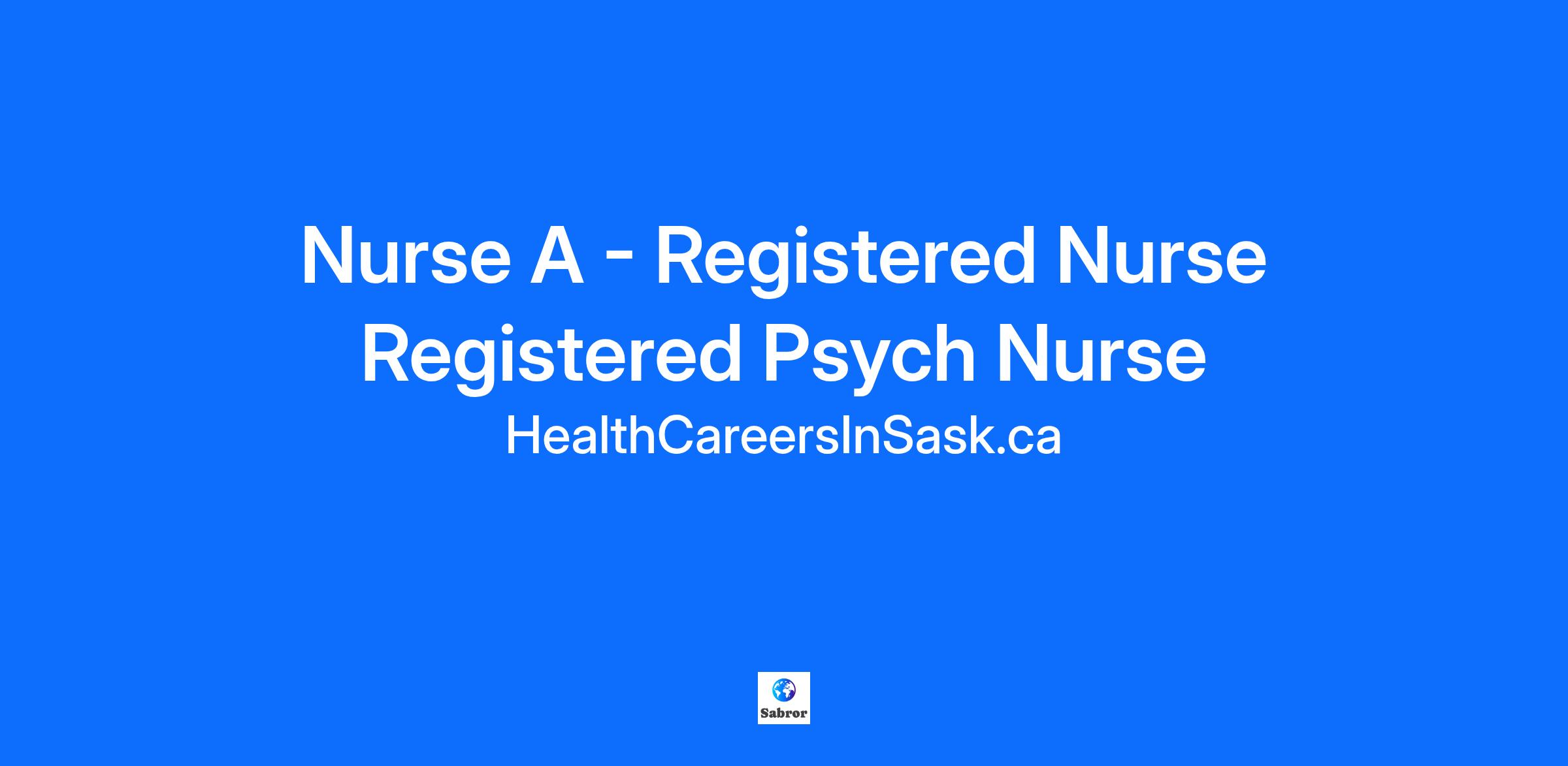 Nurse A - Registered Nurse Registered Psych Nurse