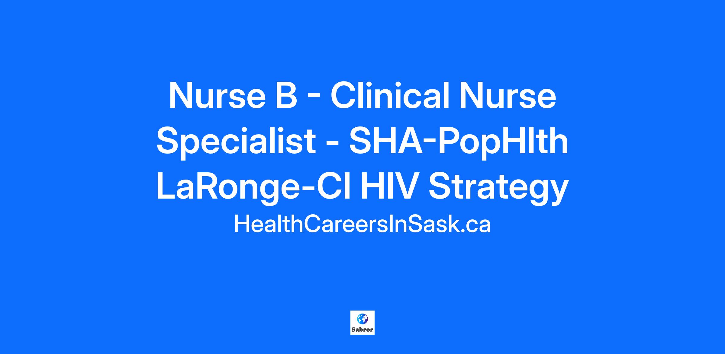 Position #: 9000786 Expected Start Date: October 06, 2025 Union: SUN Facility: Population Health Unit City/Town: La Ronge Department: Clinical Integration HIV Strategy Type: Full-time regular FTE: 1 Hours of Work:224 hours per 6 weeks Relief: No Float: No Field Hours: Yes Salary or Pay Band: Pay Band Nurse B $42.040 to $52.440 Travel Required: Yes Human Resources Exemption: No Education Course credits in community health and public health nursing are required Bachelor of Science in Nursing (BScN) Licenses Valid Class 5 driver's license Registered Nurse (RN) Knowledge and Abilities Knowledge in community health nursing theory and principles Advance computer skills, including Microsoft Office (Excel, Word and Access). Demonstrates leadership abilities Other Information May be eligible for Recruitment and/or Retention Incentives This position may be eligible for relocation and Saskatchewan Health Authority and/or Ministry of Health recruitment incentives. For more information, please direct inquiries to contactus@healthcareersinsask.ca