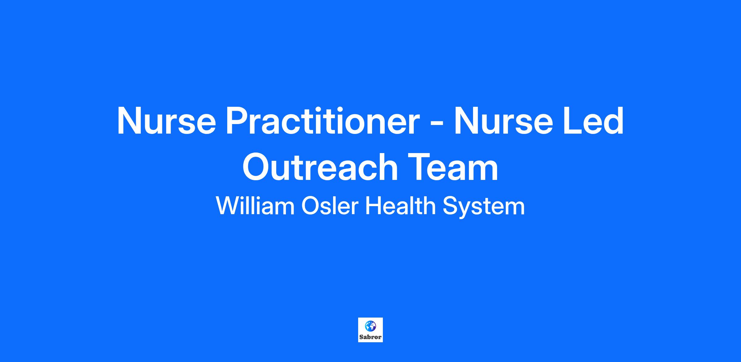 Company DescriptionOne of Canada's Best Diversity Employers and Greater Toronto's Top Employers for many consecutive years, William Osler Health System (Osler) provides a safe and supportive health care network to grow your career. Osler is nationally recognized for its commitment to patient safety and is Accredited with Exemplary Standing, the highest rating a Canadian hospital can receive. As a major Ontario hospital system, and home to some of the biggest specialty and emergency departments in the country, Osler serves the 1.3 million residents of Brampton, Etobicoke and surrounding communities. We are proud to offer you incredible exposure to best-in-class health care delivery and challenging hands-on opportunities to stay at the top of your game.A hospital system built for and by the community, we continue to expand our services to meet the needs of a growing population, creating opportunities for increased hands-on skills development, cross-department training and promotional opportunities. Guided by our accomplished senior leadership team, together we are driving our vision of patient-inspired health care without boundaries.At Osler, we invest in careers that go beyond where health care professionals like you can achieve their goals and find deep personal and professional fulfillment. Join our team today!Job DescriptionAccountable to the Director, Integrated Health Systems, the Nurse Practitioner led Outreach Team (NLOT) supports residents of long term care (LTC) facilities in the region, helping to reduce unnecessary emergency department visits and inpatient admissions. The Nurse Practitioner (NP) will demonstrate a high level of autonomy and expert skill in formulating clinical decisions when supporting residents within the Central West LTC, and potentially other congregate living settings in the community as part of the integrated health portfolio. The Nurse Practitioner will work to full scope of practice, utilizing all nurse practitioner core competencies (client care, quality improvement and research, leadership and education) alongside their NLOT counterparts. .Accountabilities:Support multiple LTC homes providing time sensitive acute/episodic, palliative, geriatric, and repatriation visits to LTC residents in order to avoid unnecessary Emergency Department transfers, shorten length of stay and support sustainable dischargesBuild capacity of LTC staff through education and innovation as well as improving system integration through access to care, seamless transitions and partnershipsPlay a leadership role by performing quality improvement, applying/performing research and best practices, participating in innovative approaches to care to improve quality and safety in LTCDevelop strong relationships with various community partners and throughout Osler and may act as a resource and consultant to individuals and groups within the professional community and other hospitals/agenciesCollaborate with stakeholders to facilitate change and promote staff and patient/family satisfaction within a philosophy of patient and resident-centered careQualificationsMaster’s degree in nursing requiredCurrent RN (EC) registration with the Ontario College of Nurses requiredBCLS requiredRecent and relevant experience practicing as a nurse practitioner in geriatric, palliative, emergency or primary care requiredDemonstrated experience with nursing staff, patient and family health teaching using adult educational principles and evidence-based practice preferredDemonstrated excellent interpersonal, communication, problem-solving, conflict-resolution and decision- making skills requiredAbility to autonomously order and interpret tests, formulate a diagnosis, develop and communicate a treatment plan for complex seniors in LTC and community settings requiredAbility to communicate and counsel effectively related to goals of care requiredProficiency in computer skills and data management required (e.g. Microsoft Excel and Word, Meditech, Connecting Ontario) requiredRequired to work in and travel between all Osler sites, LTC homes and other community settings as required (valid Ontario drivers license and access to a vehicle is required)Fluent in English (comprehension, reading, writing, and speaking)Ability to act as a change agentVulnerable sector check or attestation as it pertains to the Fixing Long Term Care Act requiredCore competencies:Demonstrated knowledge of resident, patient and family-centered careDemonstrated experience with resident and family health counsellingExemplary clinical assessment skills, knowledge and expertiseExperience in and solid understanding of the intersections between acute care, long term care, and community care as it relates to repatriation and resources preferredDemonstrated ability to work both autonomously and collaboratively as a member of an inter-professional team and prioritize resident needs requiredExcellent organization, communication, interpersonal skills, problem solving and critical thinking skills requiredExperience performing assessments related to geriatric syndromes, palliative care, COVID-19, influenza, pneumonia, urinary tract infections, wounds and falls requiredDemonstrated ability to effectively address sensitive issues with families and staffDemonstrated leadership, quality improvement and research skills preferredDemonstrated commitment to continuous learning, professional development and reflective practice as it applies to the profession and related fieldDemonstrated ability to work in a stressful environmentKnowledge and adherence to IPAC measures and directives requiredProviding care in a compassionate and caring manner within a diverse cultural environmentKnowledge and understanding of the Occupational Health and Safety ActMust demonstrate Osler's Values of Respect, Excellence, Service, Compassion, Innovation and CollaborationExcellent attendance, punctuality and work recordAdditional InformationHours: Currently days including the potential 