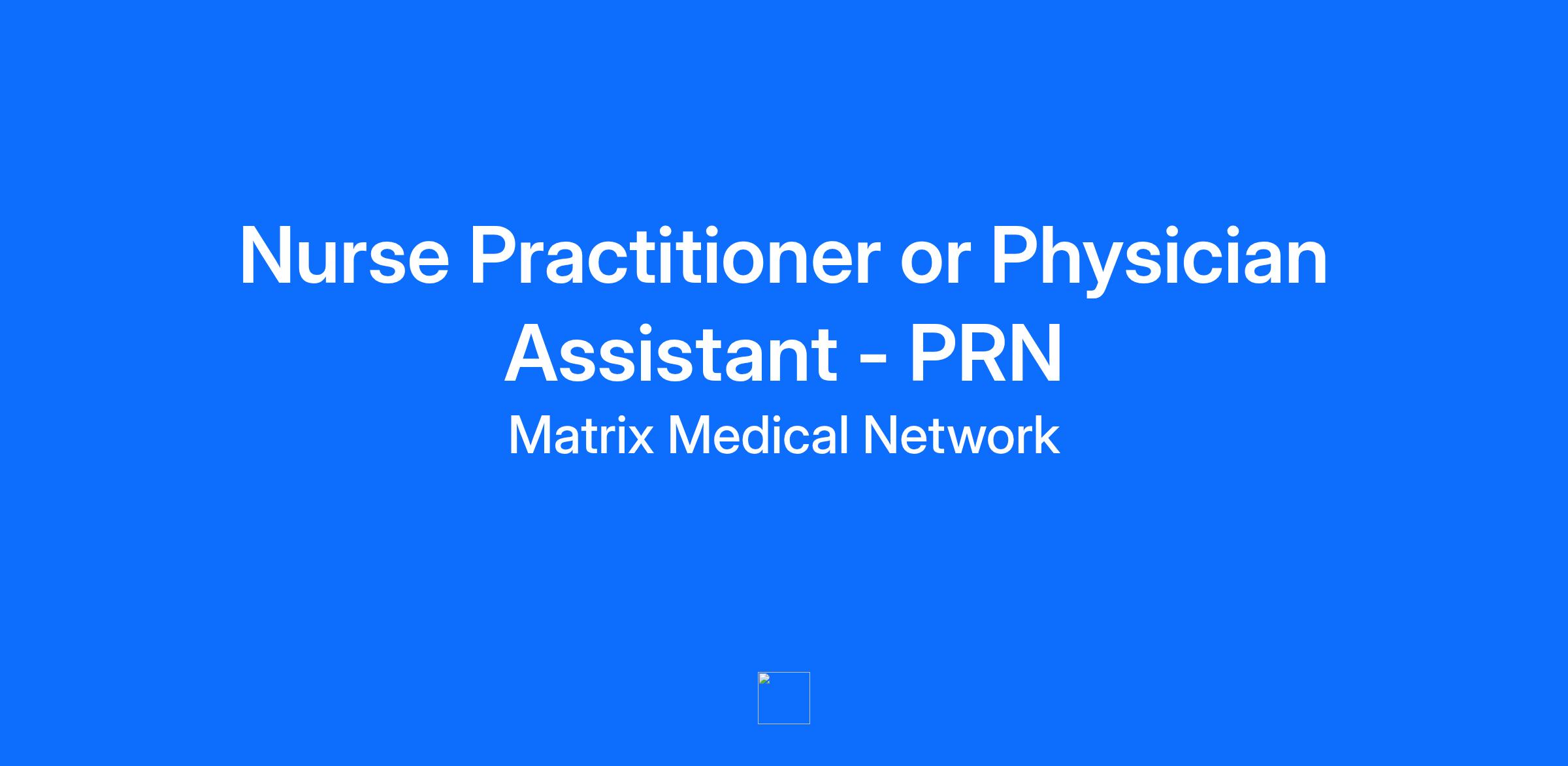 Nurse Practitioner or Physician Assistant - PRN