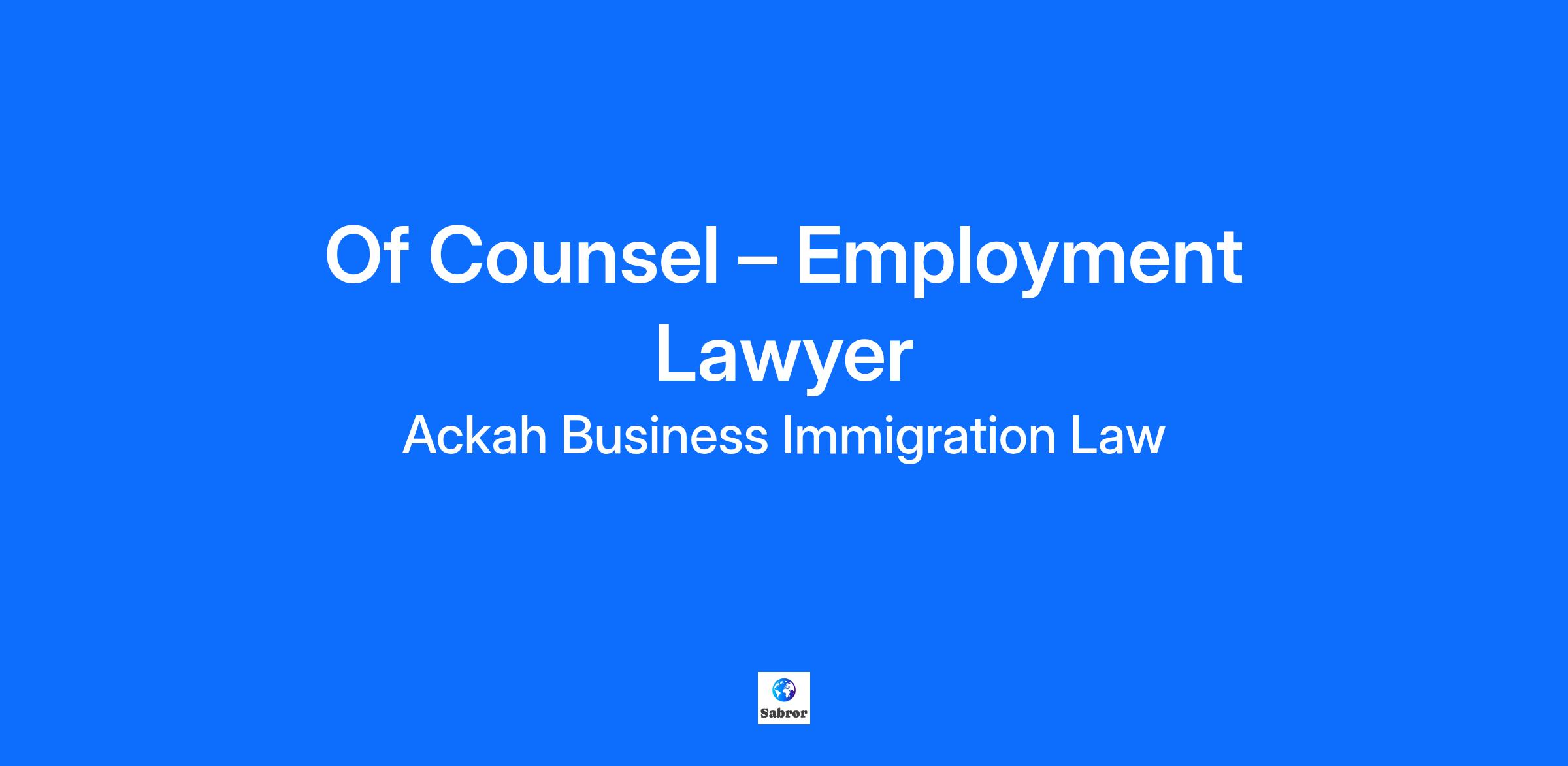 Of Counsel – Employment Lawyer (Contract Position)