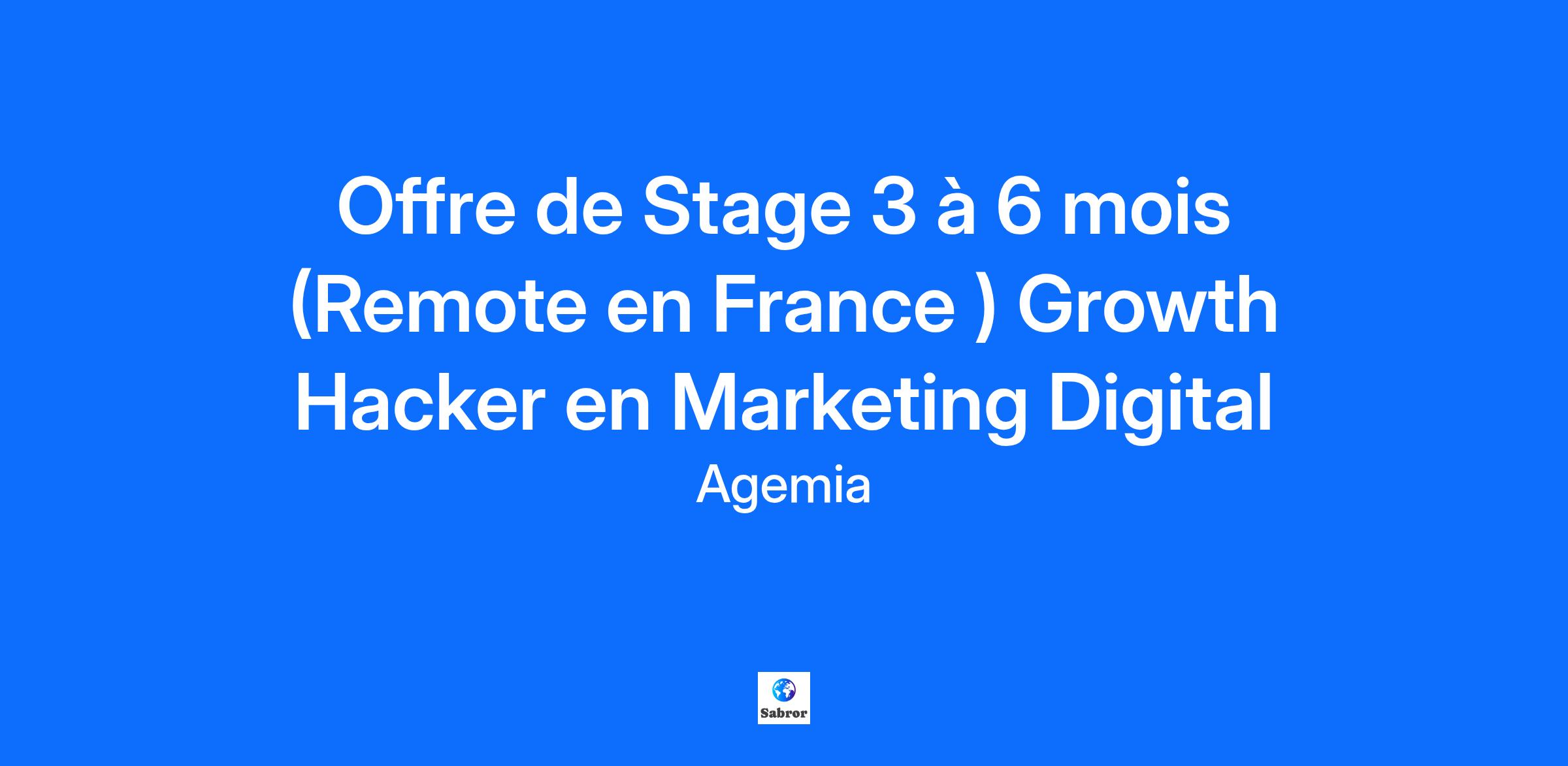 Offre de Stage 3 à 6 mois (Remote en France ) Growth Hacker en Marketing Digital