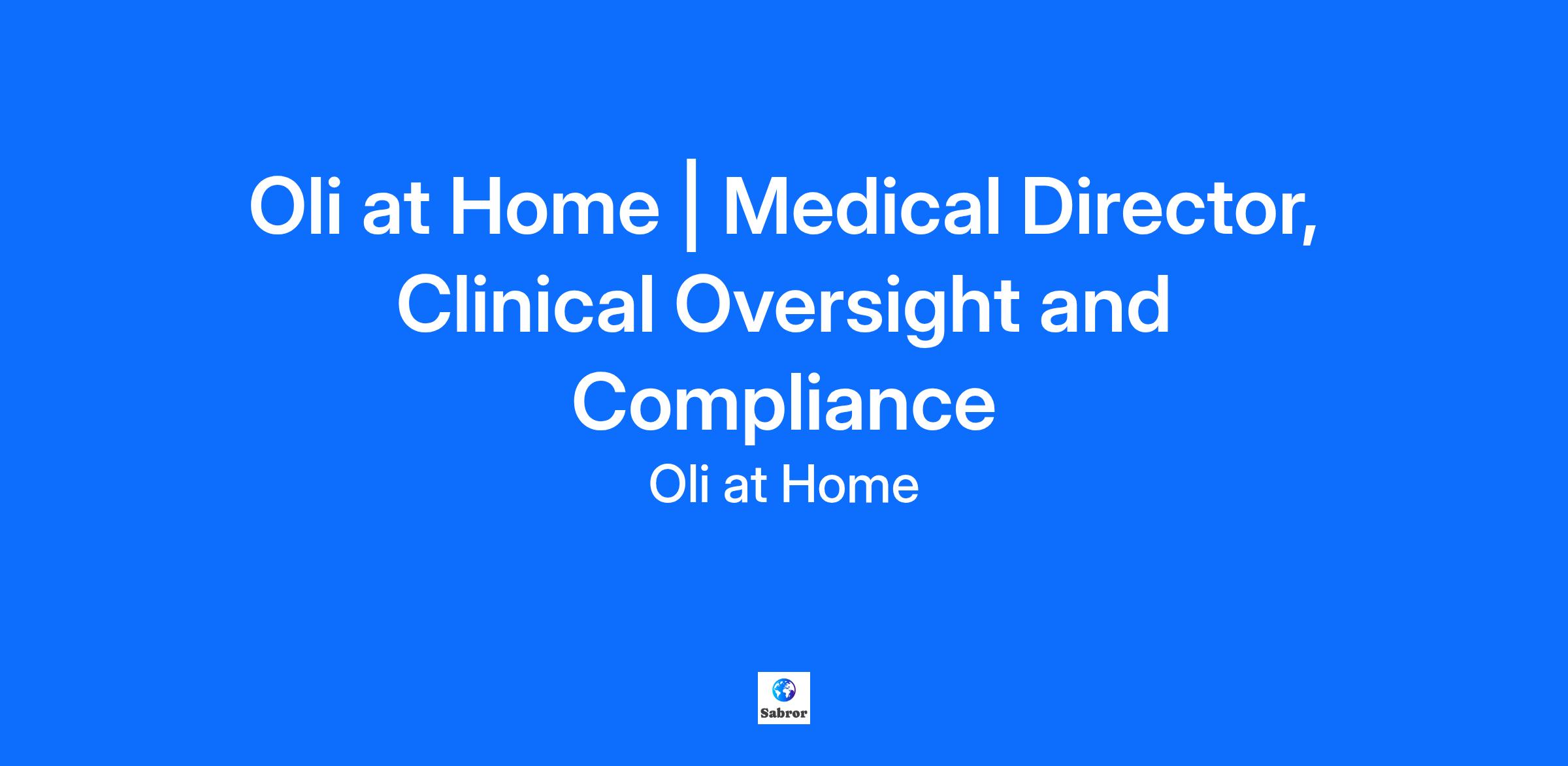 Oli at Home is adding an additional Medical Director to support ongoing growth and ensure clinical, legal, and compliance standards remain industry leading. This role is designed for a physician who values rigorous oversight, clear documentation, excellent patient outcomes, and a collaborative clinical culture.